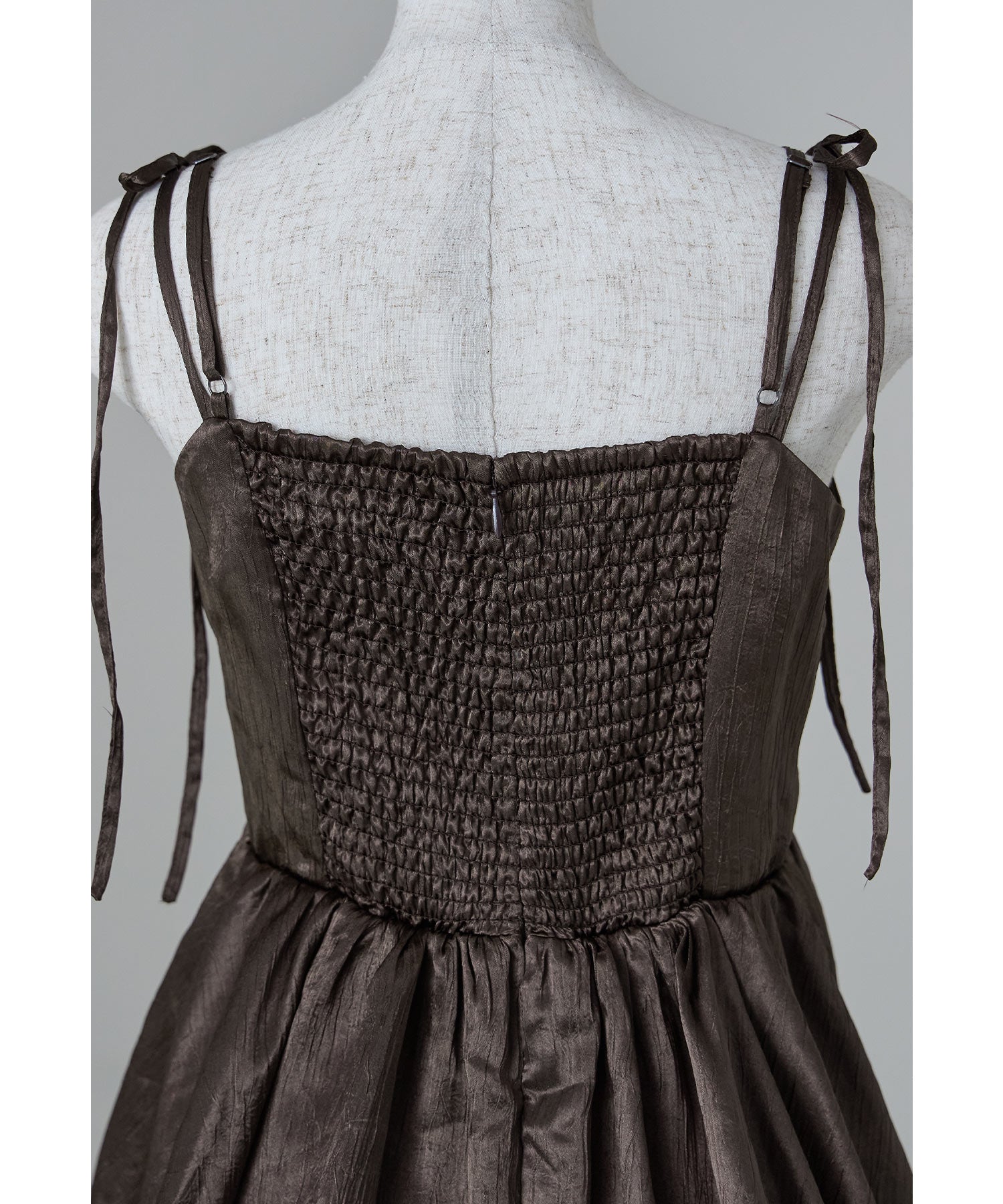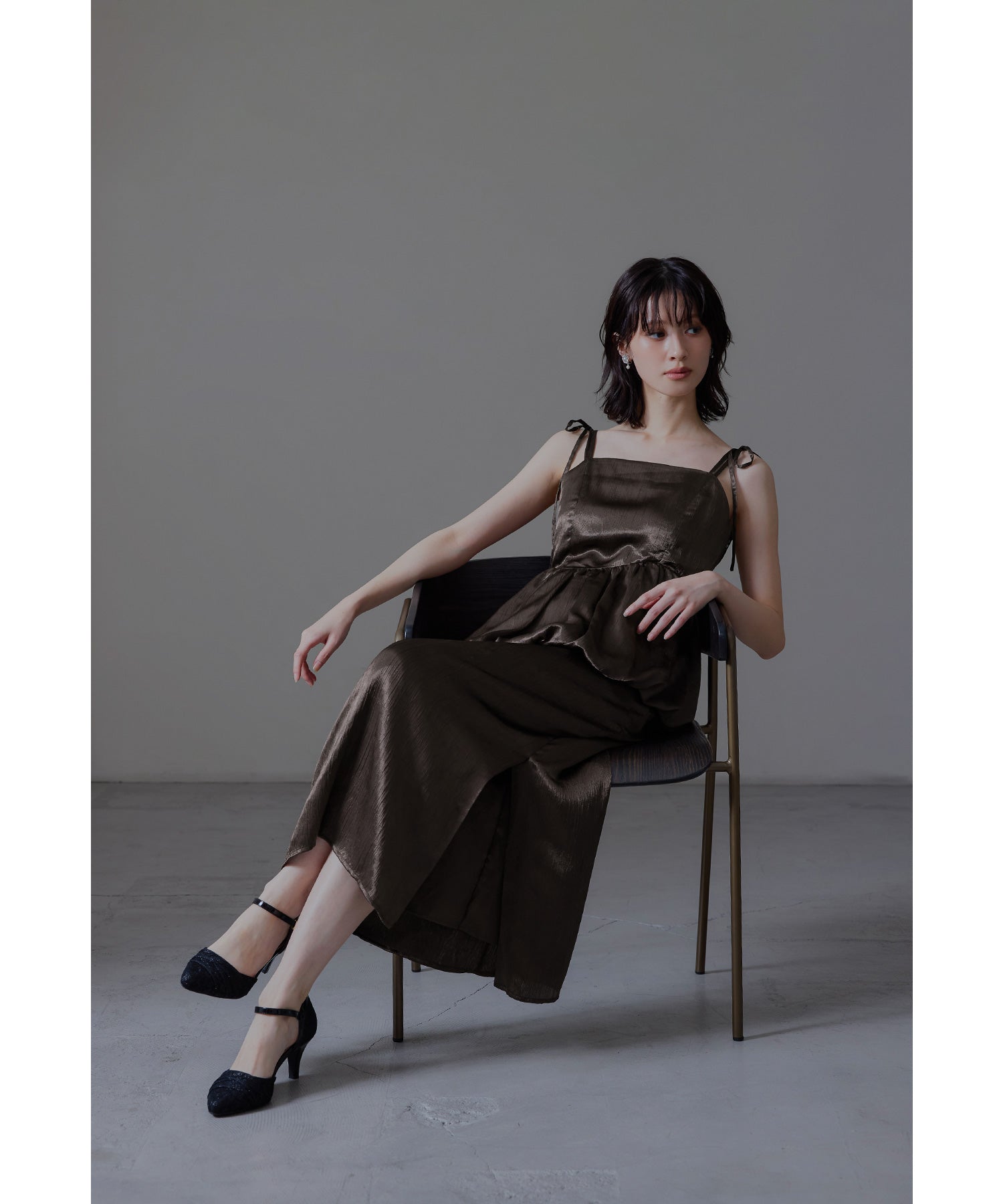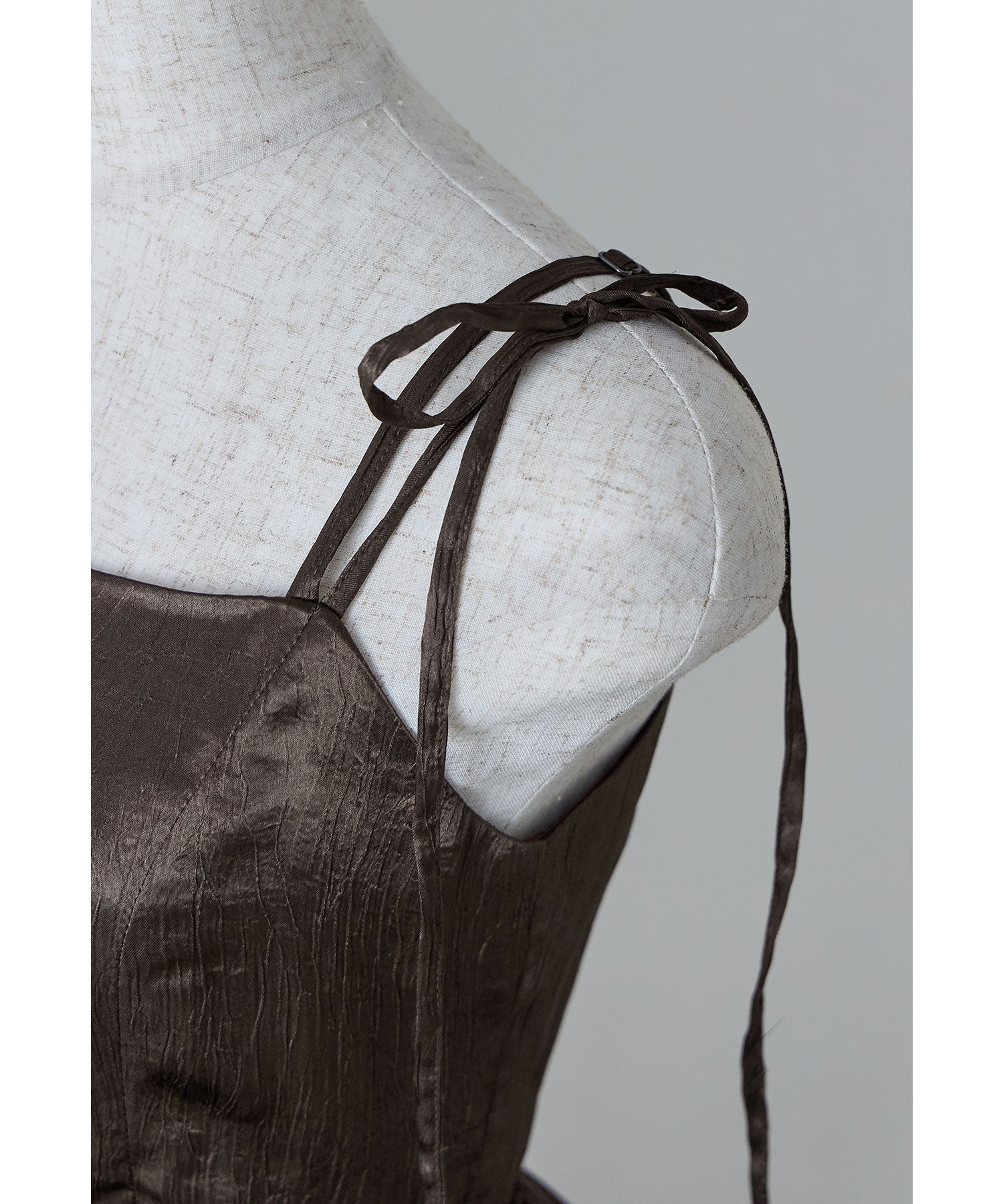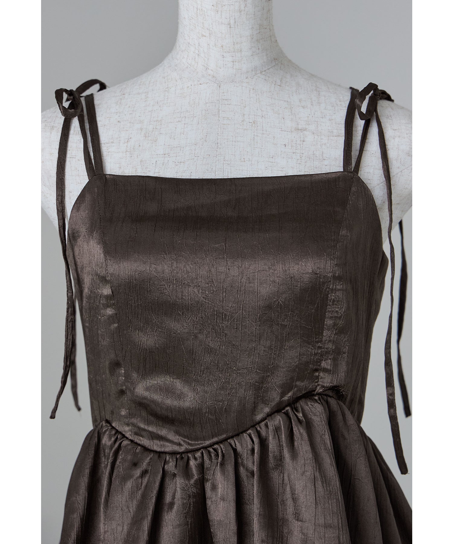 Rname ワッシャーサテンペプラムキャミドレス パーティードレス 結婚式 キャミワンピース リボン レイヤード ノースリーブ 袖なし 無地 ロング丈 お呼ばれ パーティー 二次会 披露宴 謝恩会 成人式 同窓会 卒業式 フォーマル オケージョンドレス ブラック 黒 ブラウン ベージュ