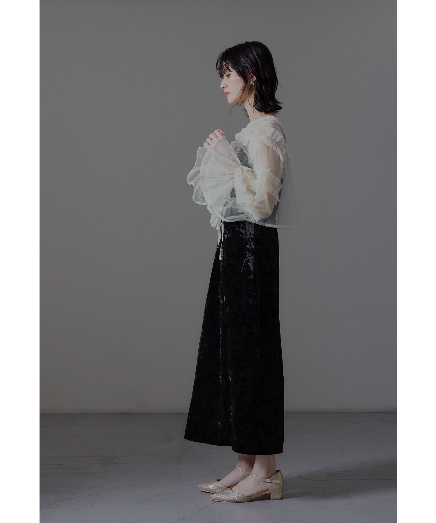 Rname チュールトップスクラッシュベロアドレス パーティードレス 結婚式 キャミワンピース シアー ブラウス リボン 2点セット ロング丈 長袖 お呼ばれ パーティー 二次会 披露宴 謝恩会 成人式 同窓会 卒業式 フォーマル オケージョンドレス ディナー 春 夏 秋 冬 黒 ブラウン