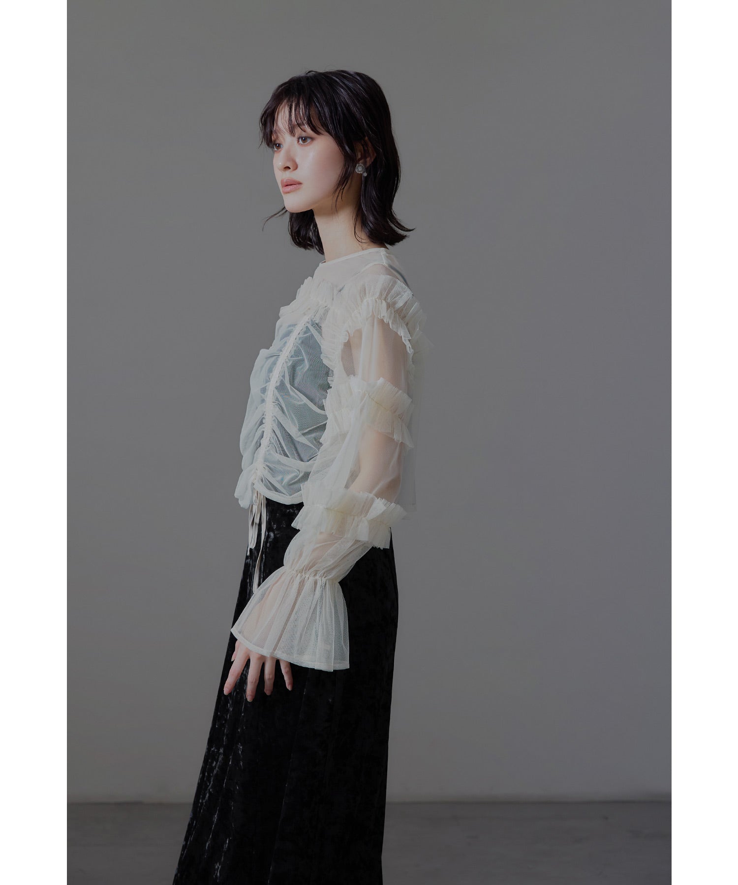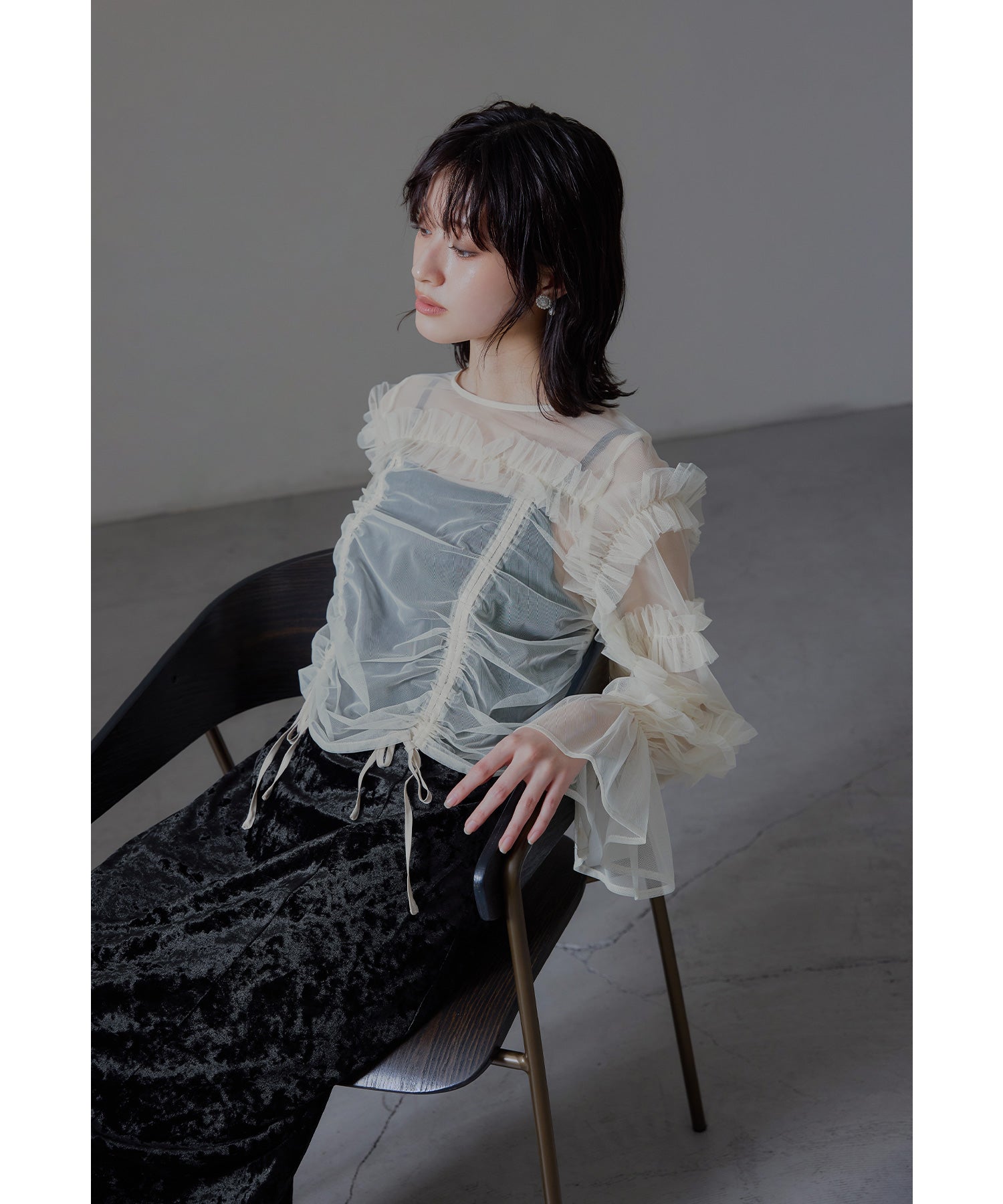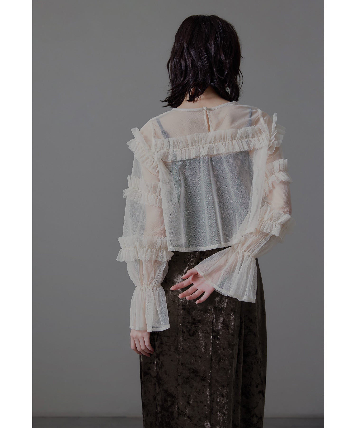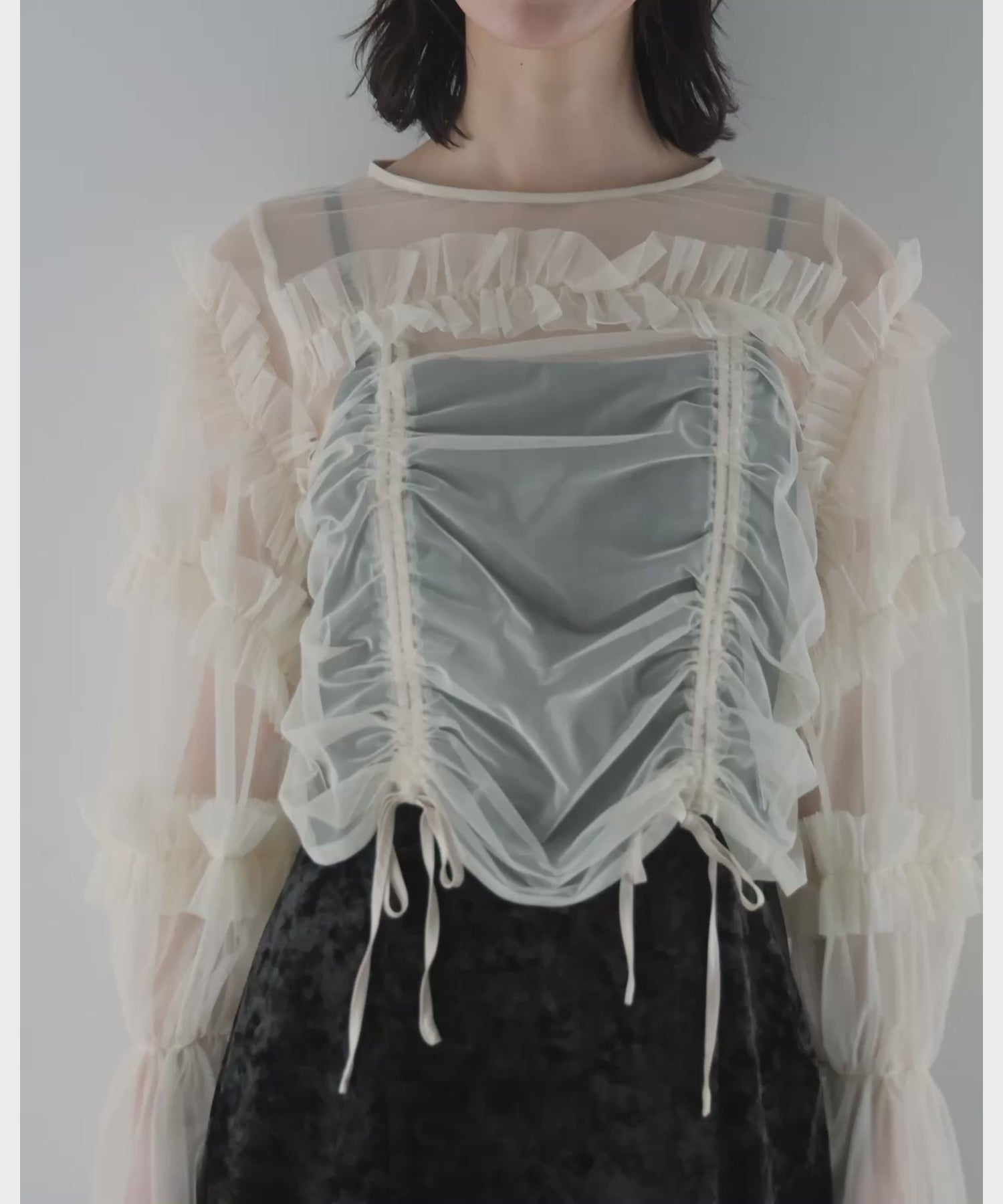 チュールトップスは、ギャザーやフリルをたっぷり施したデザインで