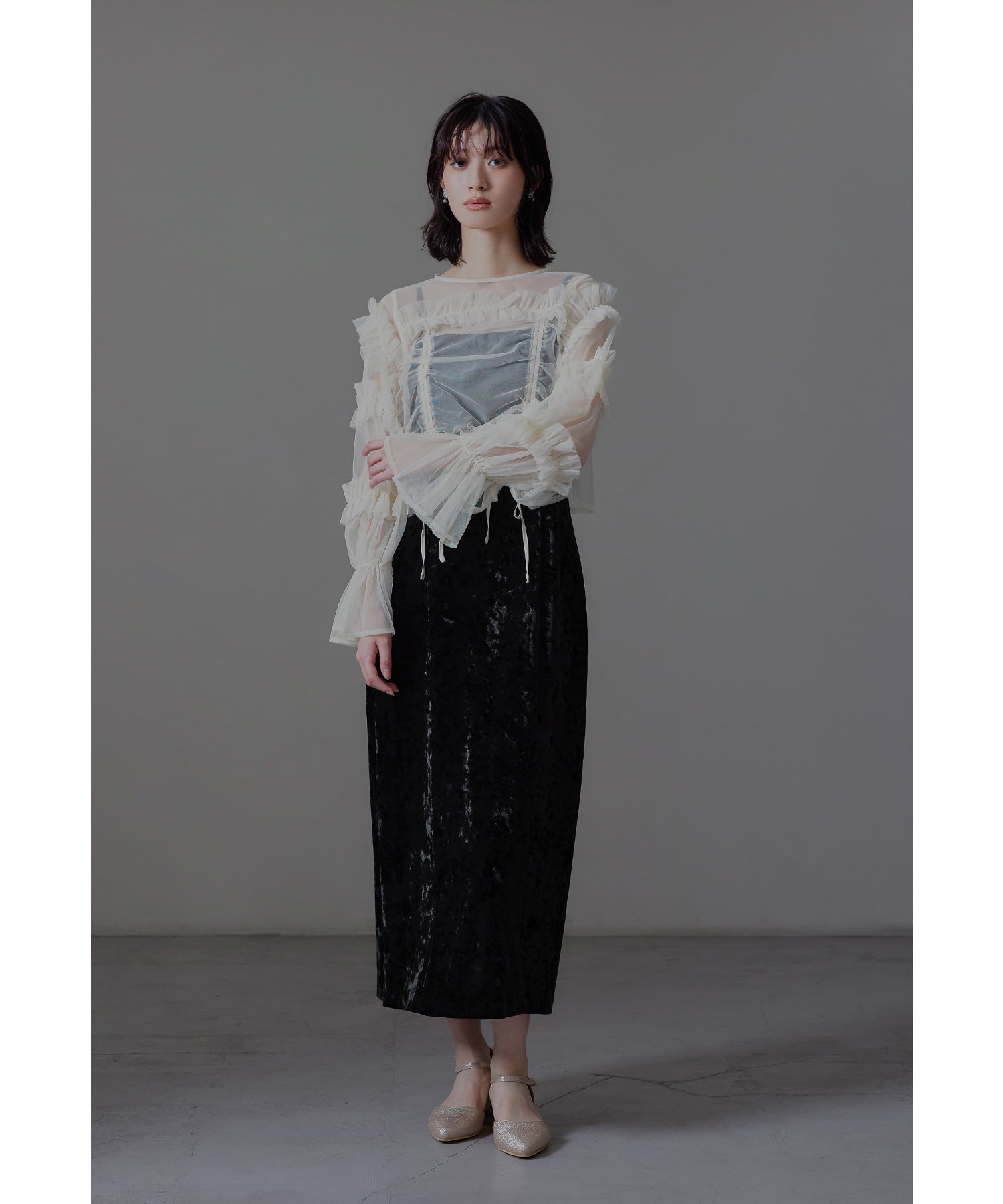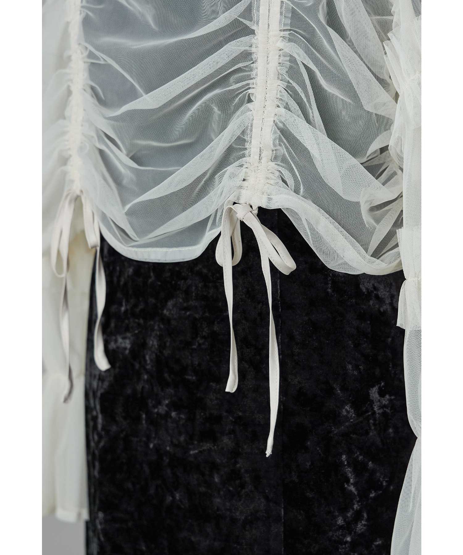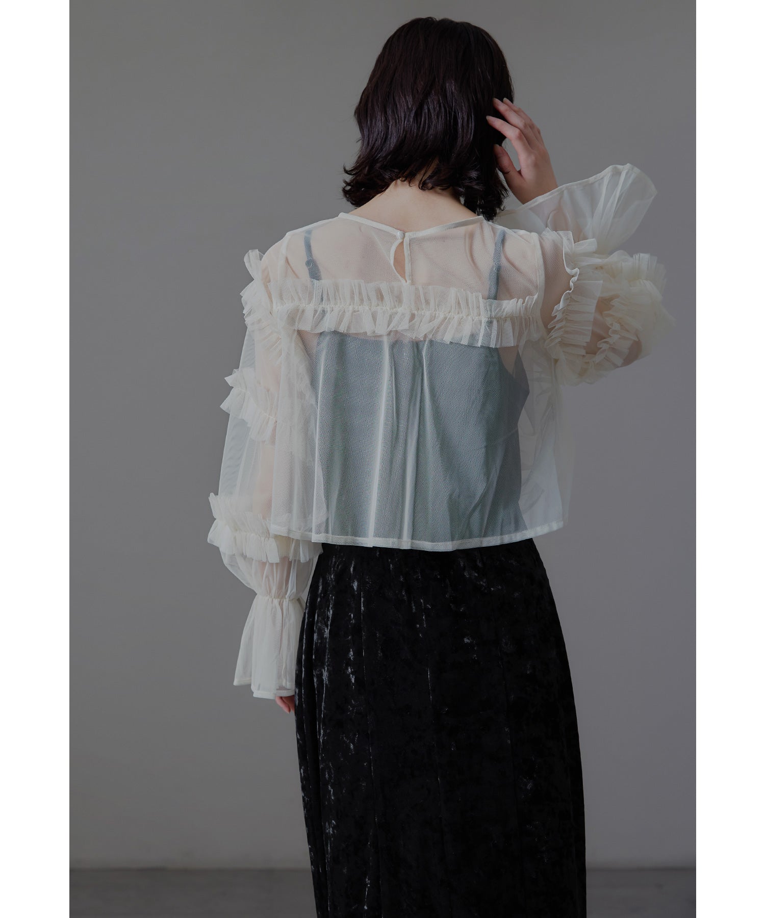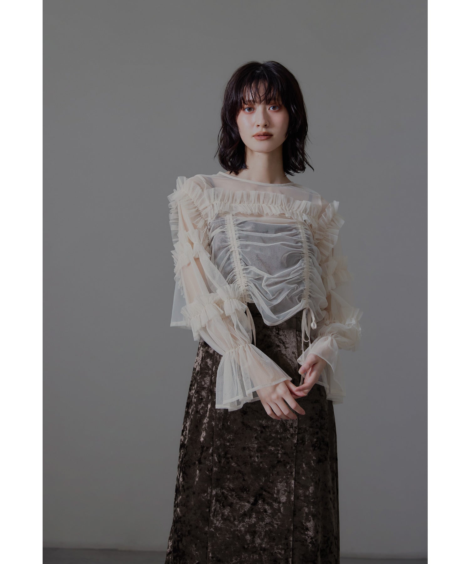 チュールトップスは、ギャザーやフリルをたっぷり施したデザインで