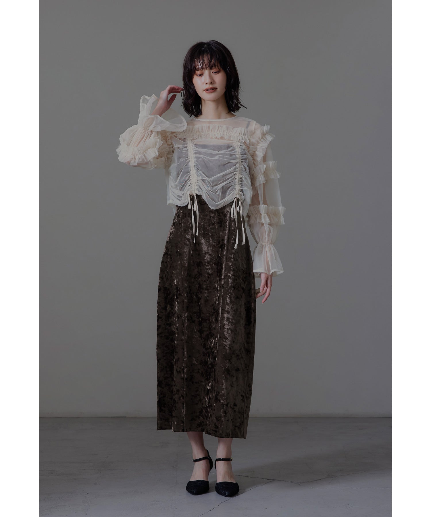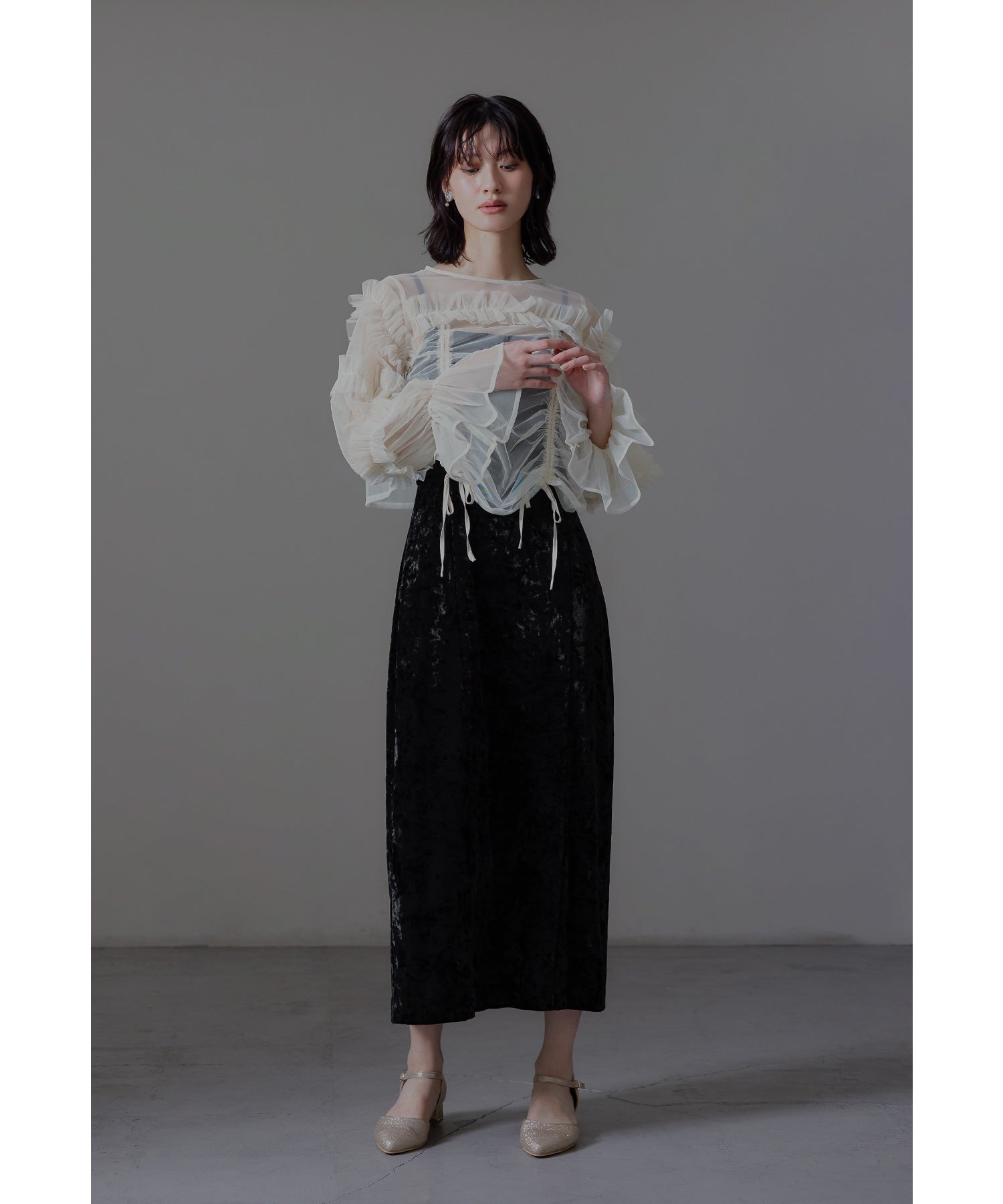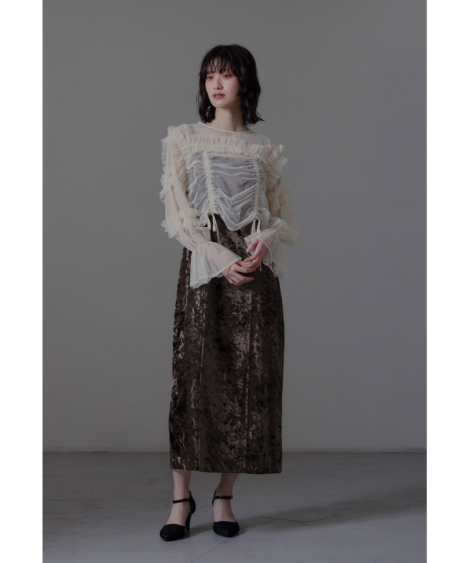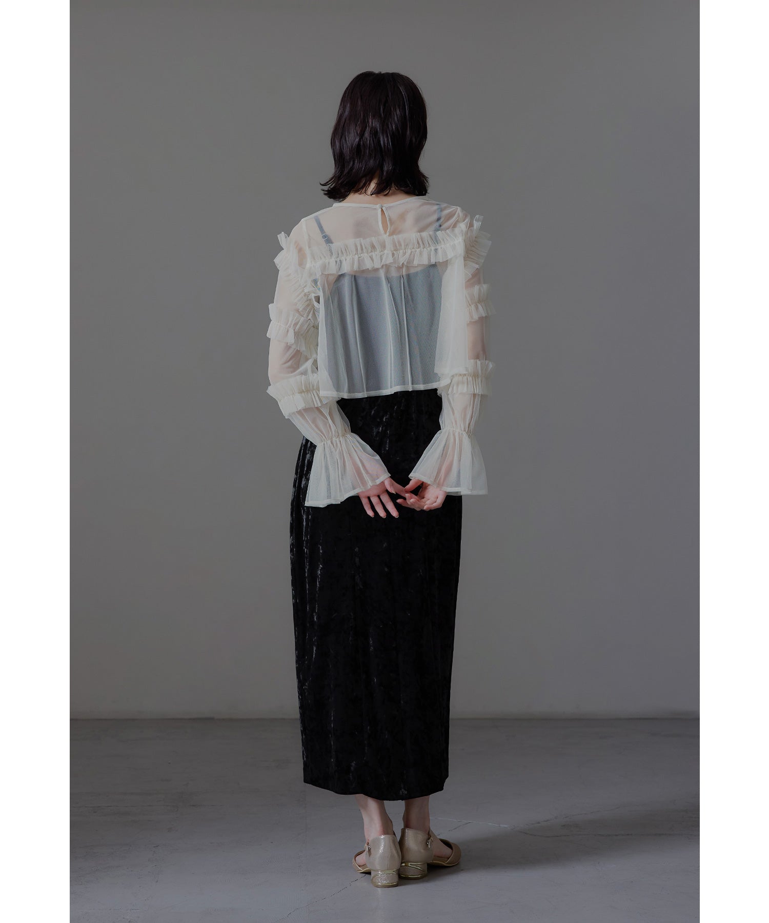 チュールトップスは、ギャザーやフリルをたっぷり施したデザインで
