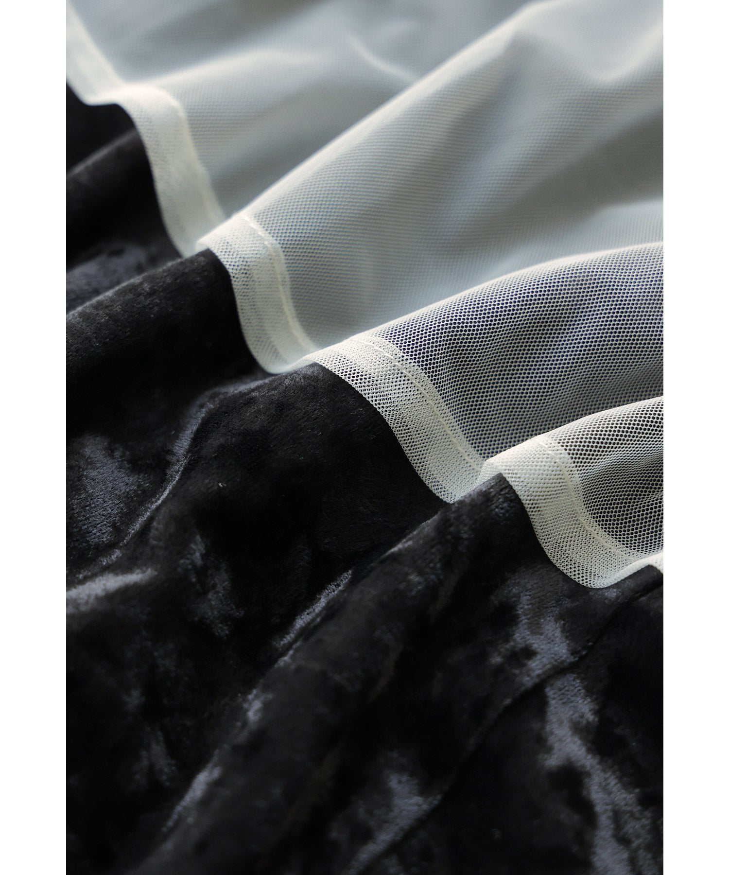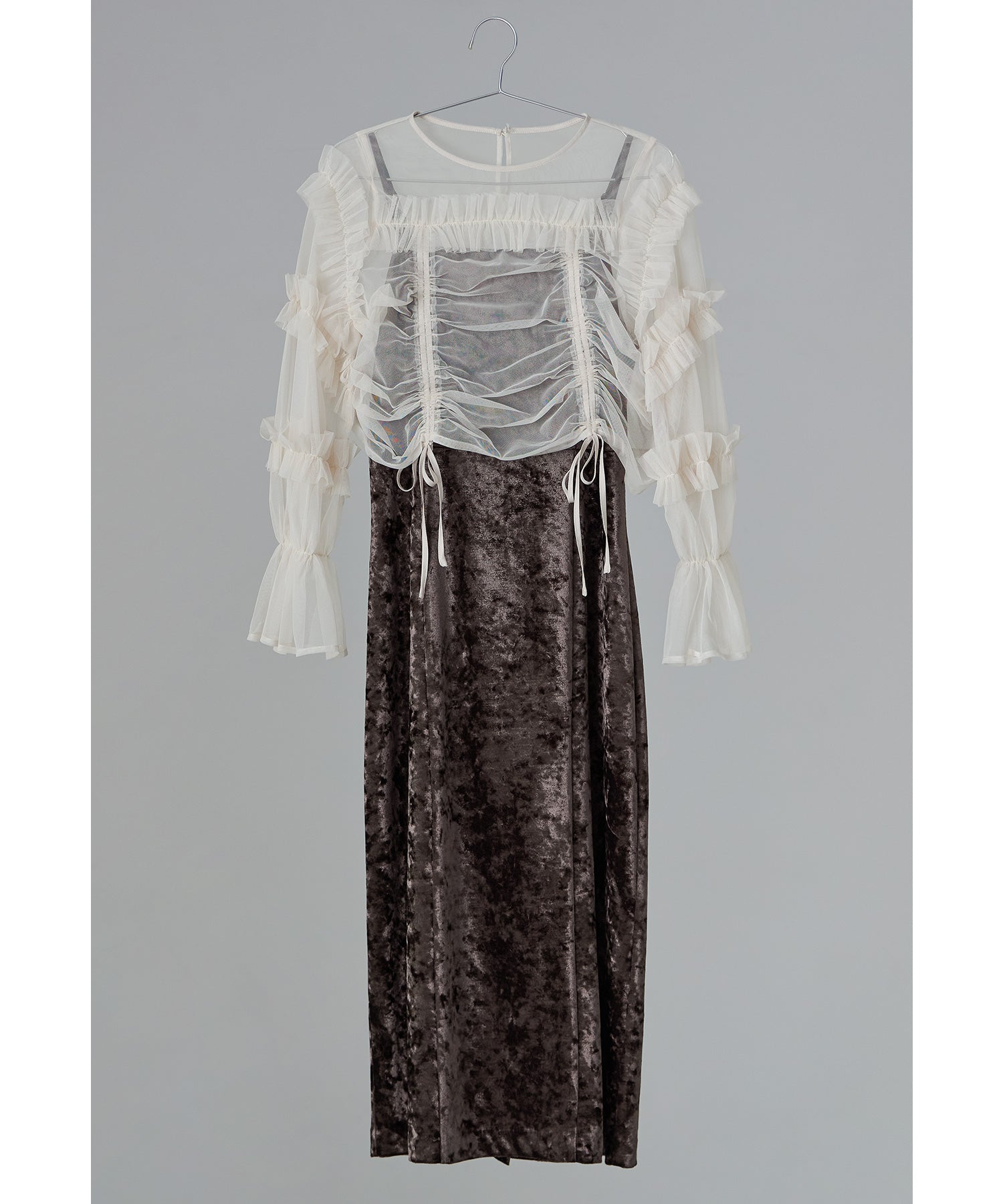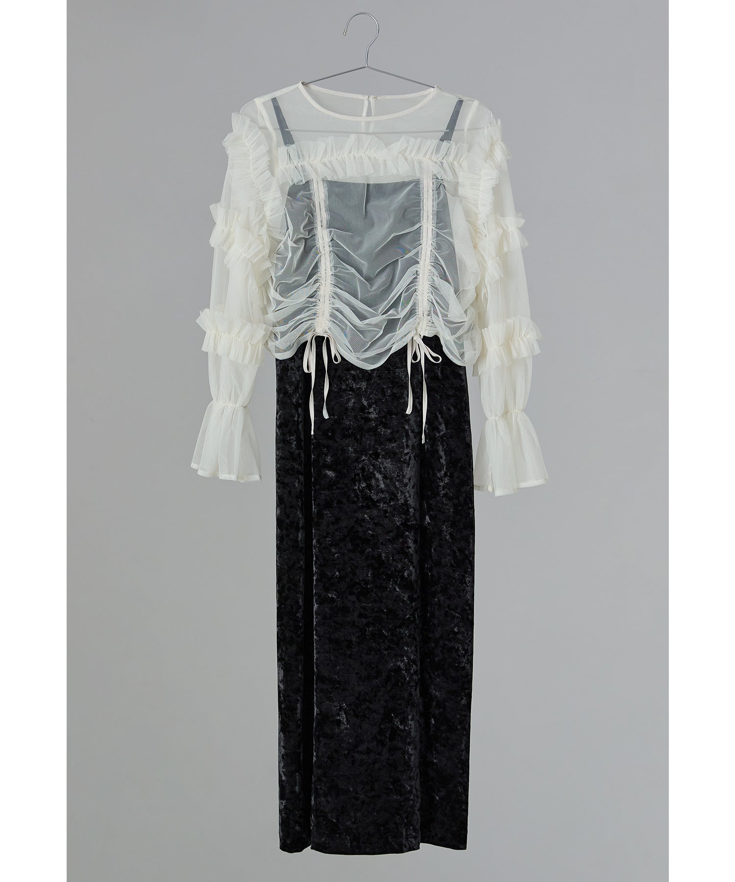 チュールトップスとベロアドレスの大人可愛い2ピースセット。