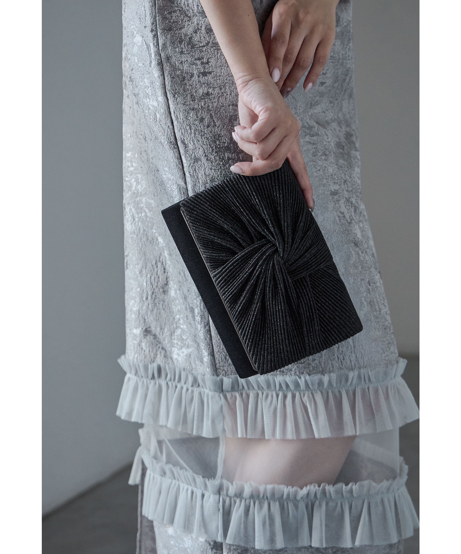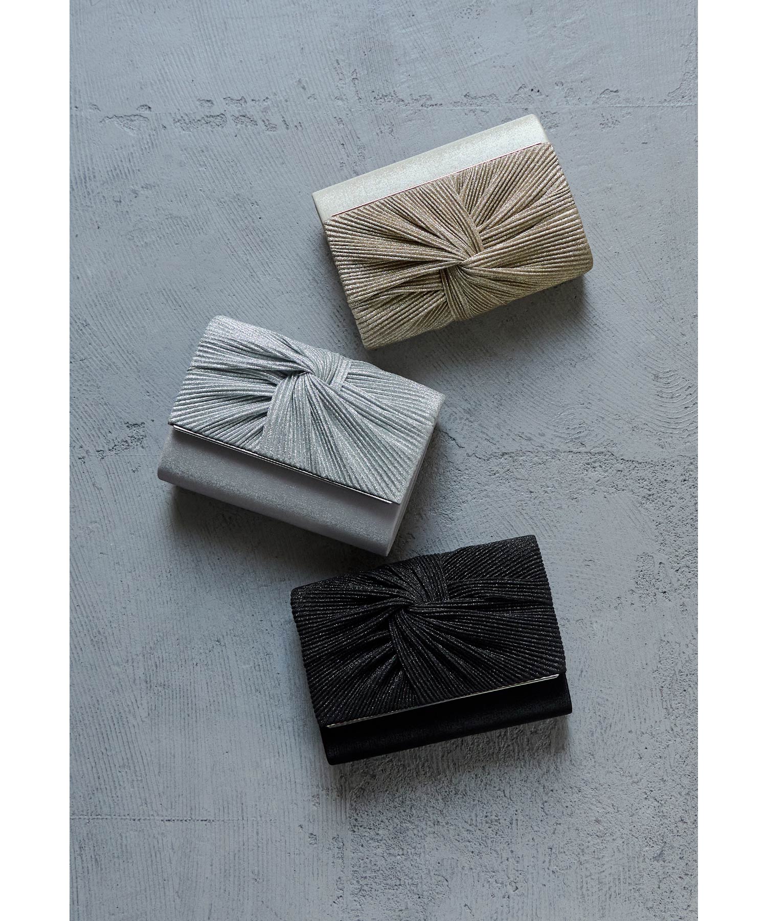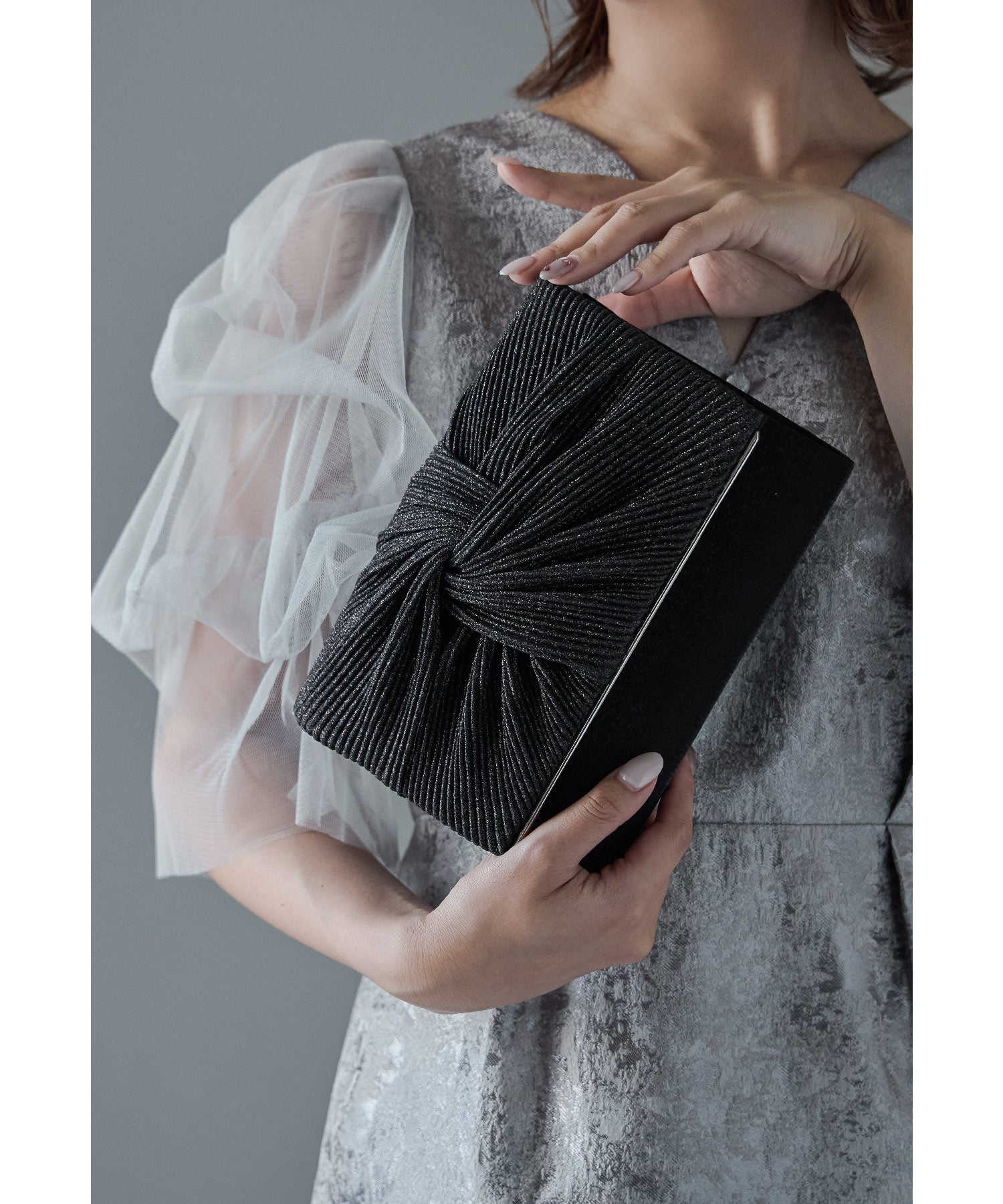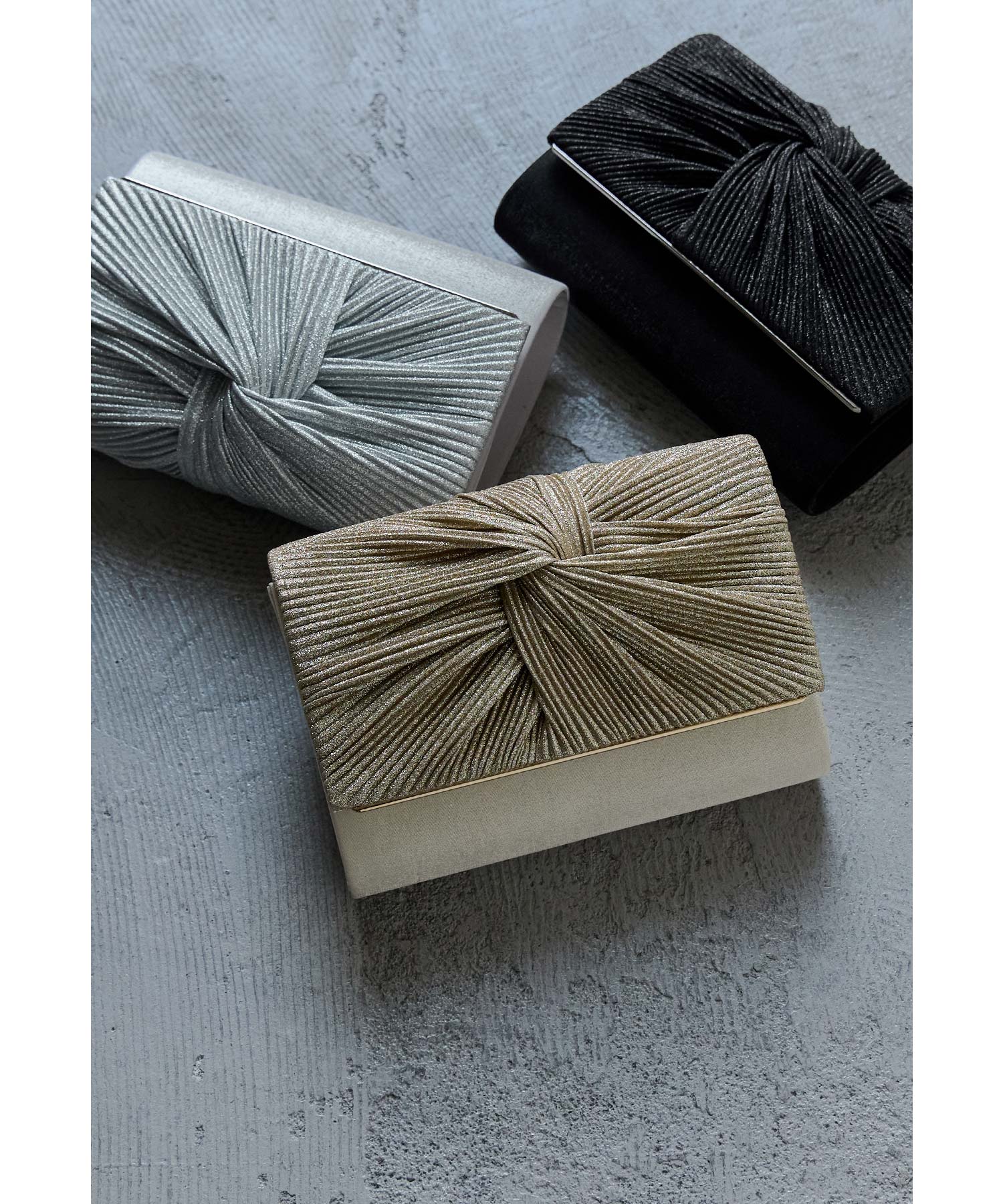 ラメの輝きが美しいノットデザインのクラッチバッグ。