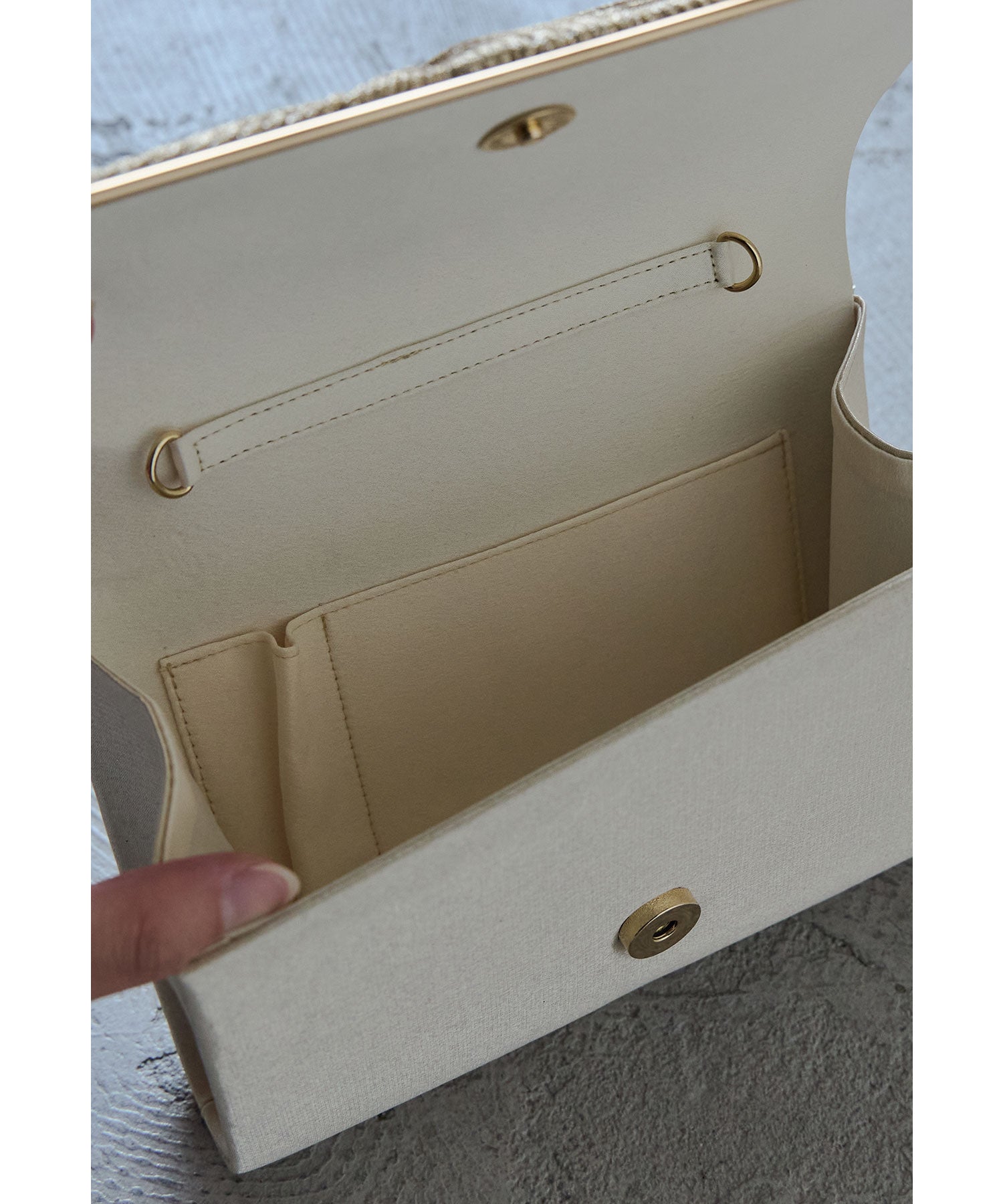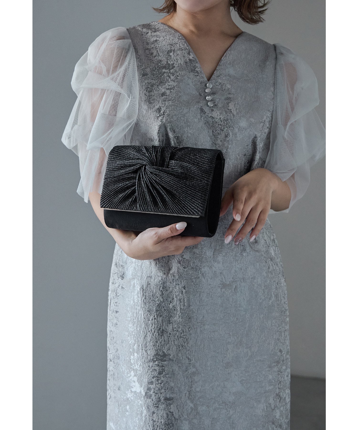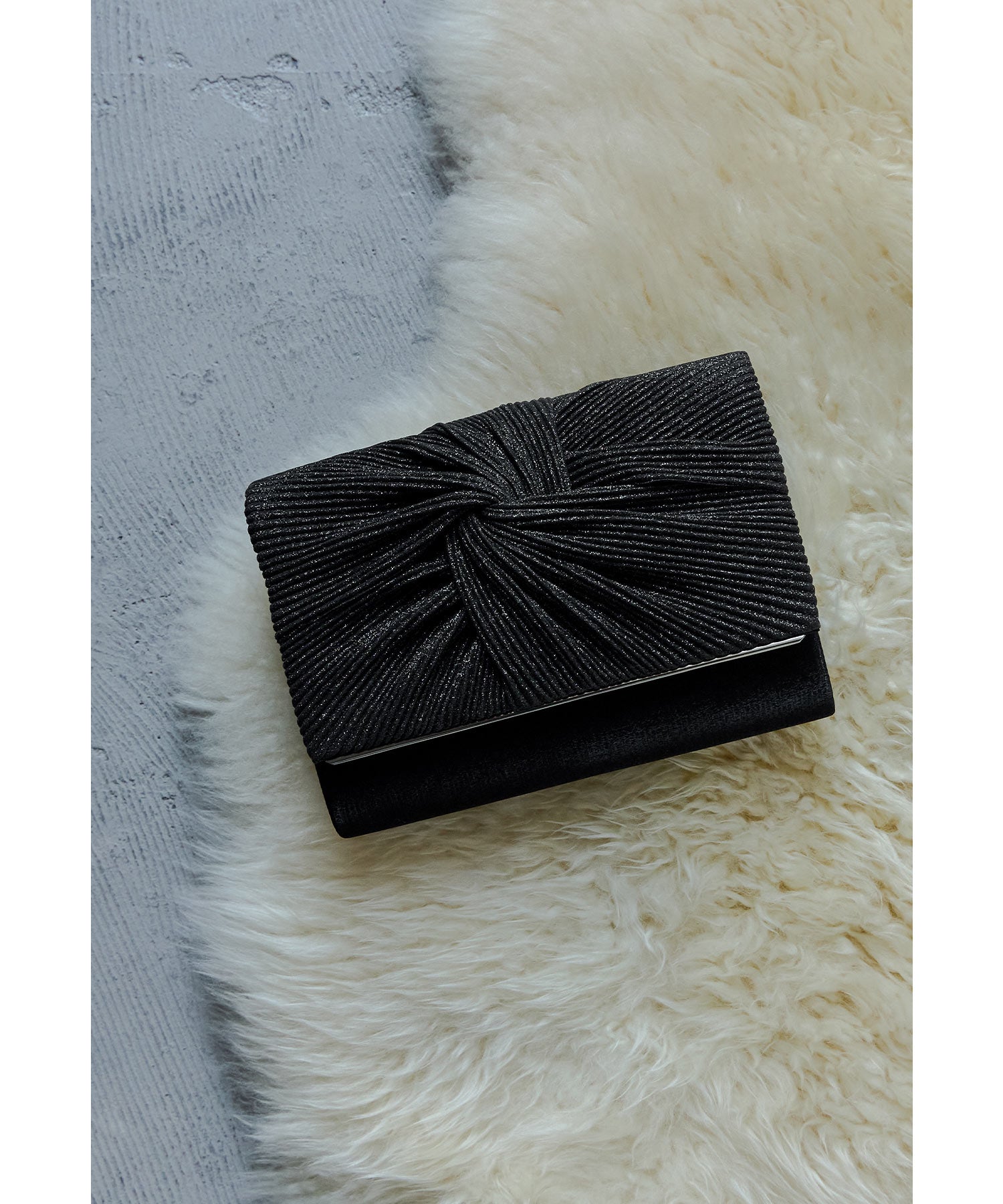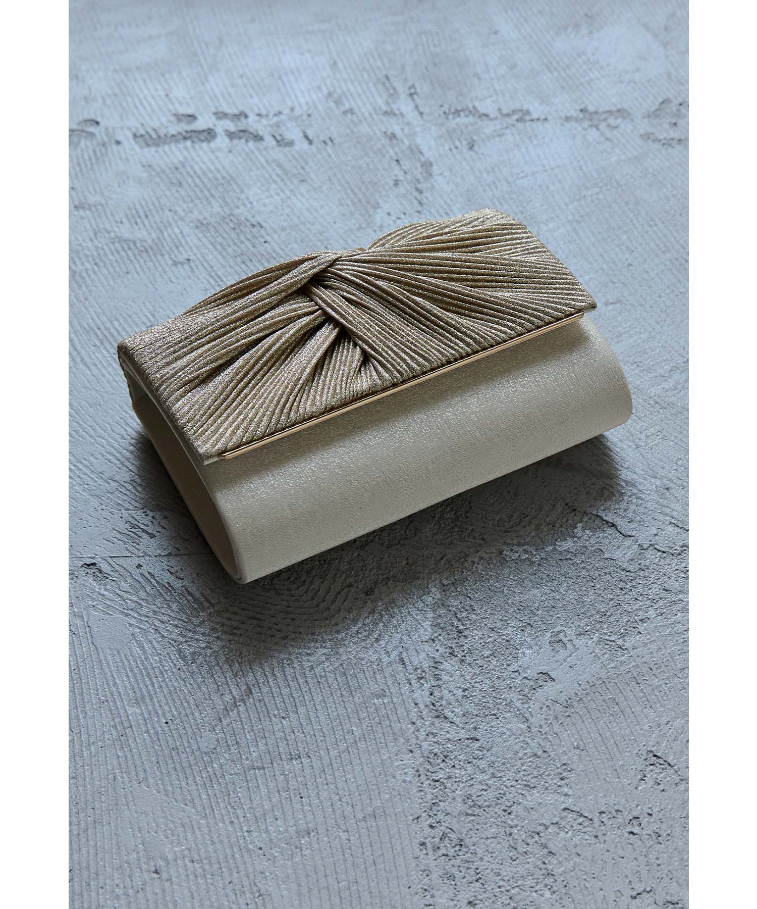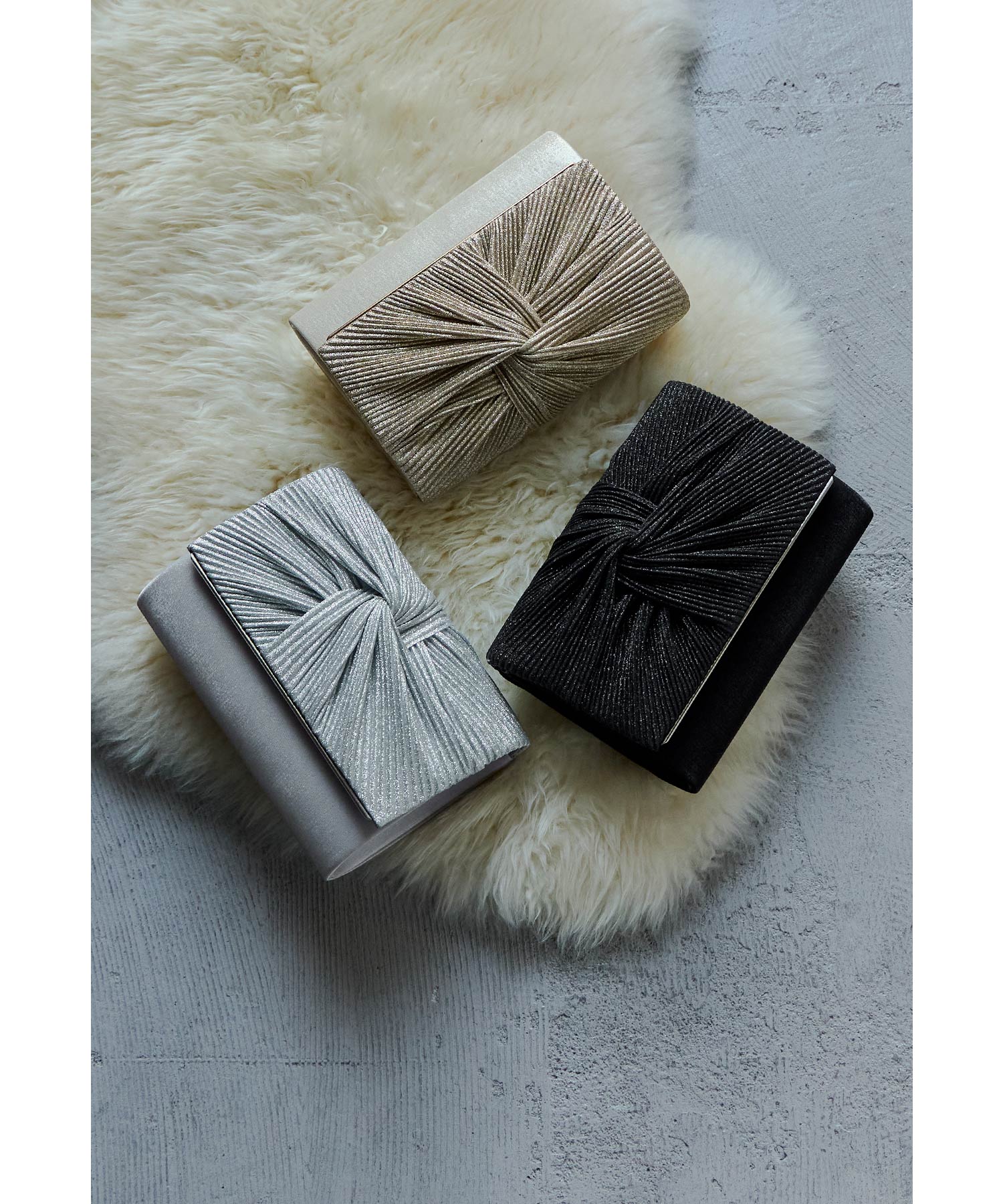 ラメの輝きが美しいノットデザインのクラッチバッグ。