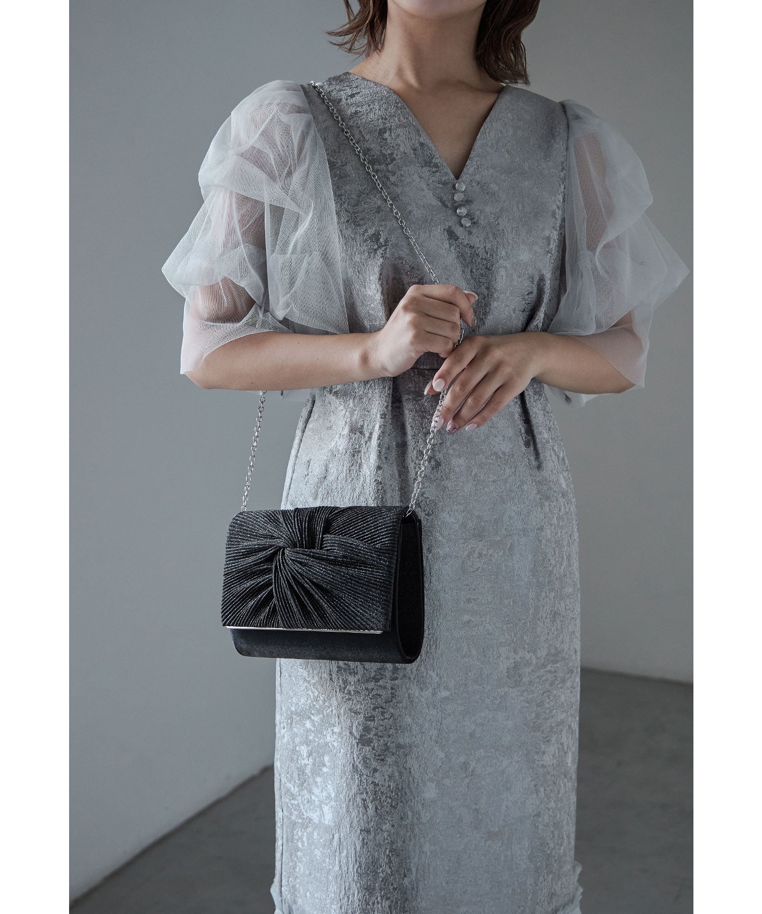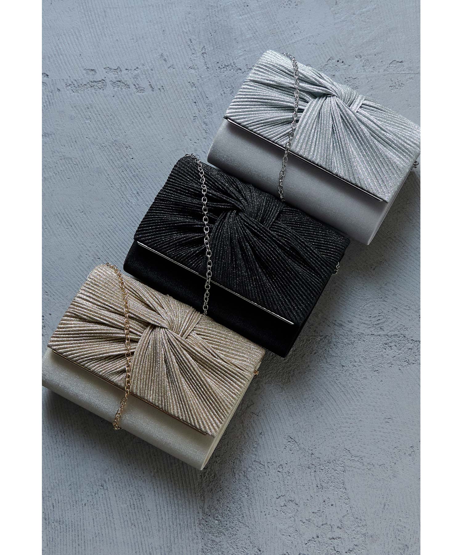 Zname ノットラメプリーツクラッチバッグ パーティーバッグ ミニ ショルダー 結婚式 二次会 成人式 同窓会 お呼ばれ フォーマル オケージョン