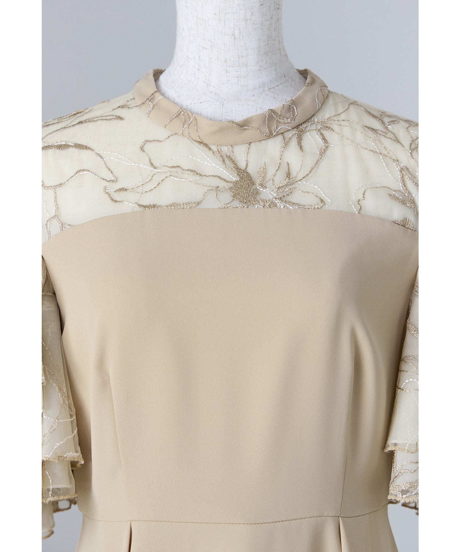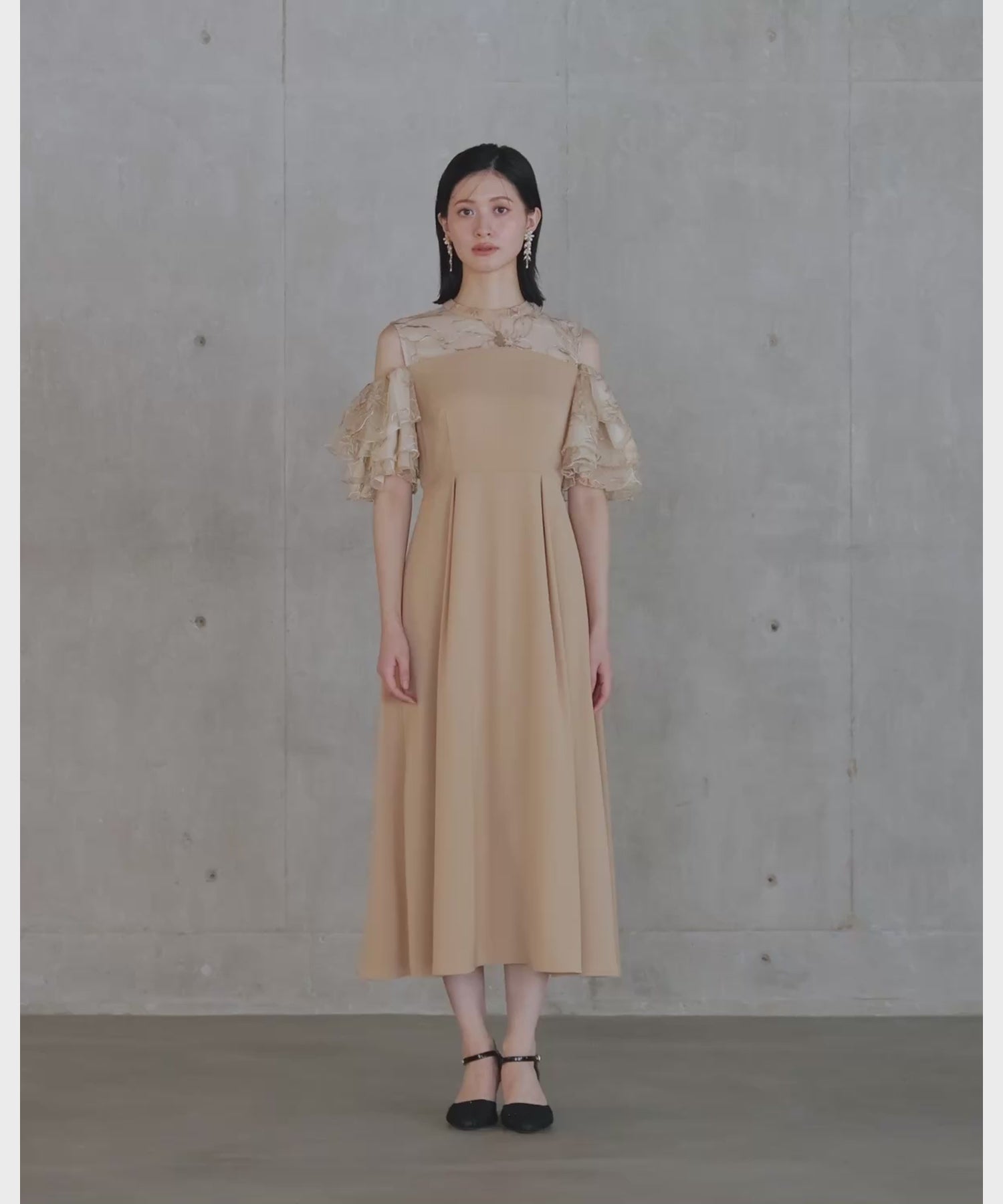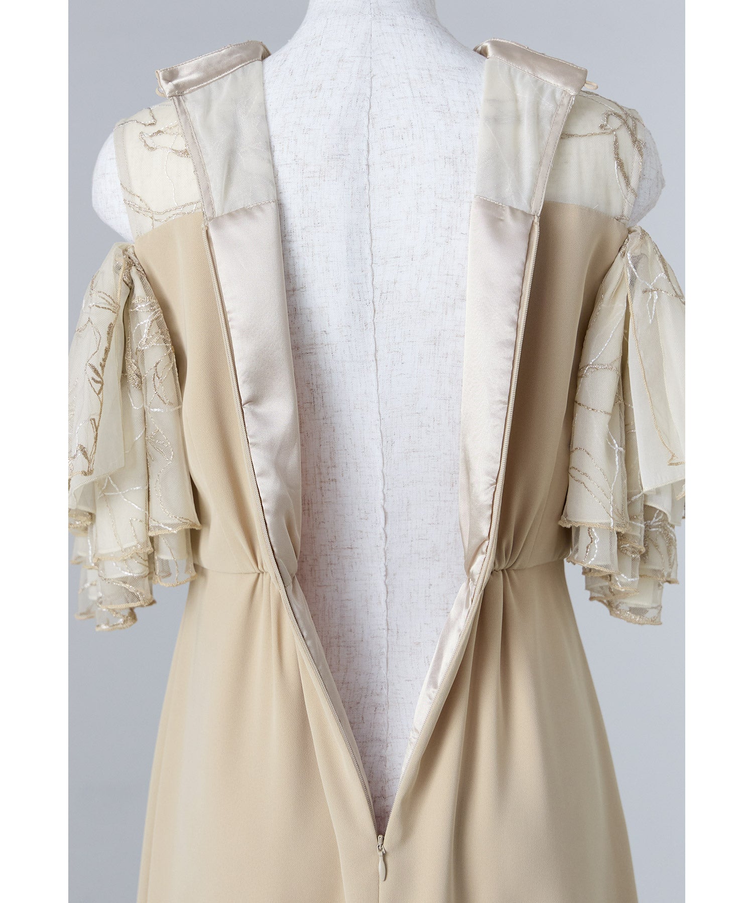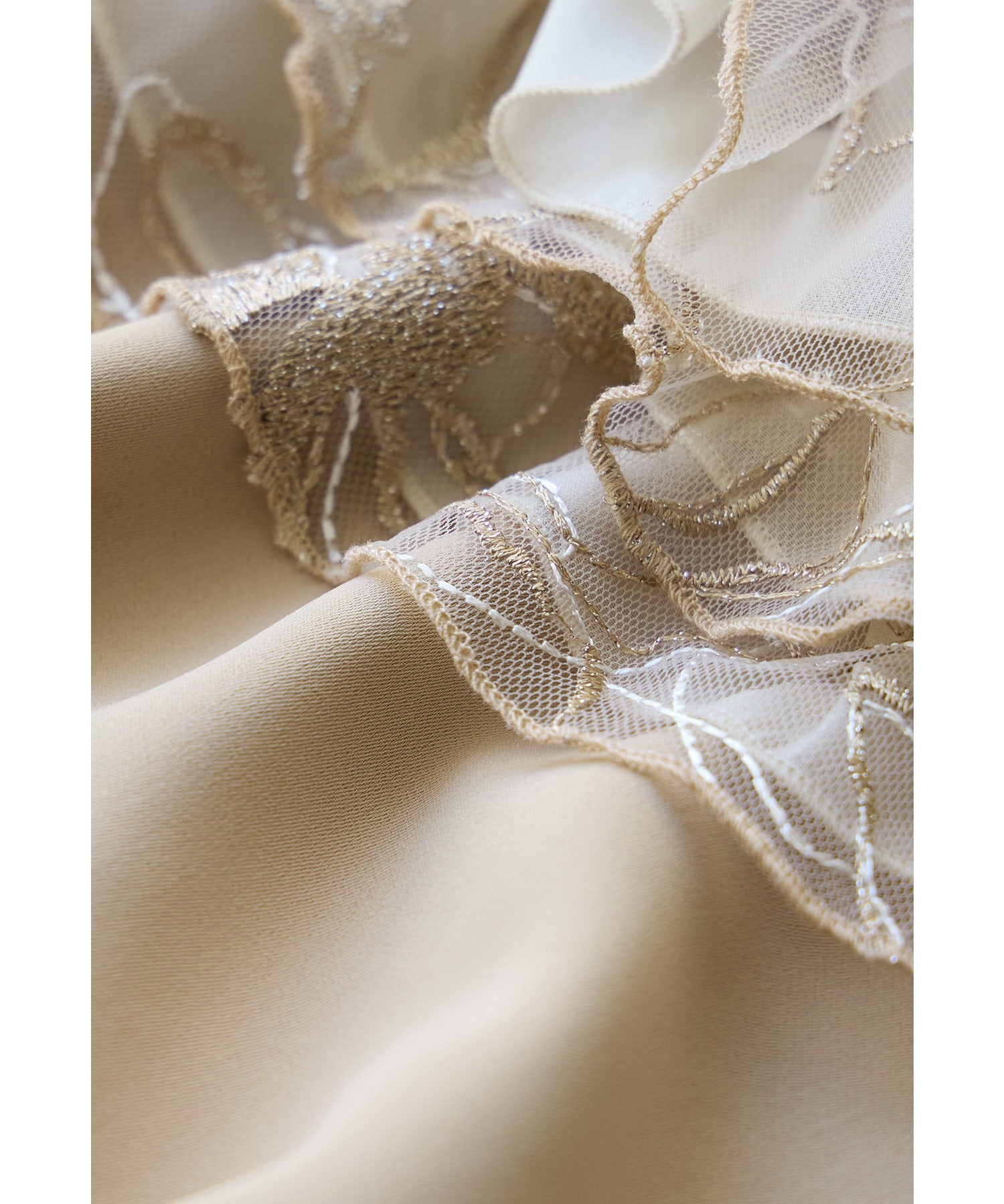 シフォンにラメ刺繍のチュールを重ねることで華やかさをプラス。