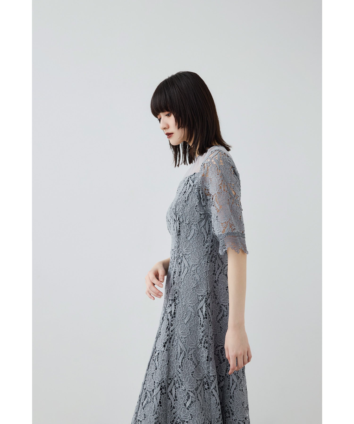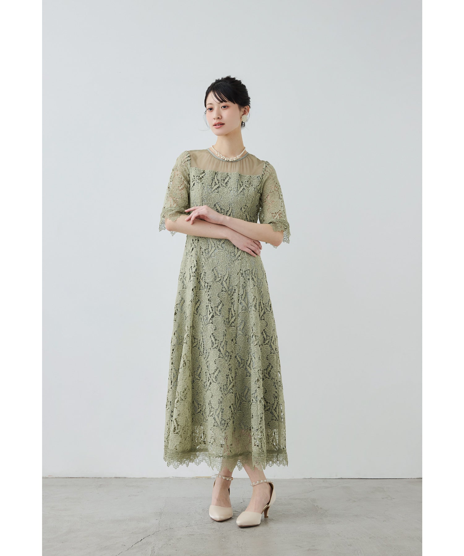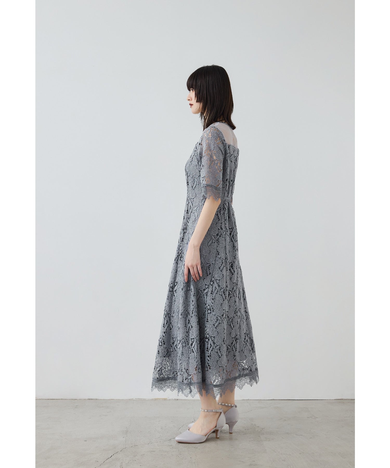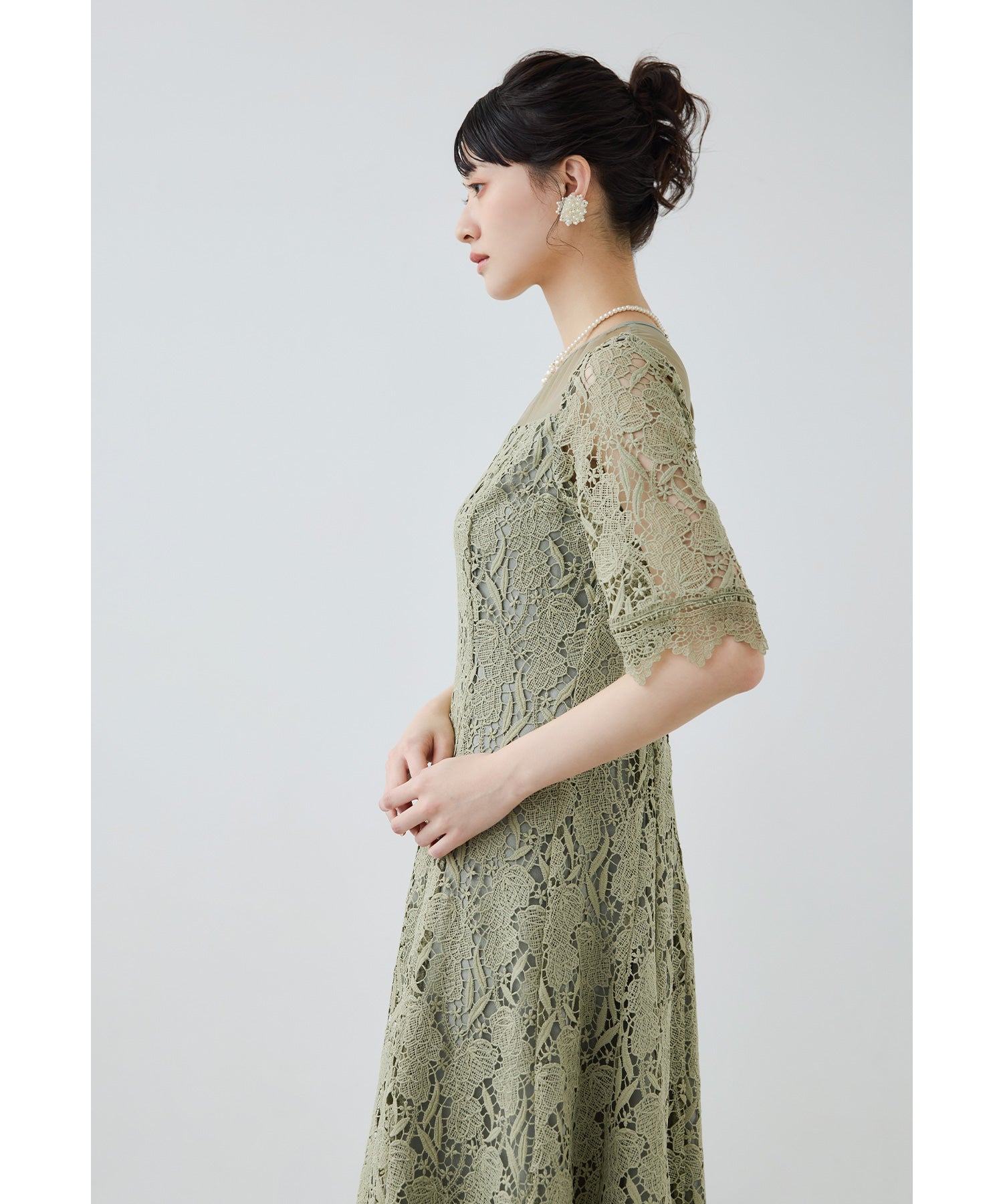 立体感のあるケミカルレースを贅沢に使用したオケージョンドレス。