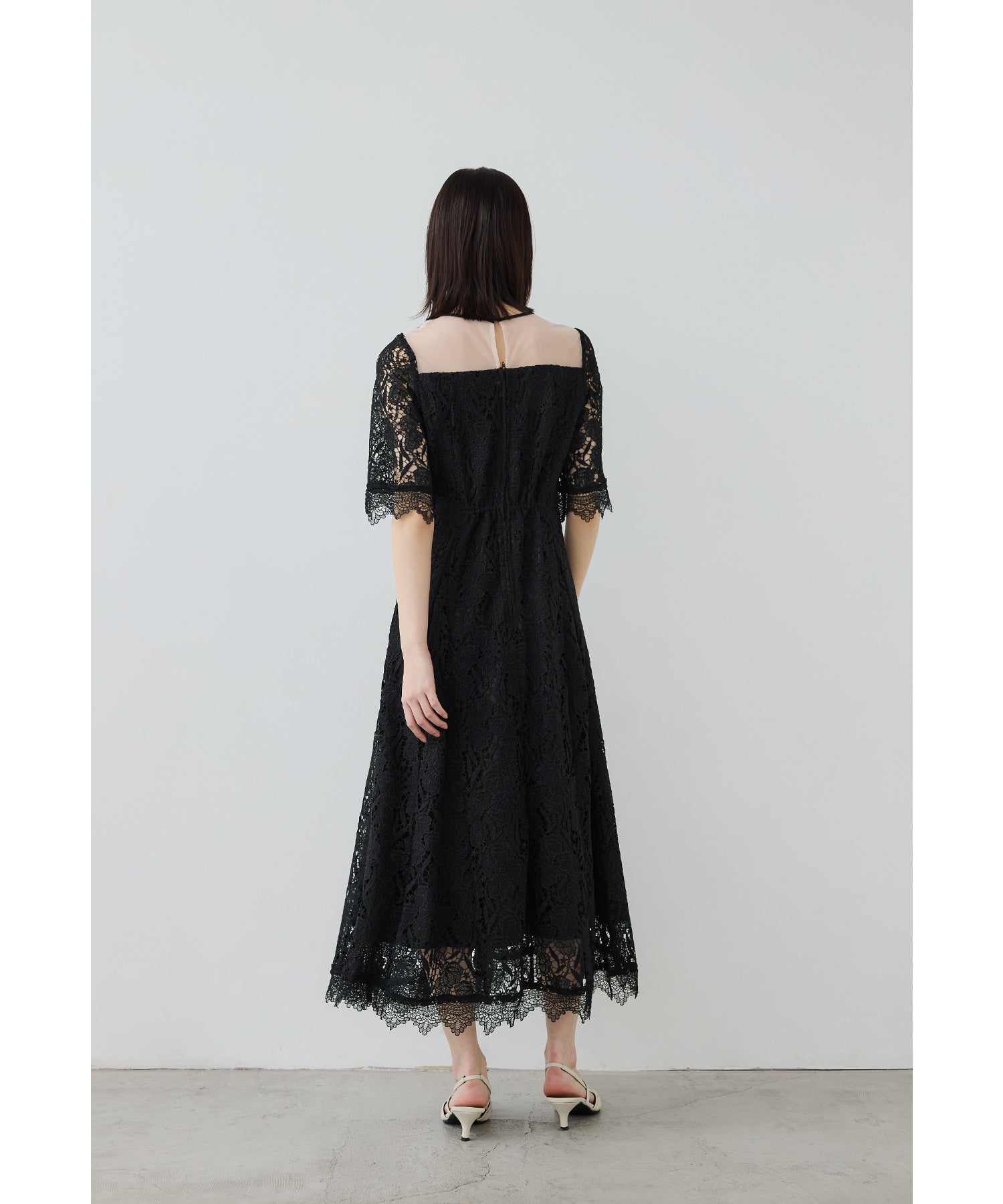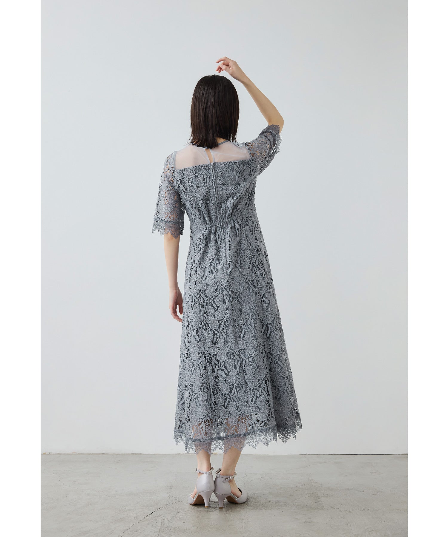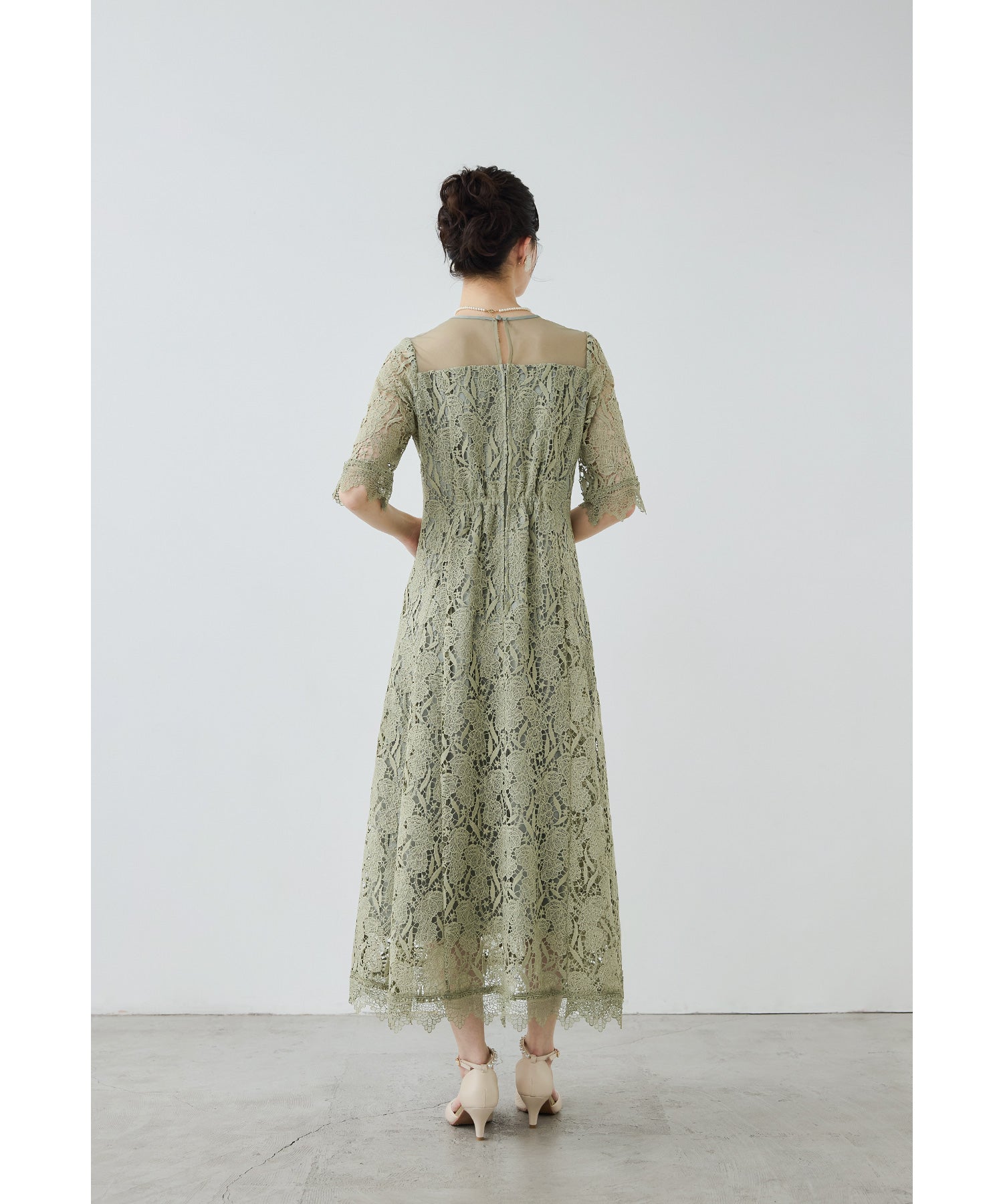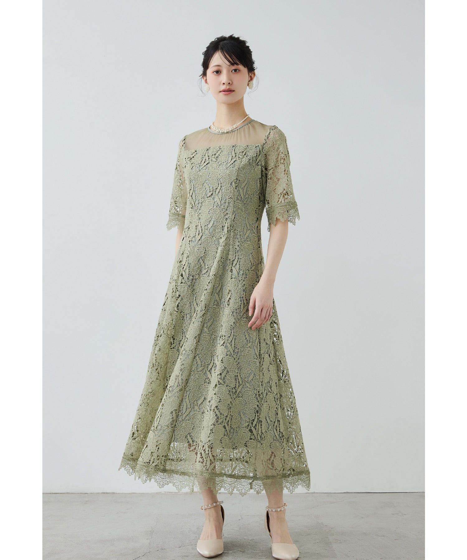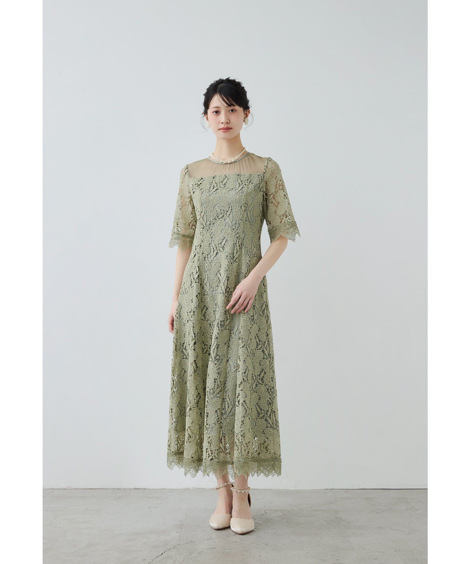 立体感のあるケミカルレースを贅沢に使用したオケージョンドレス。