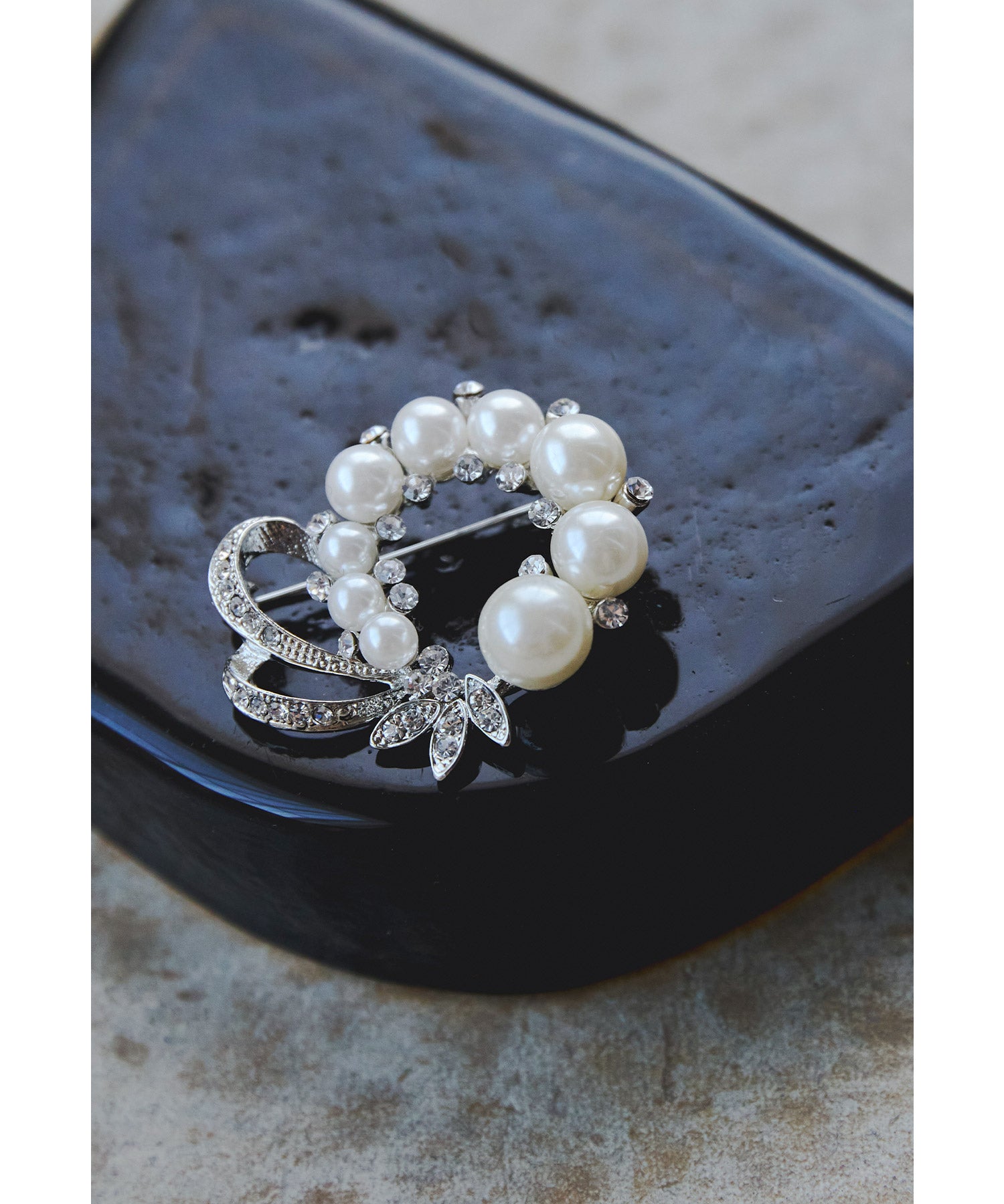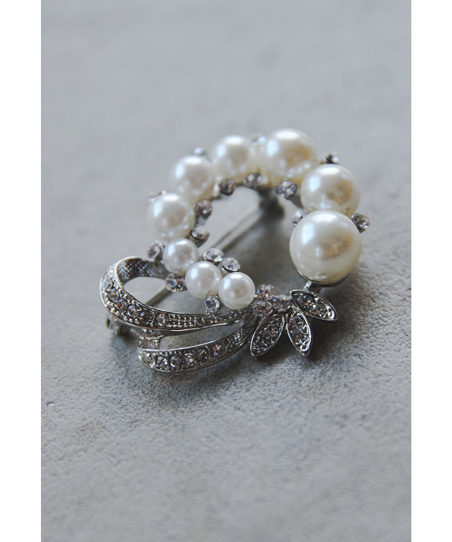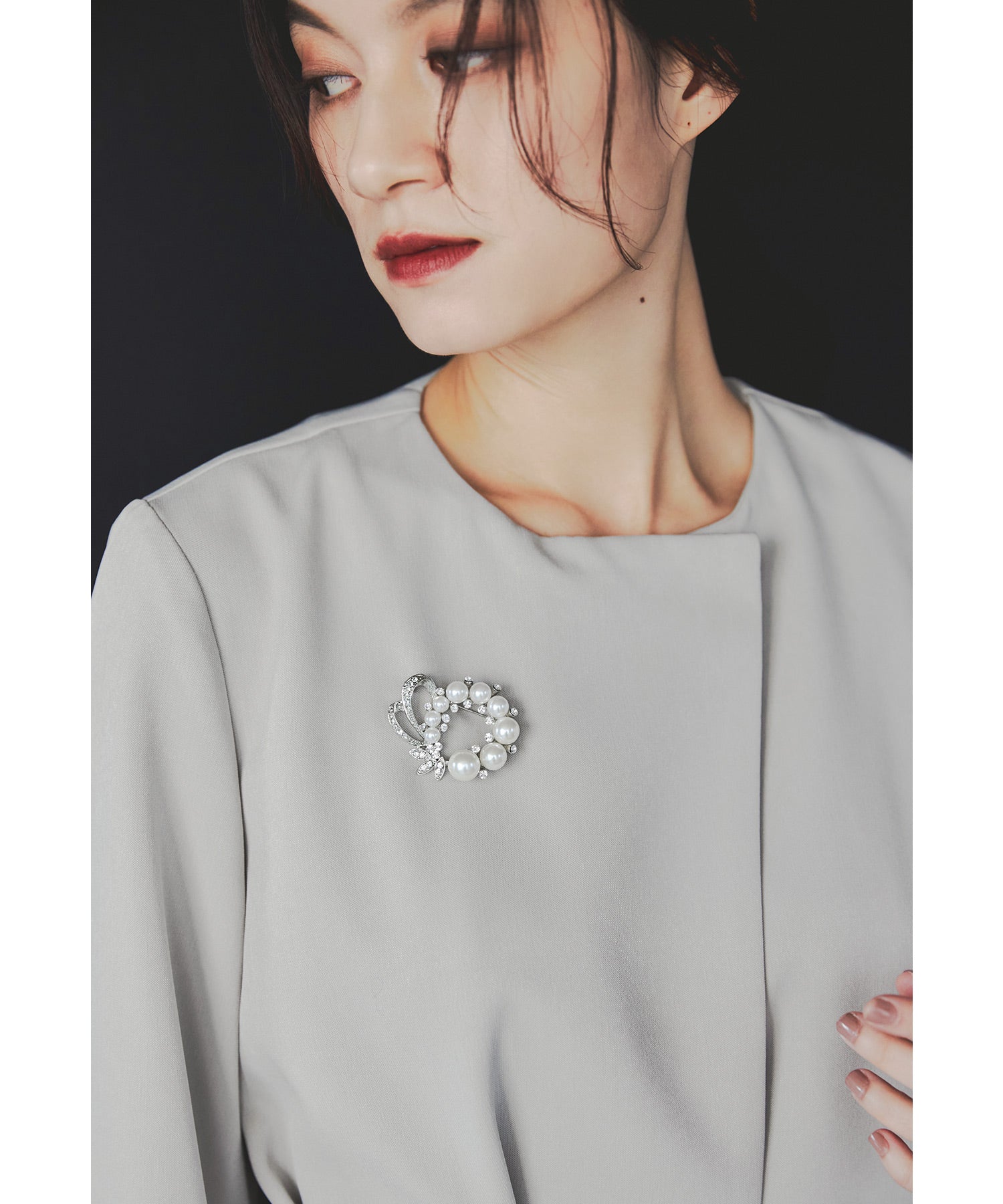 艶やかなパールとビジュ―をあしらったサークルブローチ。