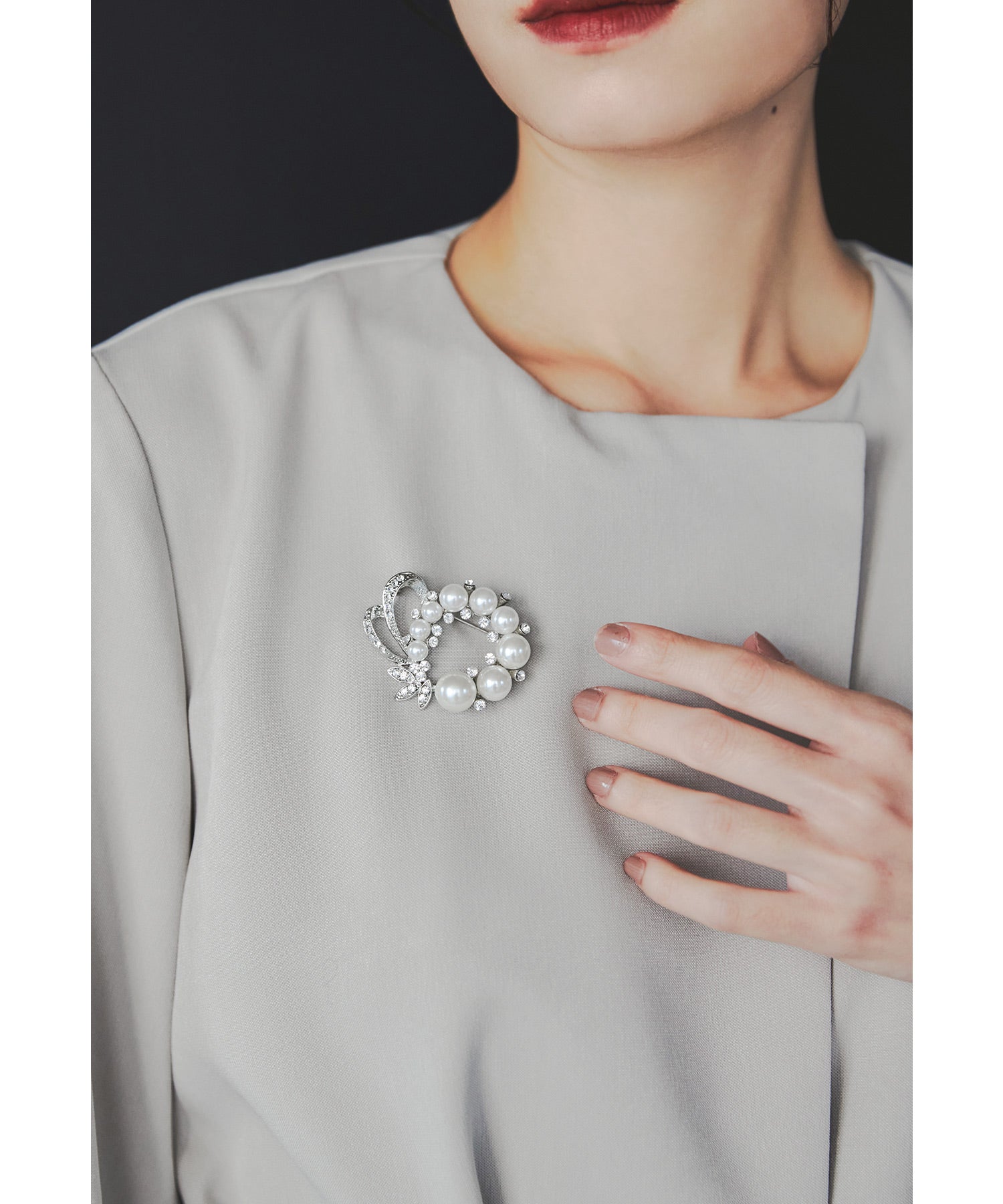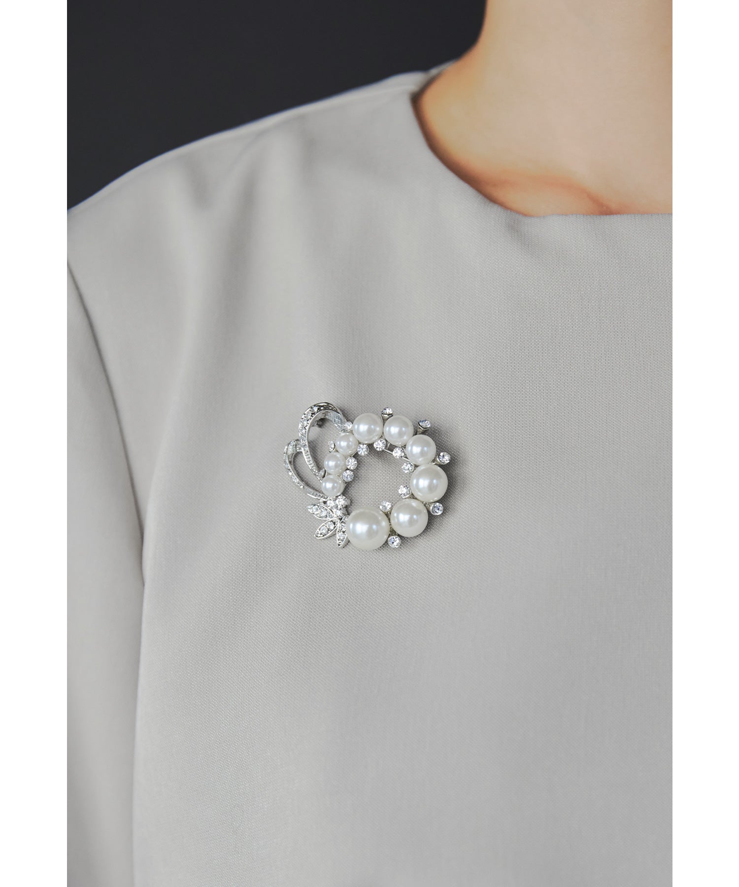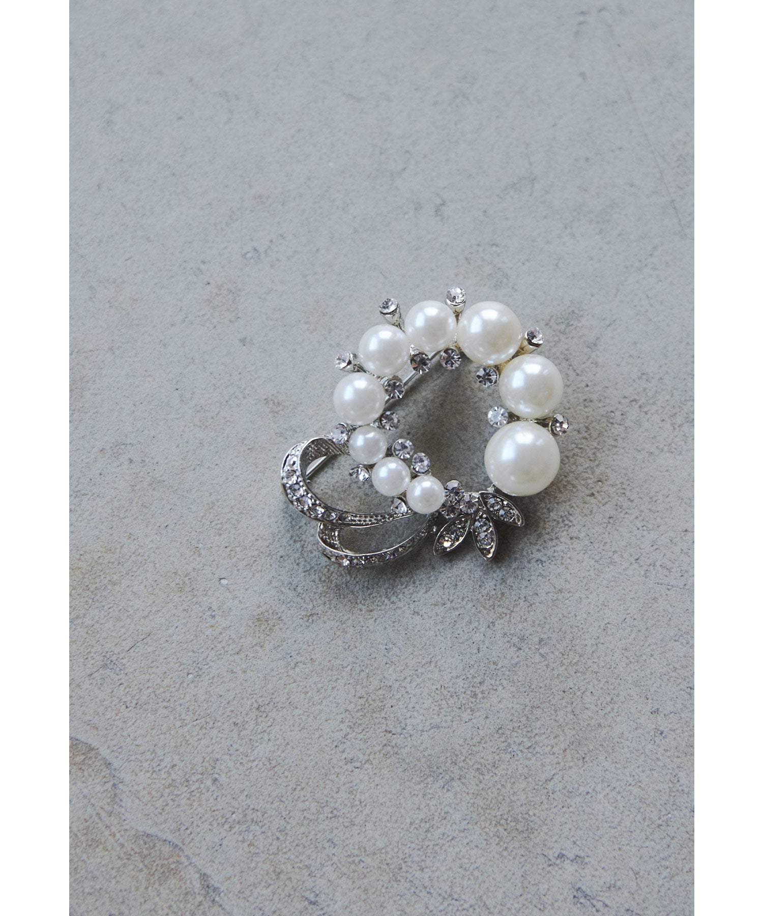 艶やかなパールとビジュ―をあしらったサークルブローチ。