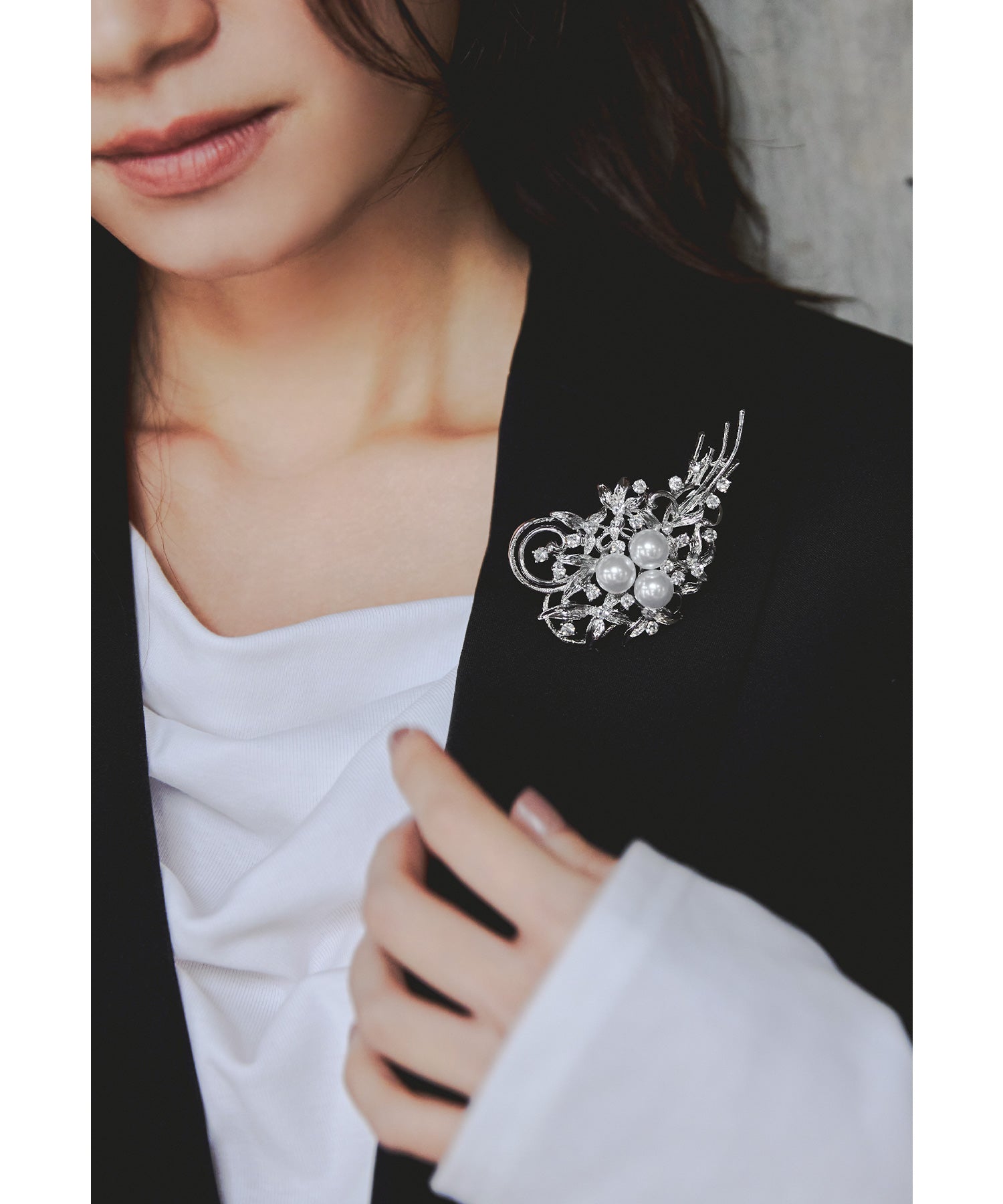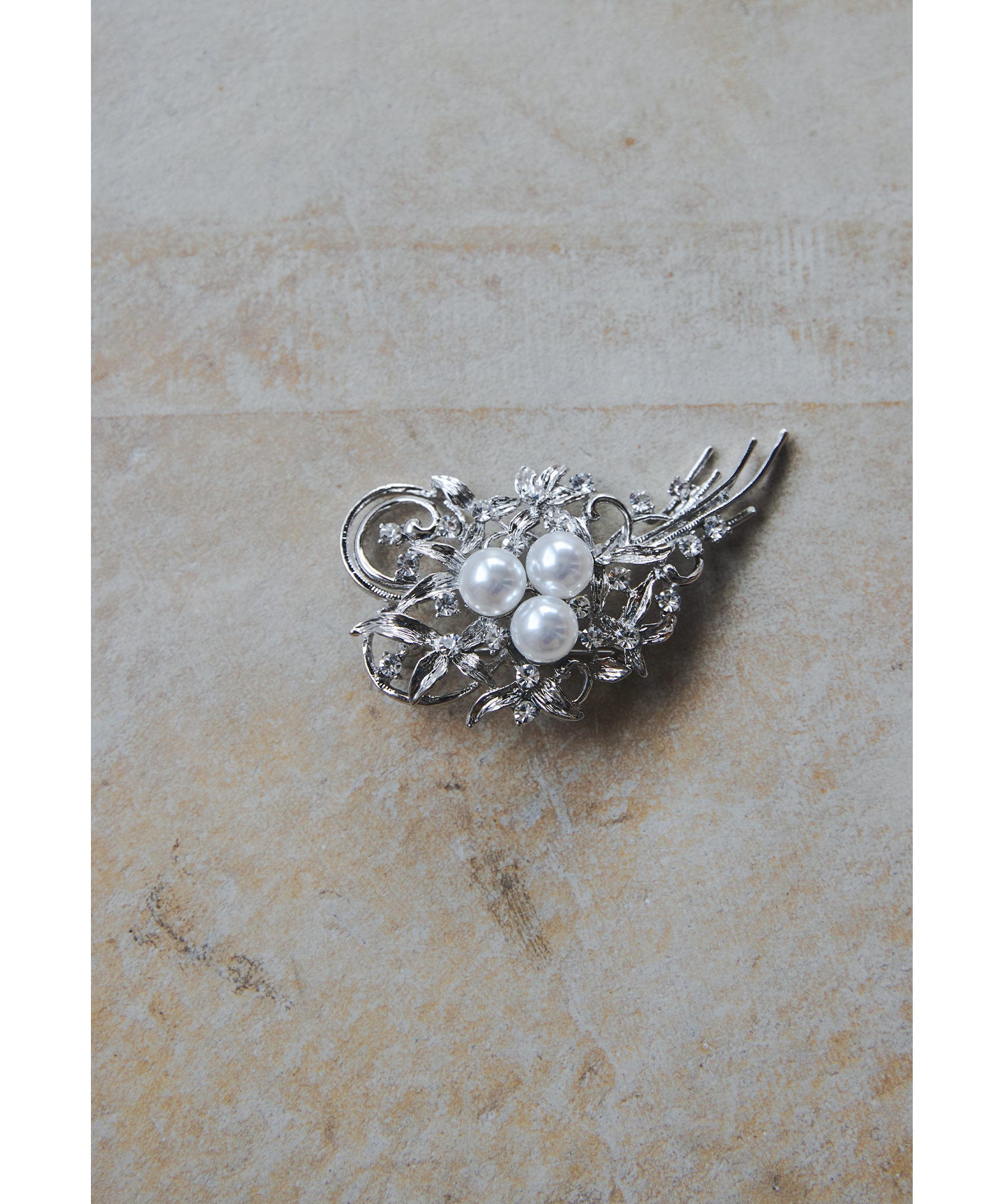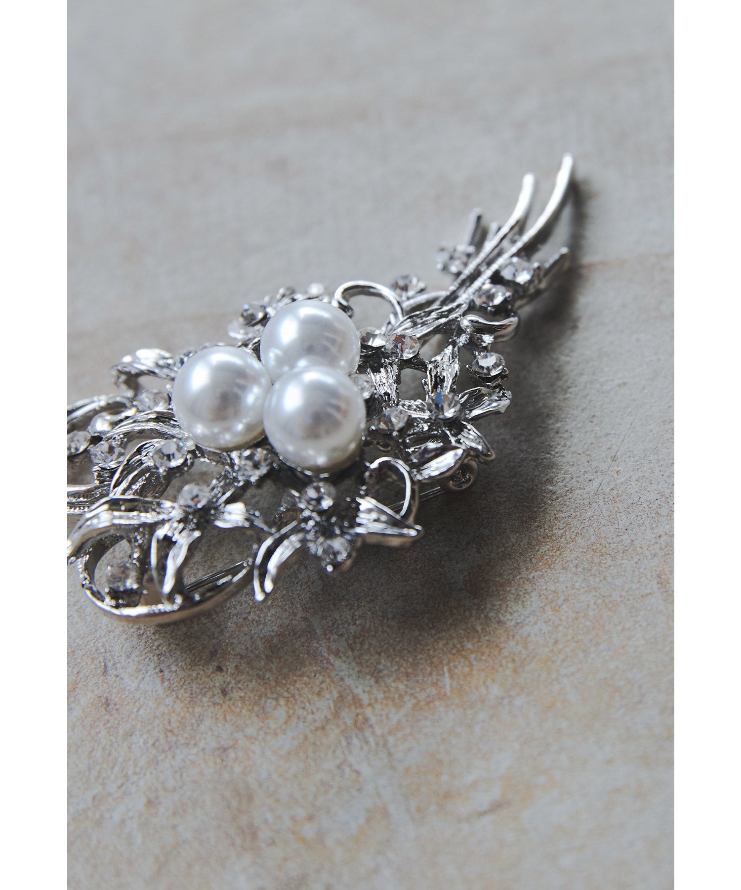 Zname パールプリュームブローチ コサージュ ビジュー シルバー フォーマル セレモニー 結婚式 二次会 成人式 同窓会 入学式 卒業式 お呼ばれ オケージョン