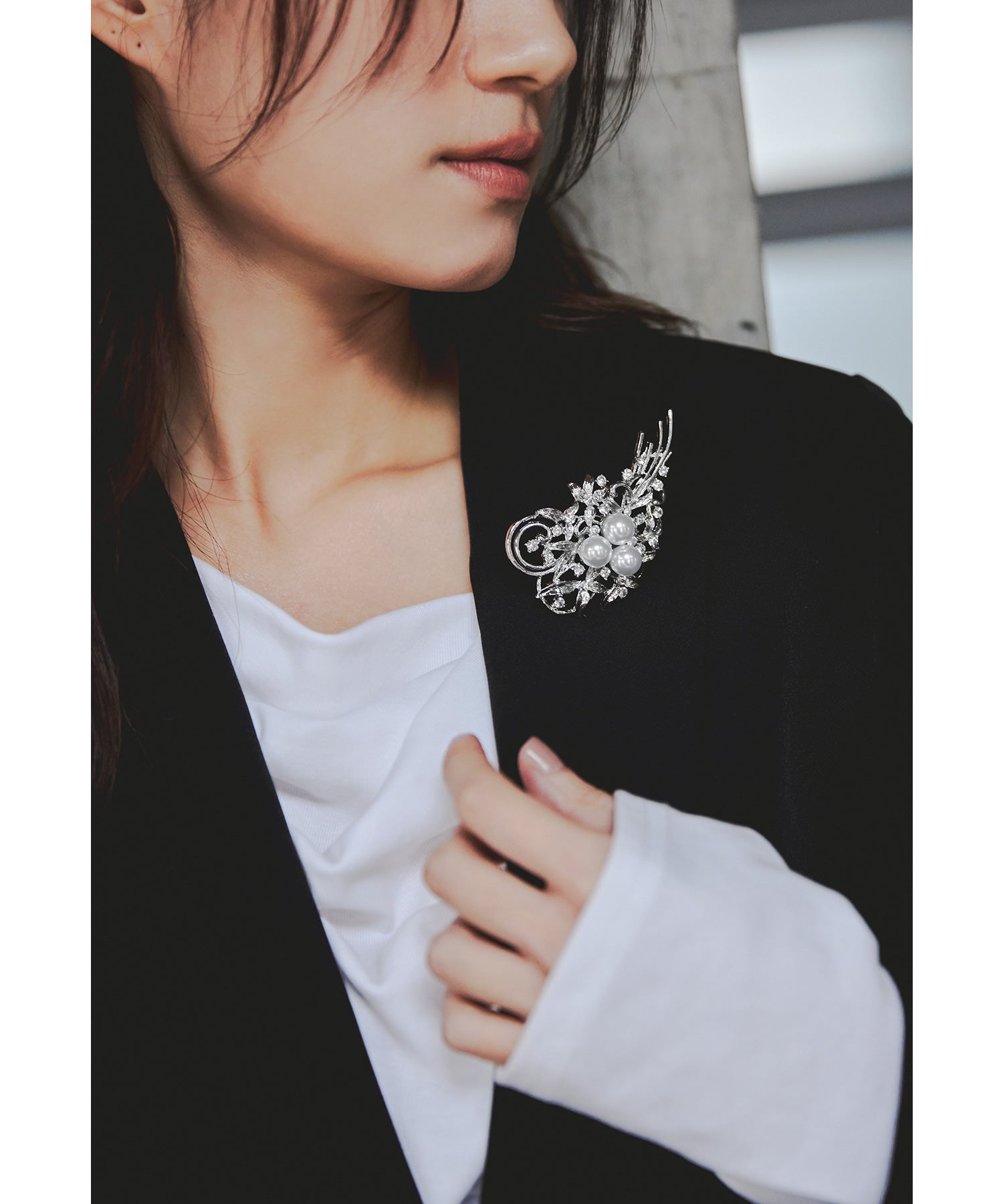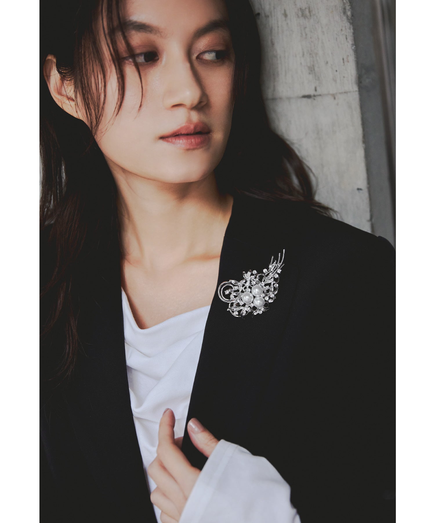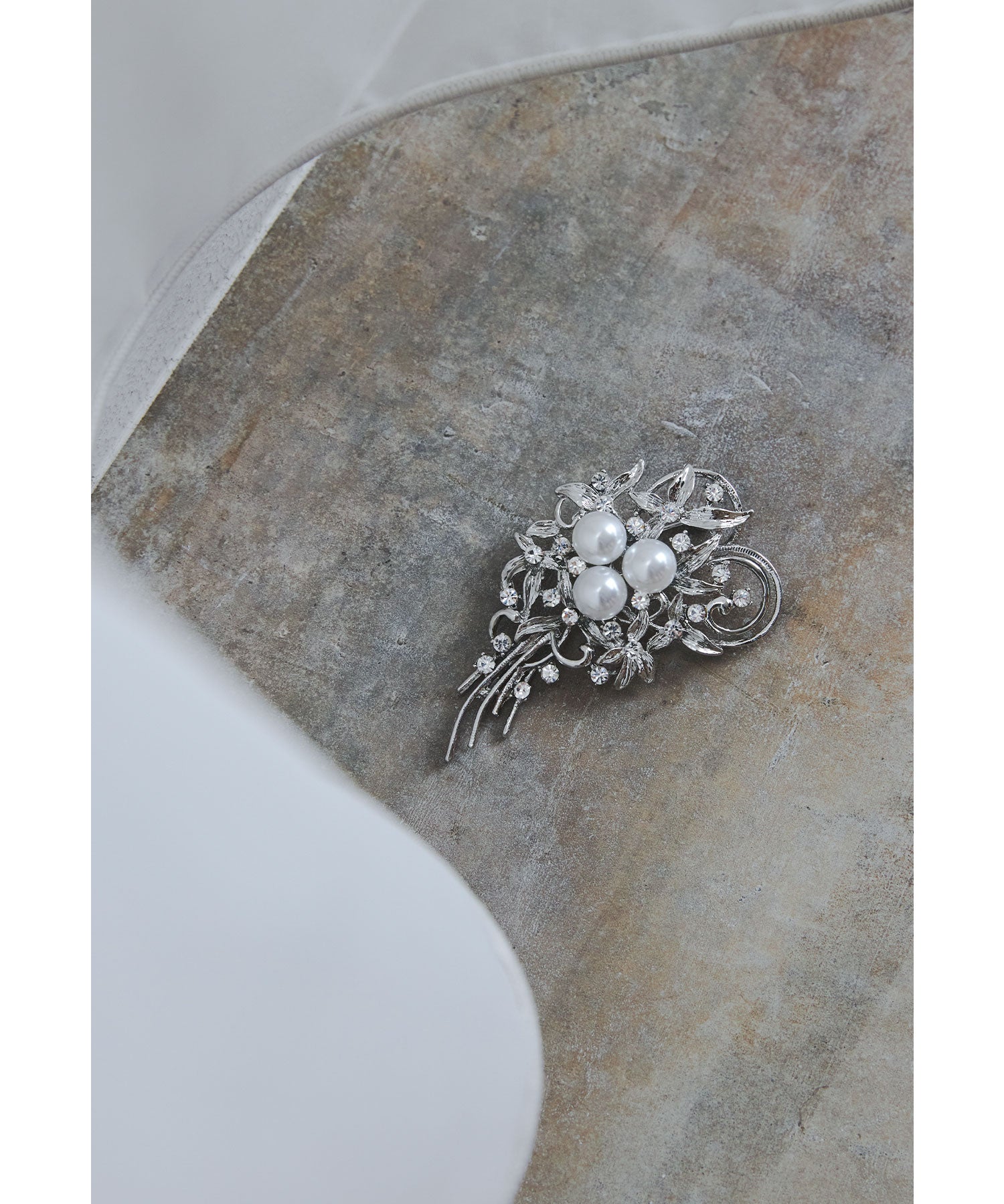 Zname パールプリュームブローチ コサージュ ビジュー シルバー フォーマル セレモニー 結婚式 二次会 成人式 同窓会 入学式 卒業式 お呼ばれ オケージョン