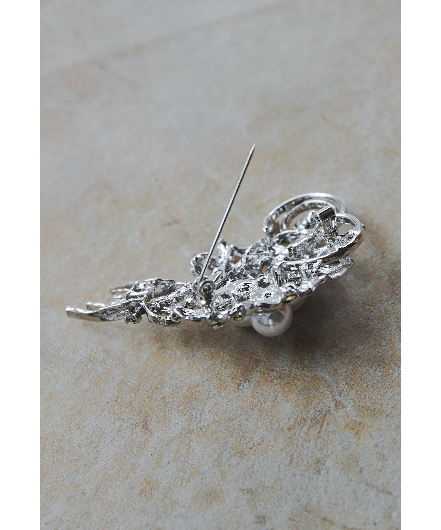 Rname パールプリュームブローチ コサージュ ピンバッチ ビジュー シルバー 羽 大きめ ボリューム 華やか アクセサリー ジュエリー フォーマル パーティー 結婚式 披露宴 二次会 成人式 同窓会 卒業式 入学式 お呼ばれ セレモニー オケージョン ドレス スーツ プレゼント ギフト