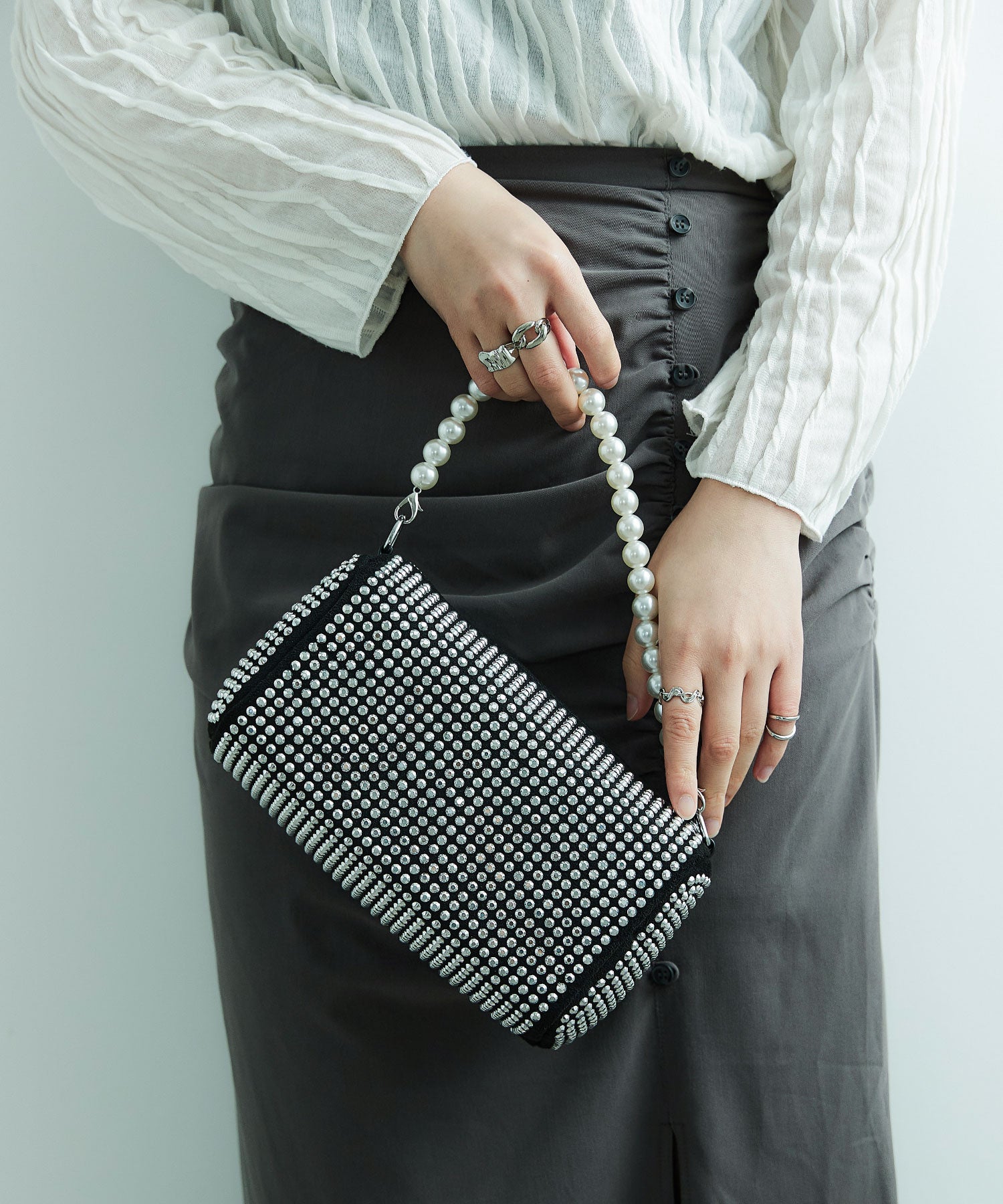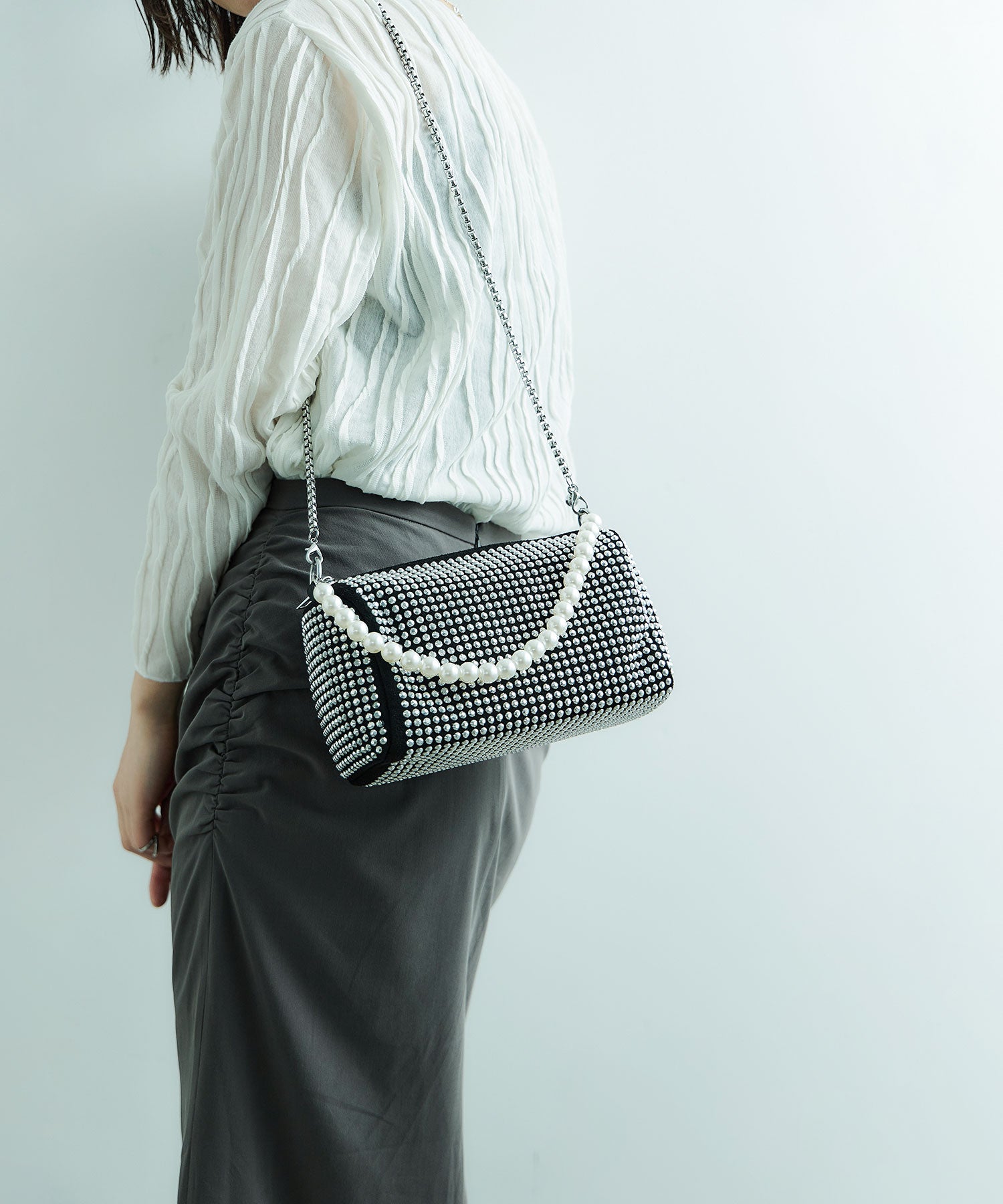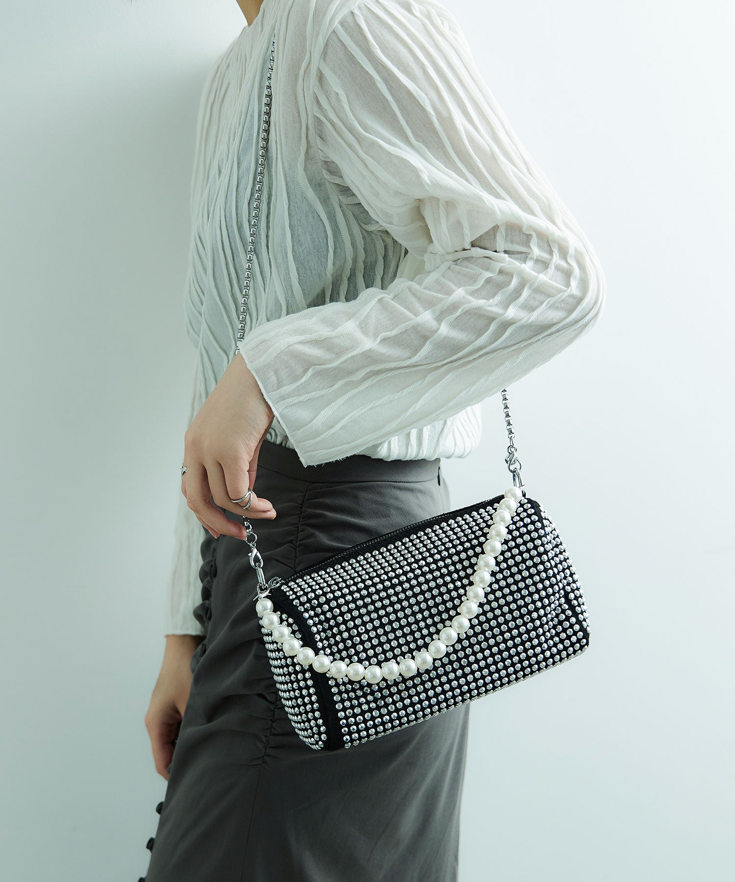 Rname パーティー ラインストーン パーティーバッグ ボストンバッグ ハンドバッグ ショルダーバッグ 斜め掛け ミニバッグ ビジュー パール マチあり 2way 肩掛け デイリー オケージョン 結婚式 セレモニー 入園式 卒園式 入学式 卒業式 謝恩会 二次会 お呼ばれ 成人式 シルバー 黒