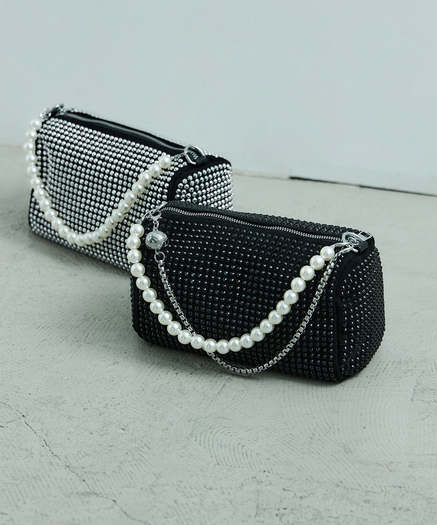Zname パールハンドルラインストーンボストンバッグ