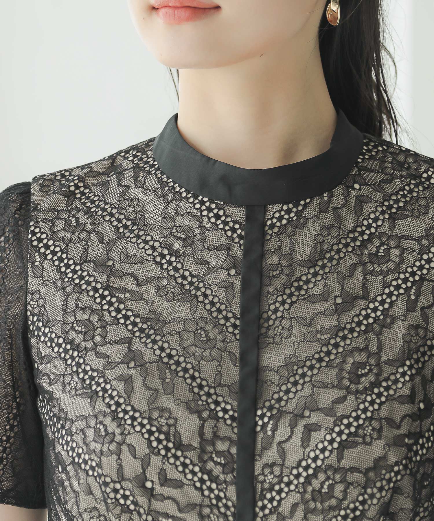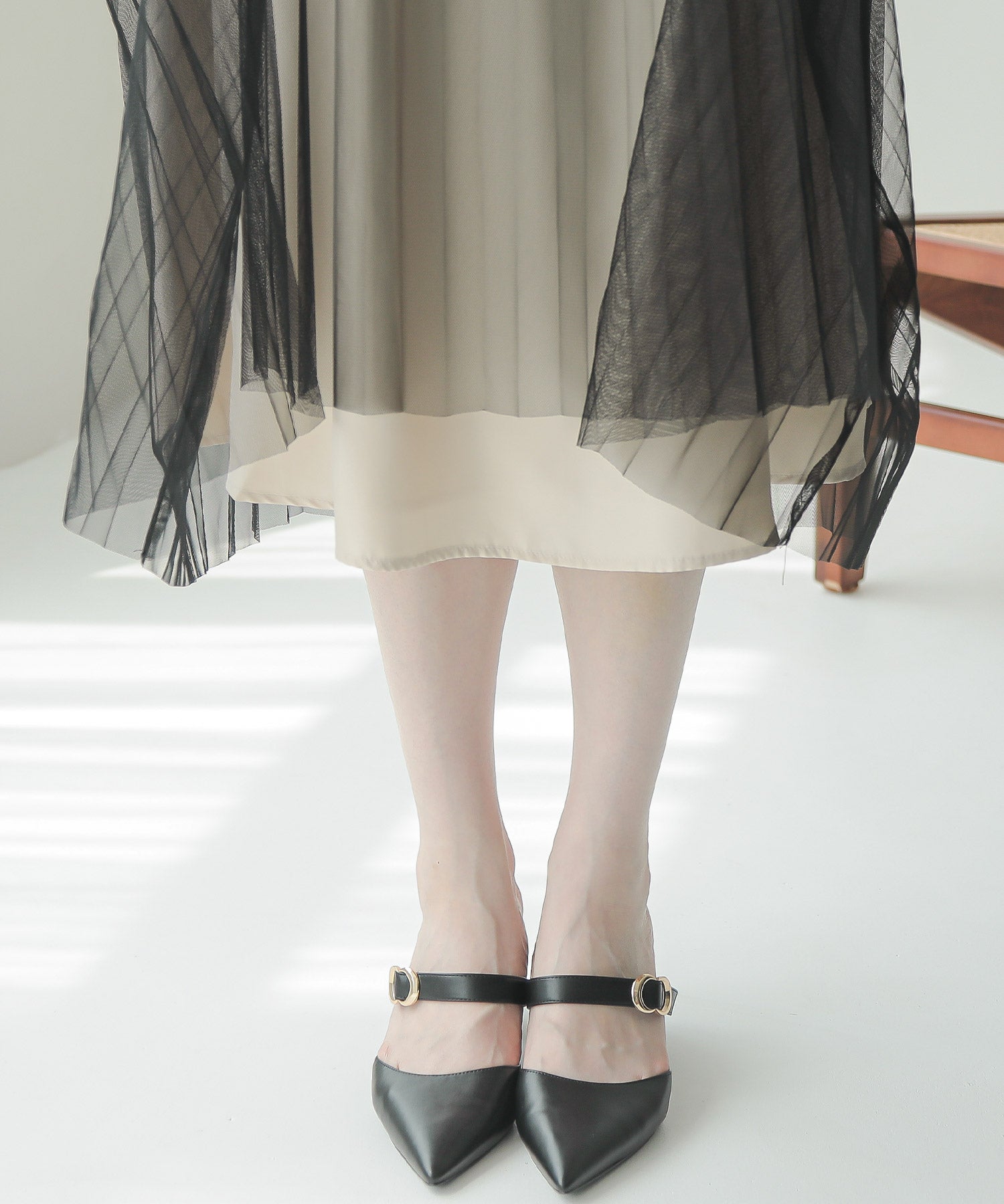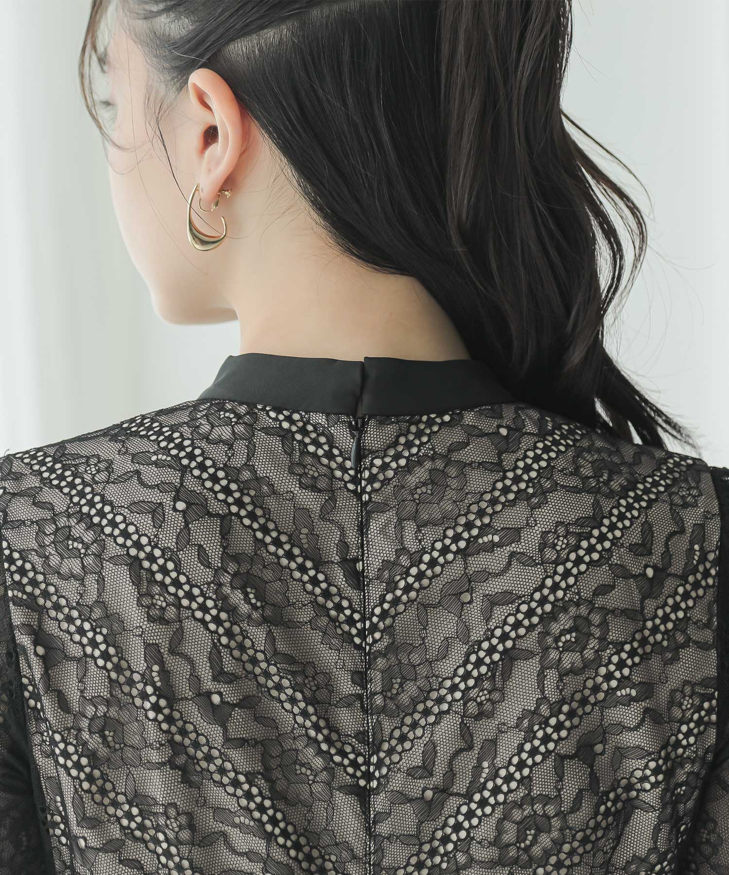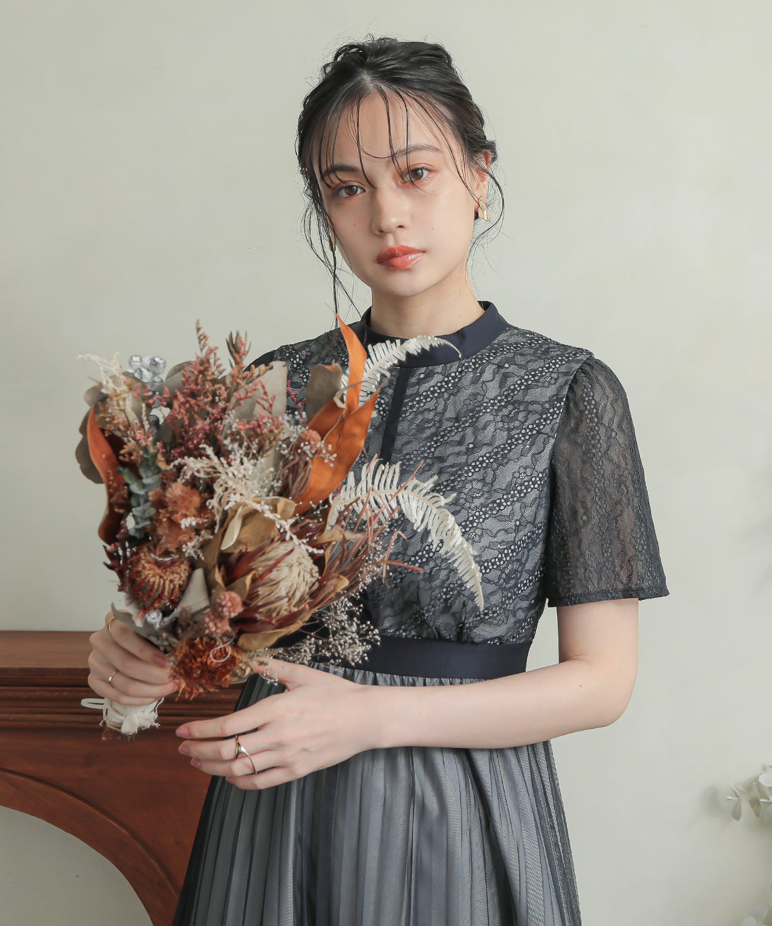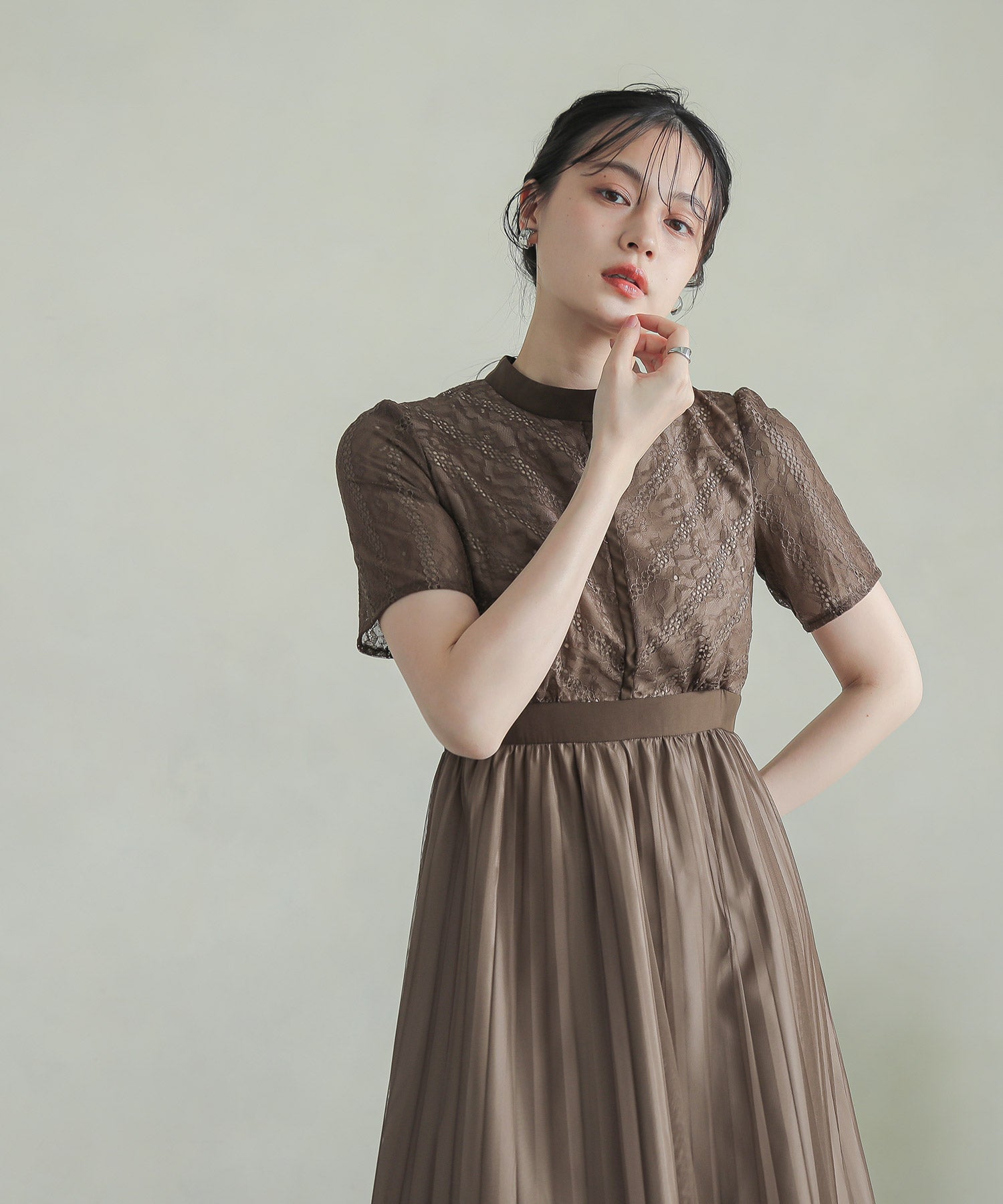 レースの透け感とチュールプリーツが上品なワンピースドレス。