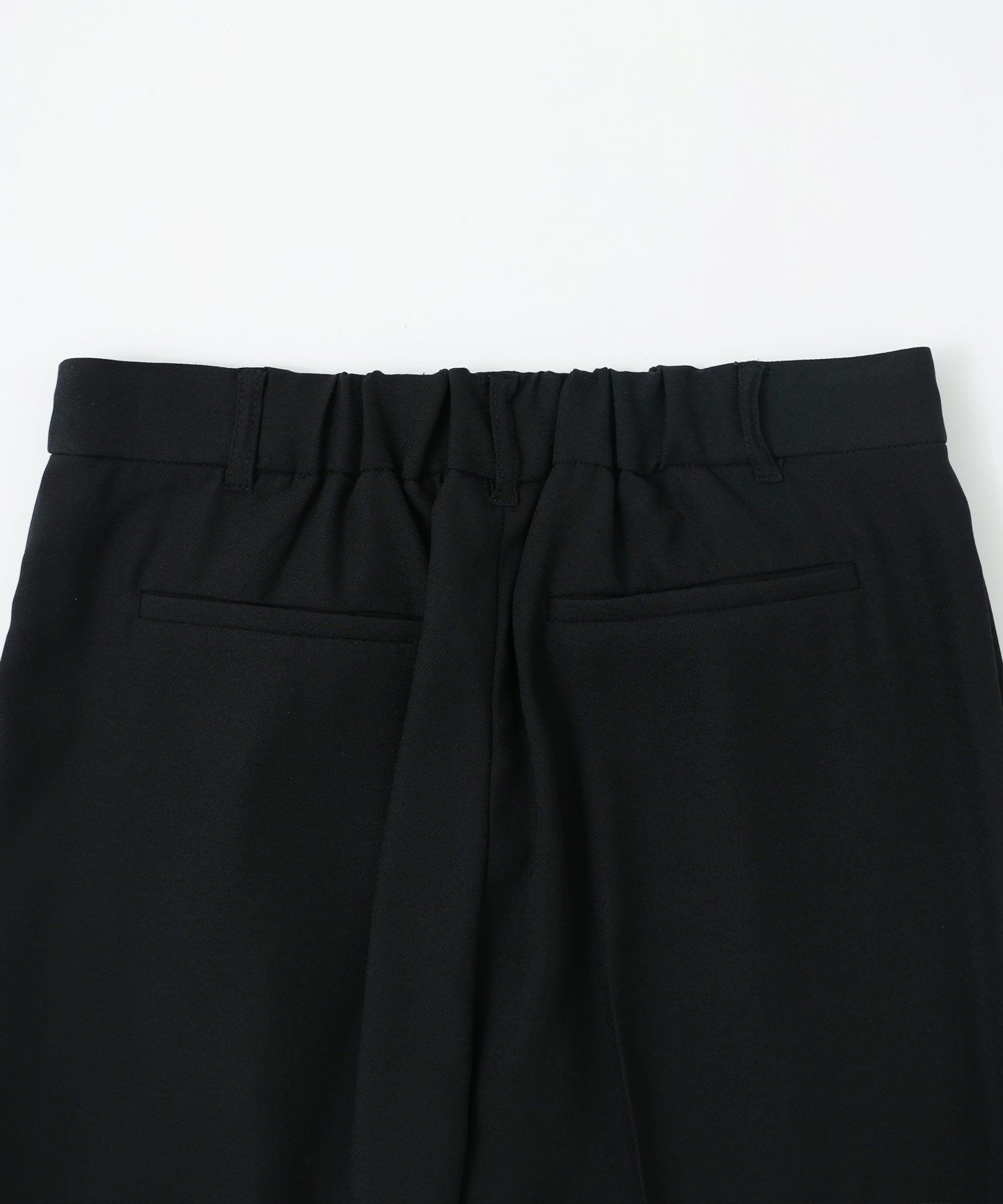 シンプルながらラインが美しく、後ろウエストゴムでストレスフリーな履き心地。