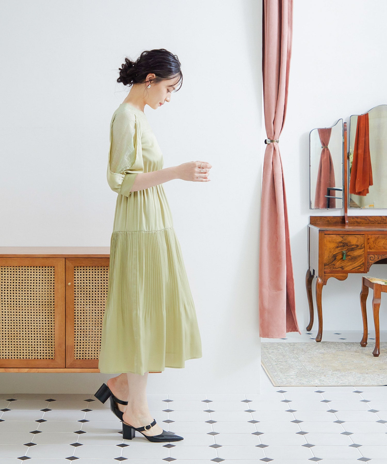 裾にかけて揺れるヒダプリーツは、華やかでエレガントな印象を高めます。