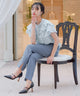 ピンタックのデザインとパール釦がアクセントで上品な雰囲気に。
