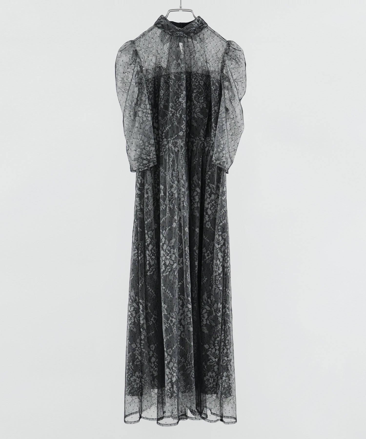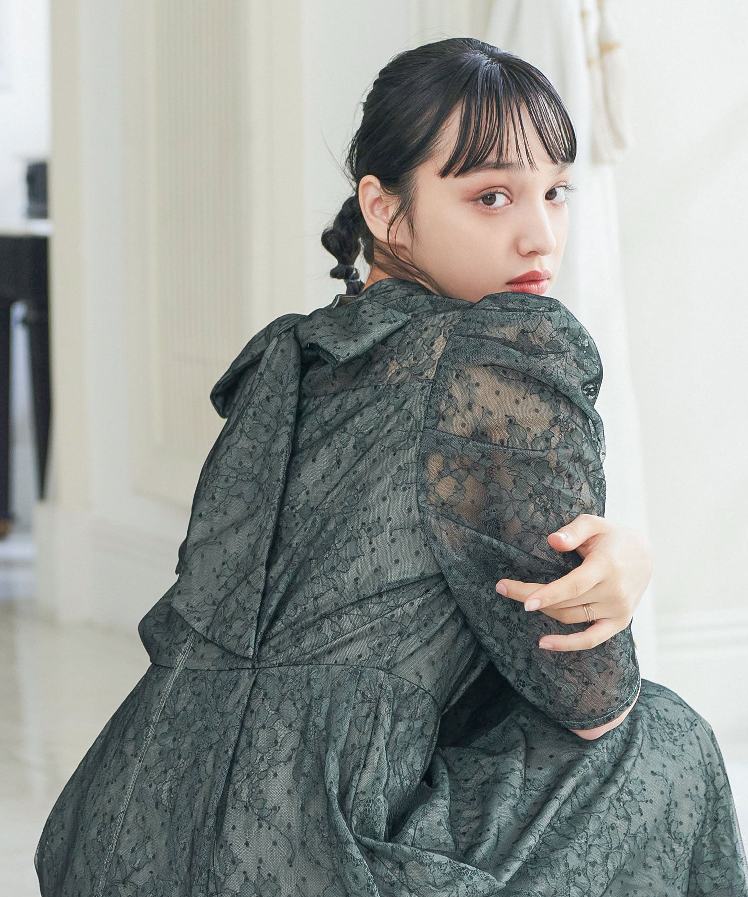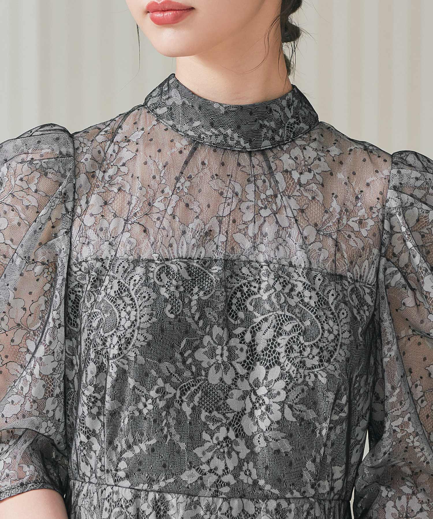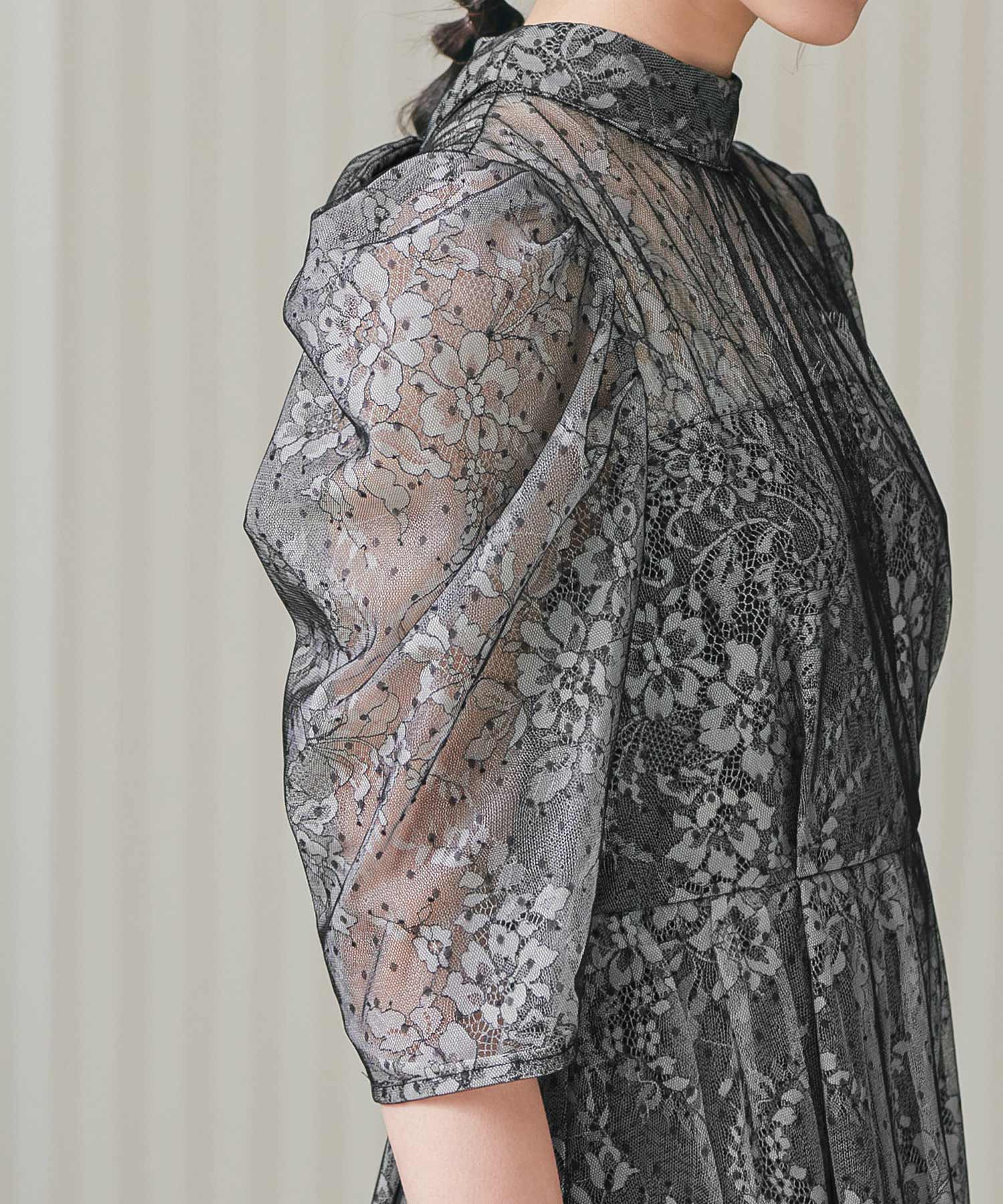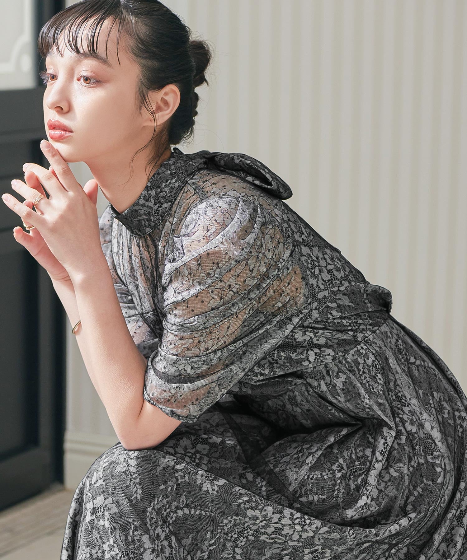 柄レースとドットチュールを重ねた贅沢感ある上品な一着。