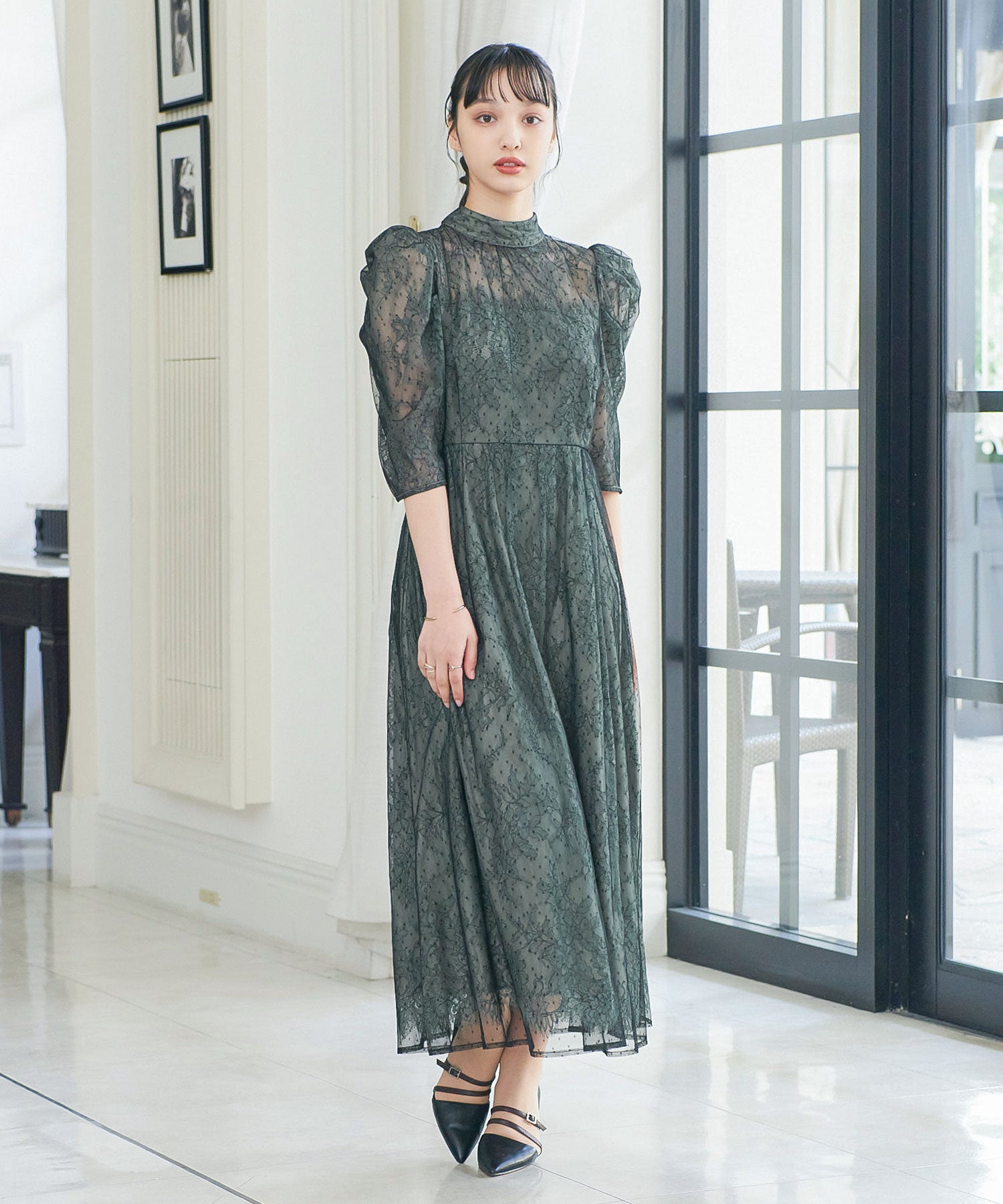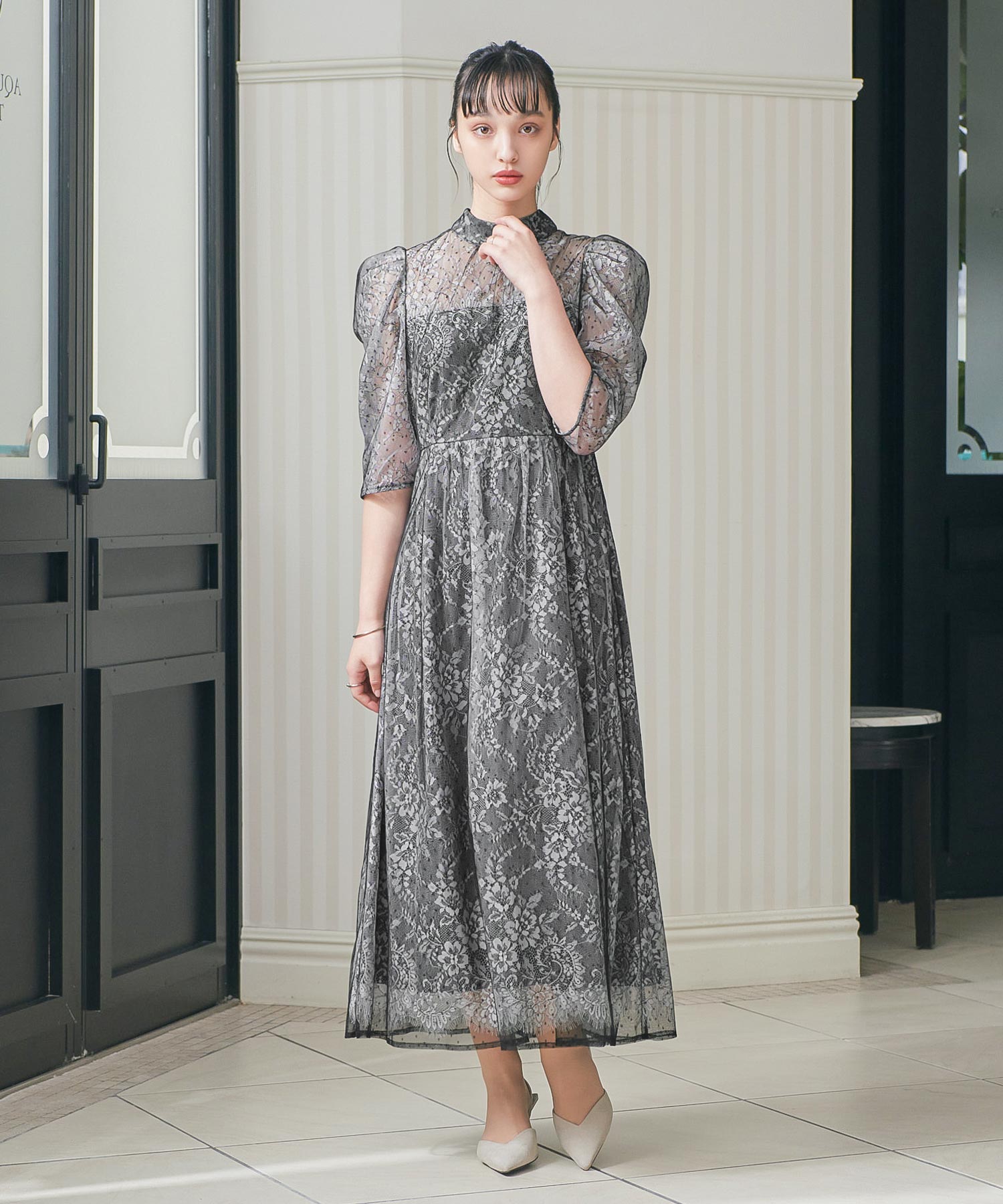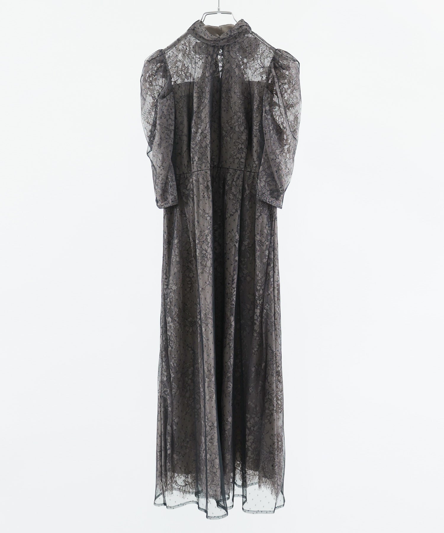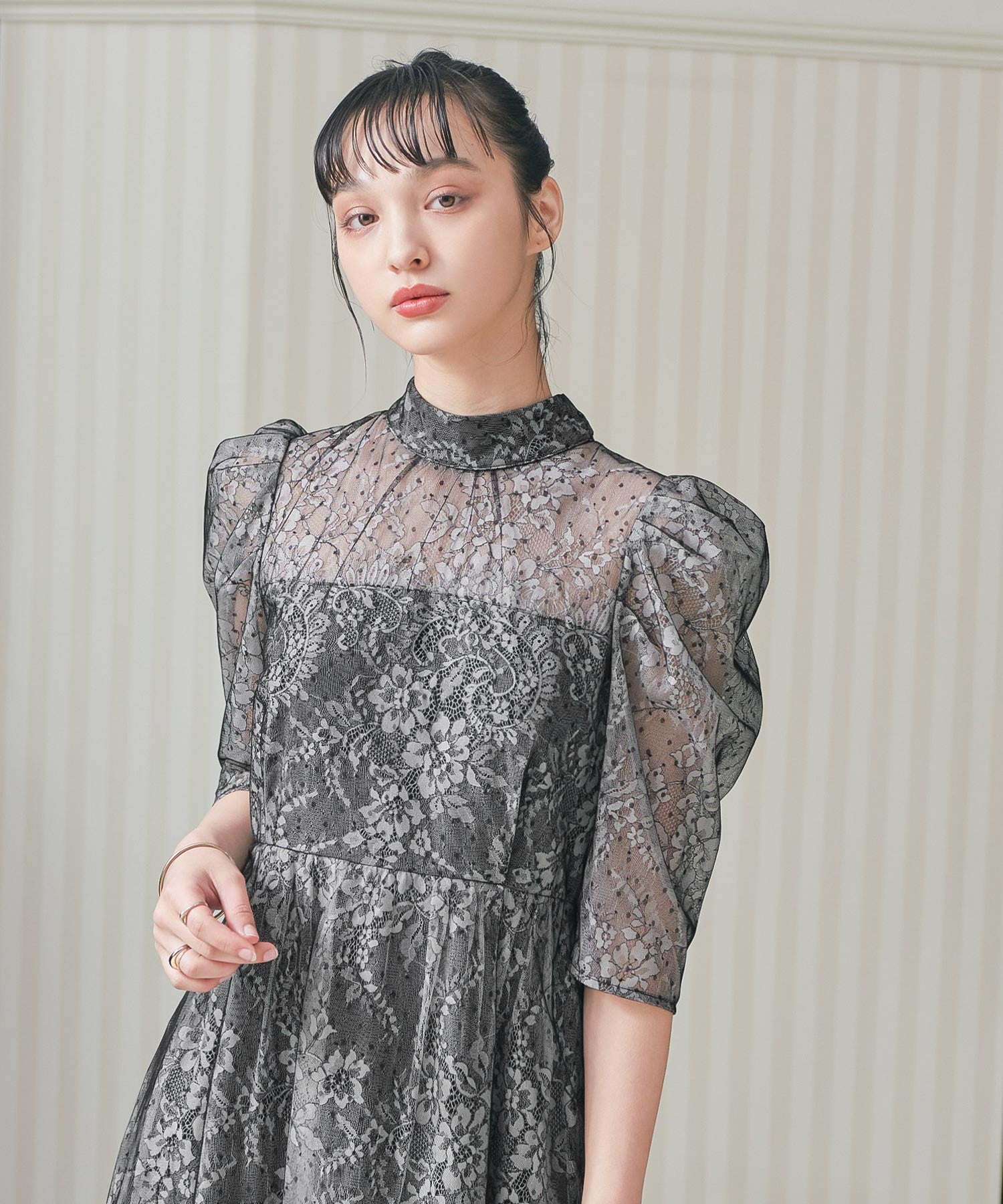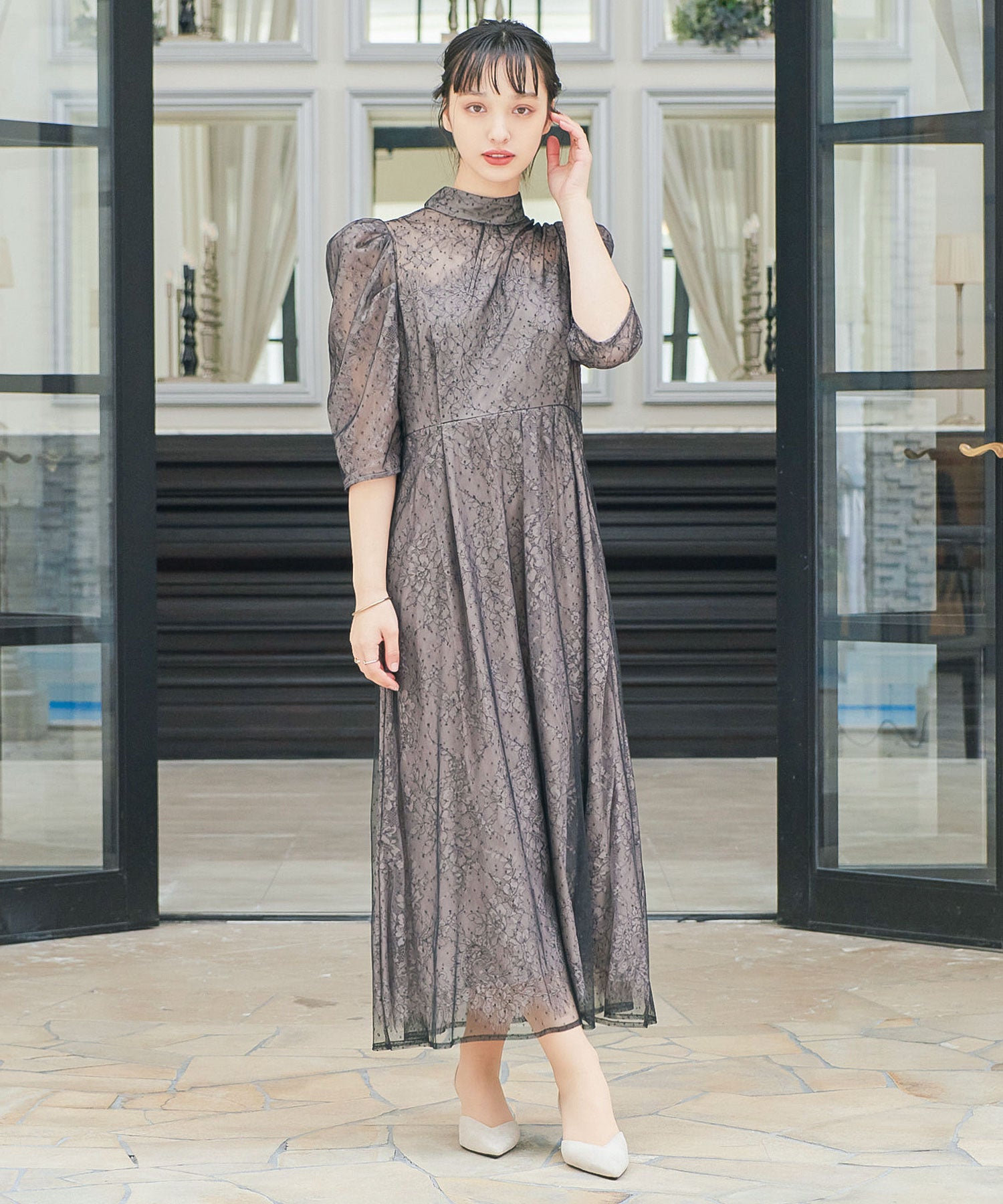 柄レースとドットチュールを重ねた贅沢感ある上品な一着。