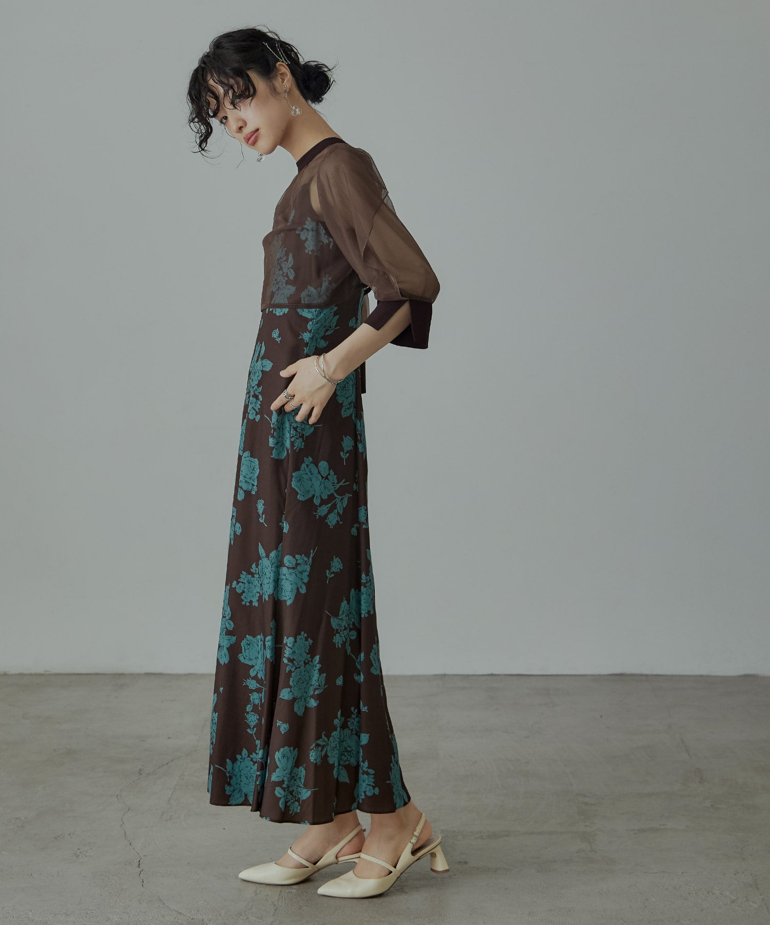 Rname 結婚式 ワンピース パーティードレス ボレロ キャミワンピ 2点セット 花柄 フラワープリント マーメイドスカート シアー チュール リボン ショート丈 羽織 ロング丈 七分袖 他と被らない オケージョン 二次会 謝恩会 成人式 同窓会 女子会 お呼ばれ 入学式 卒業式 S M L