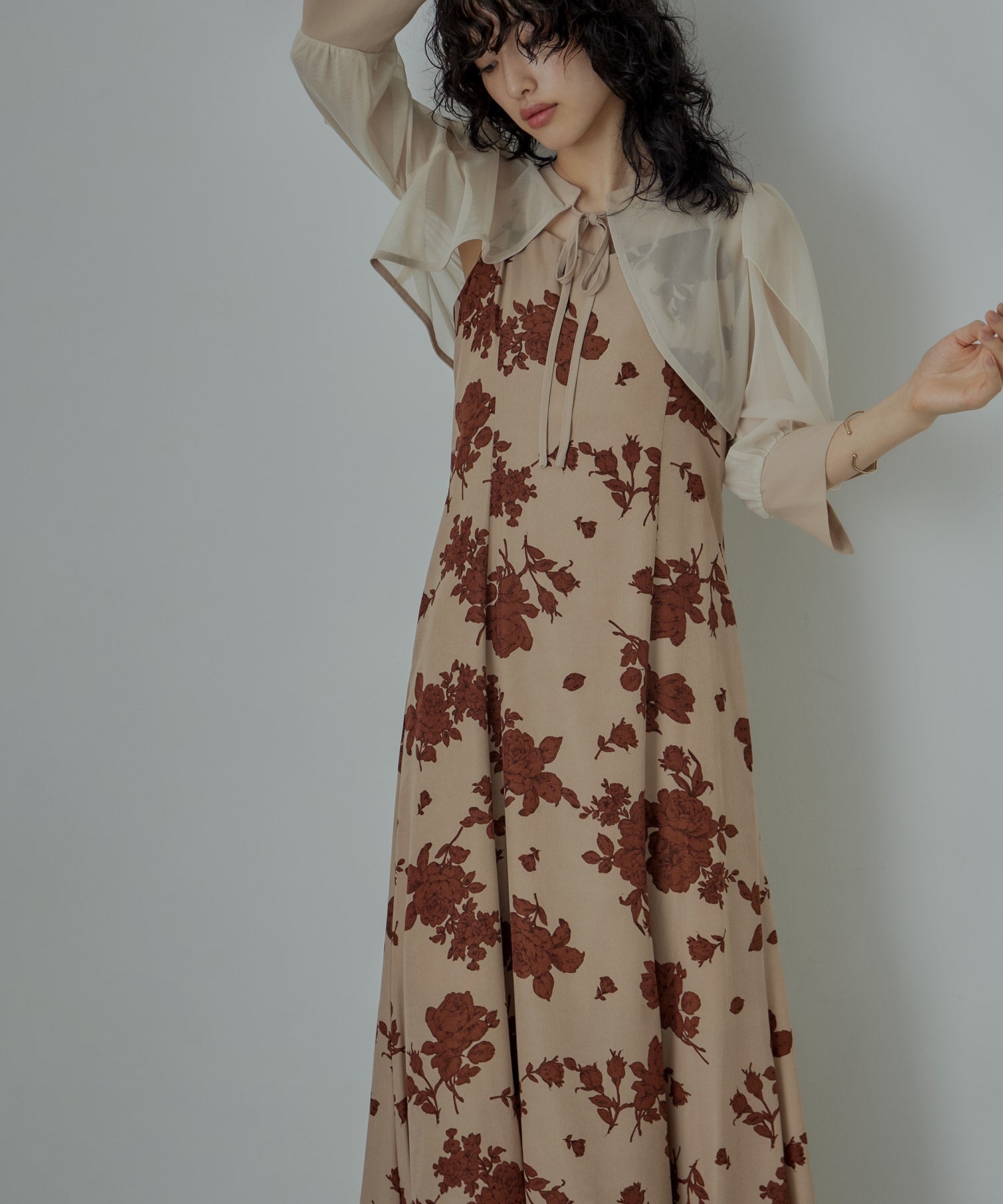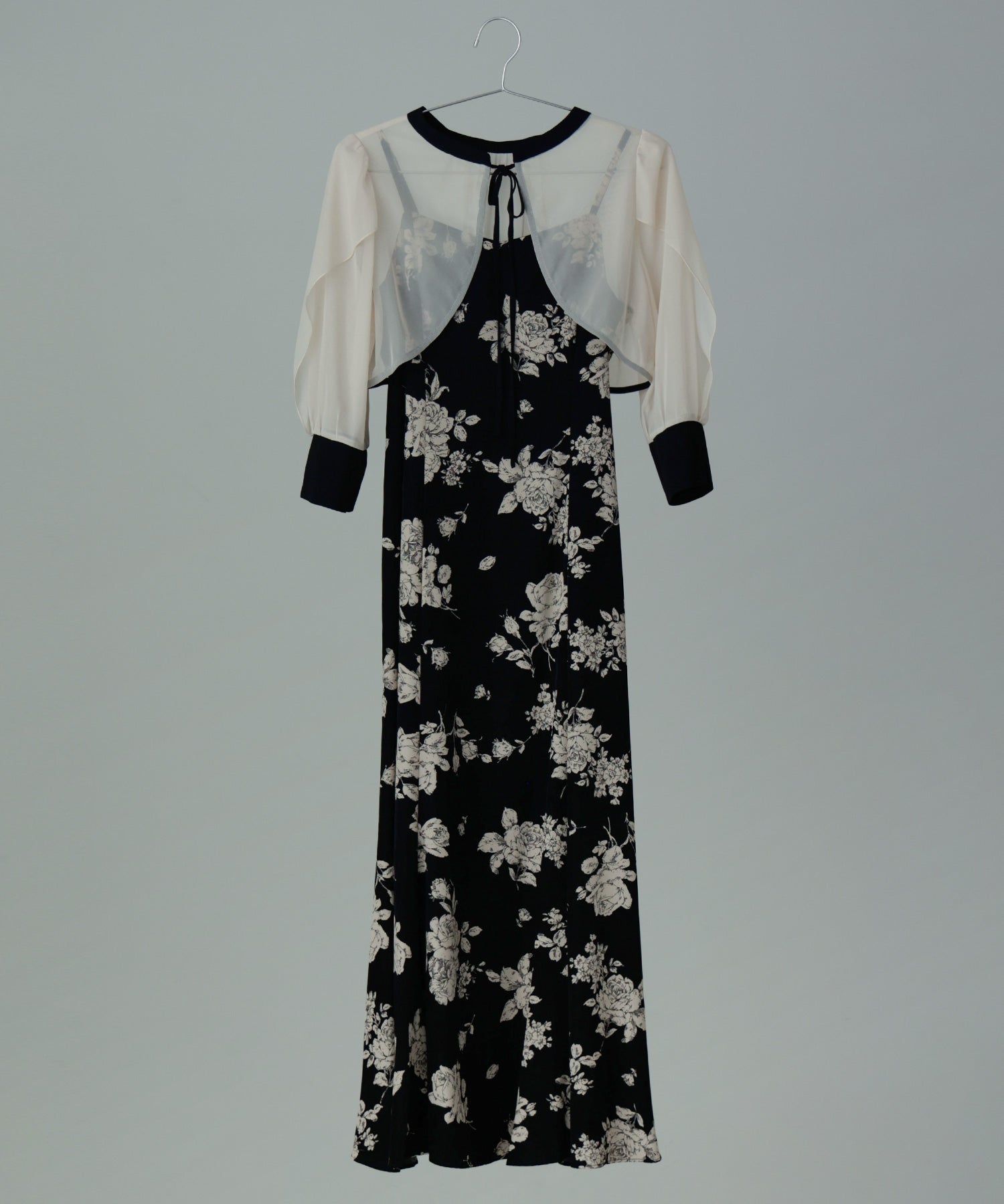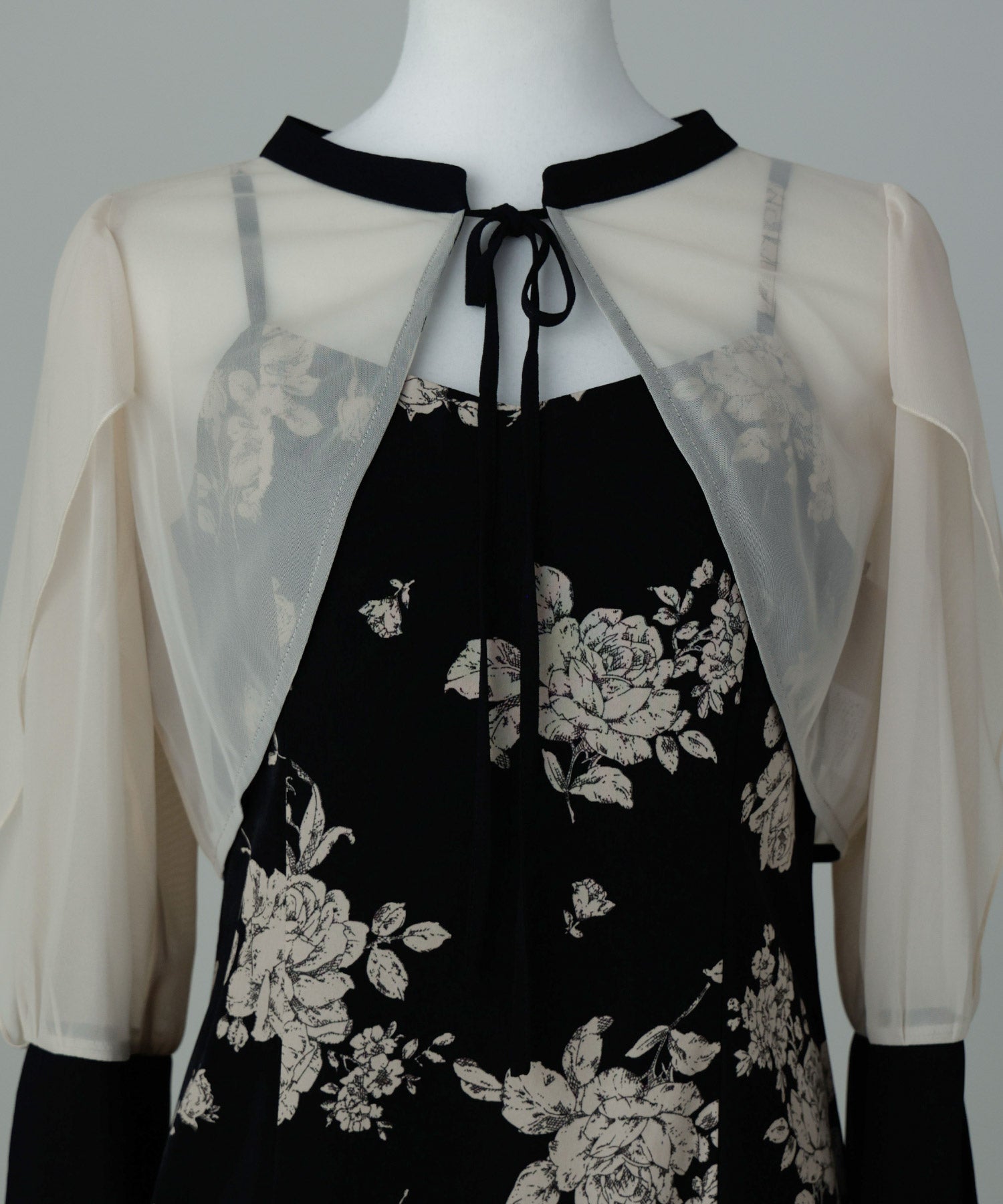 Zname チュールボレロフラワープリントキャミワンピレイヤードドレス