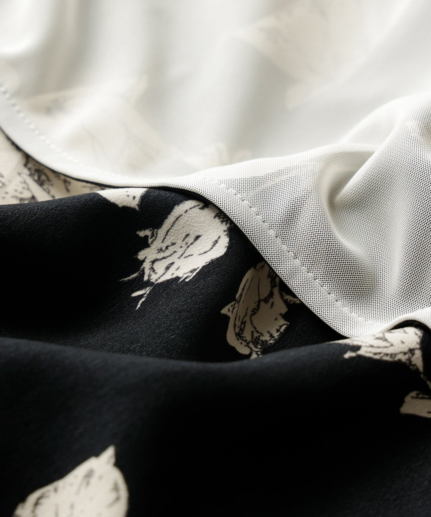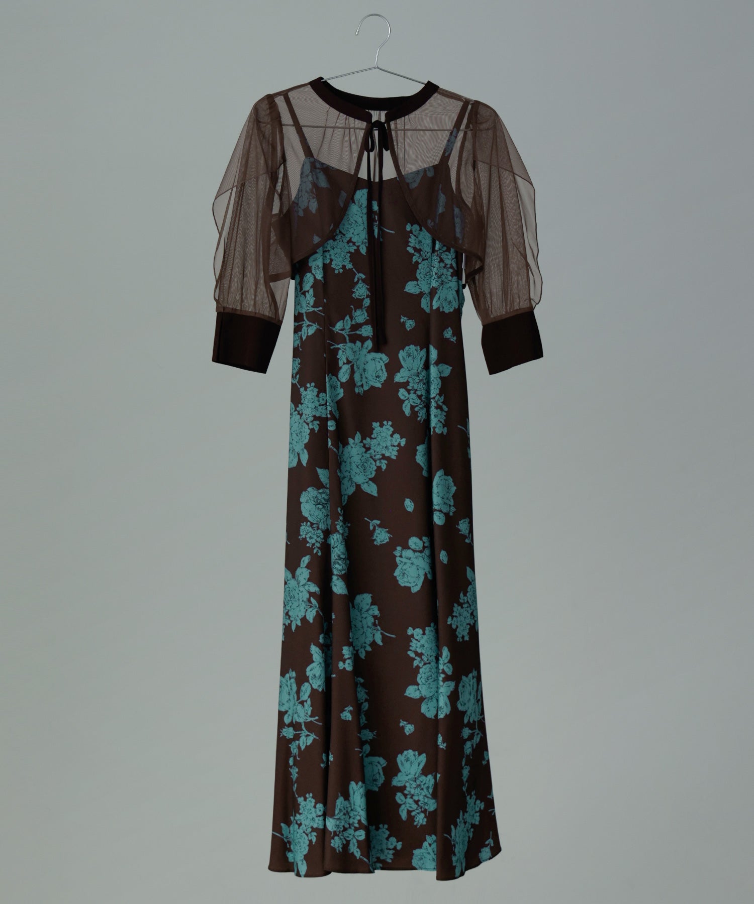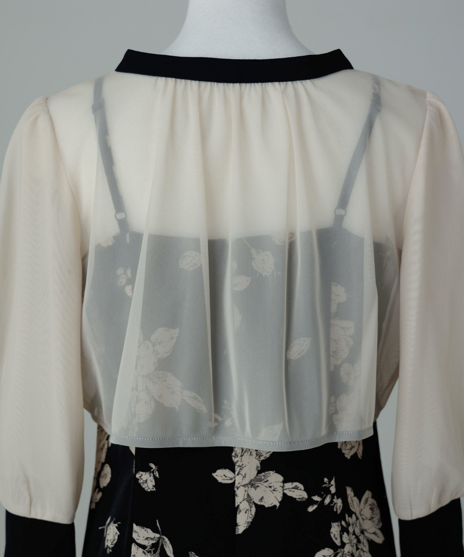 Zname チュールボレロフラワープリントキャミワンピレイヤードドレス