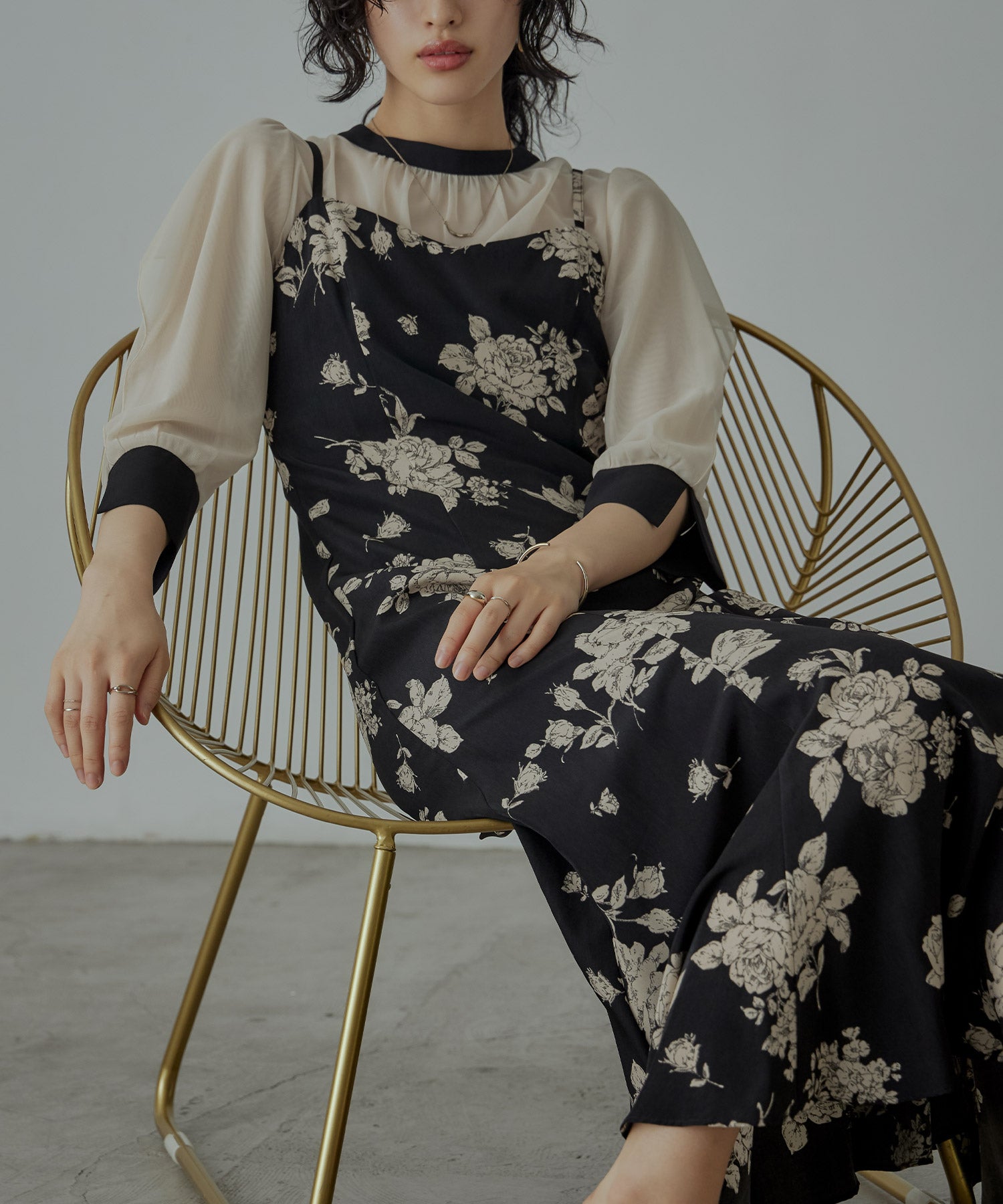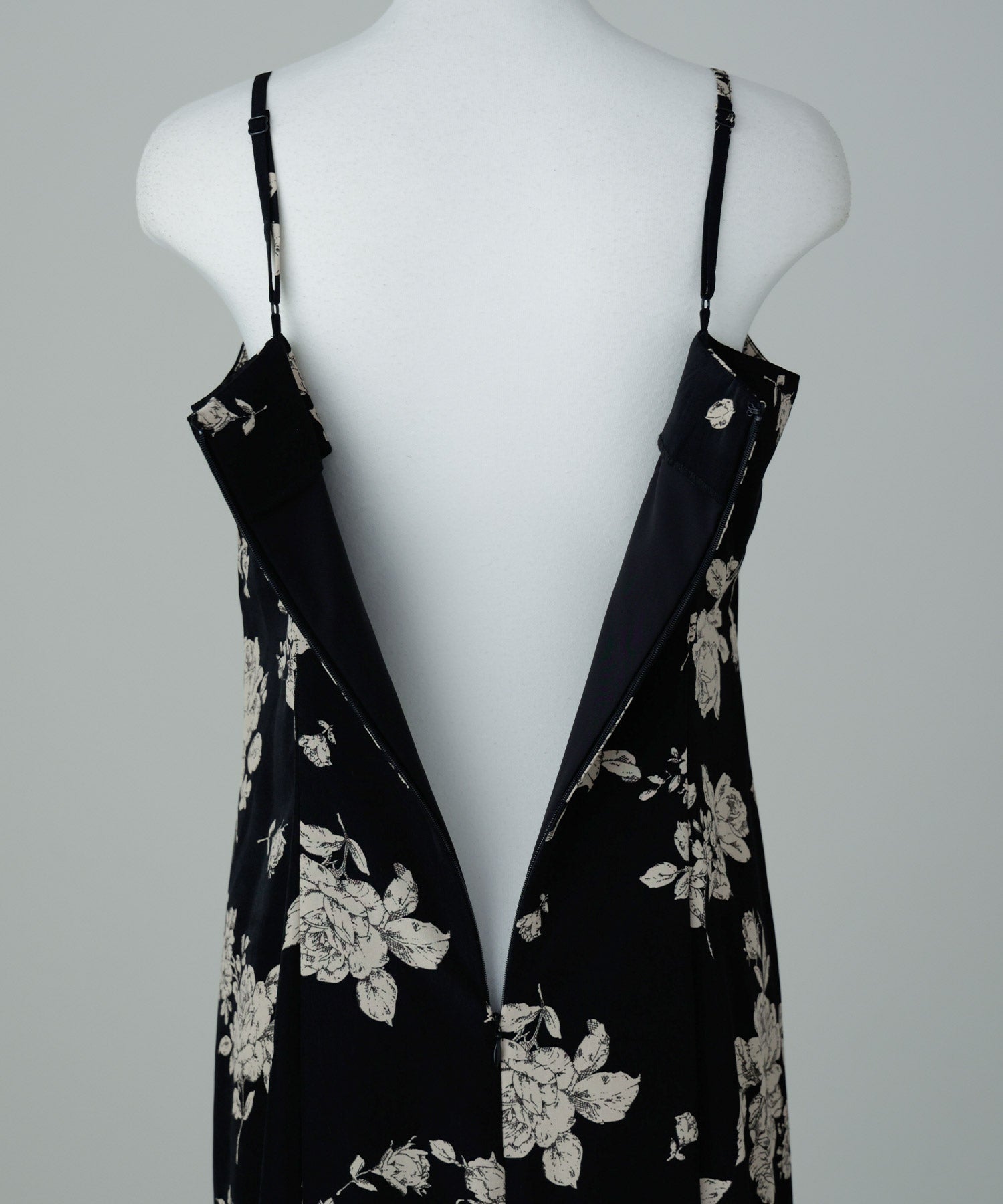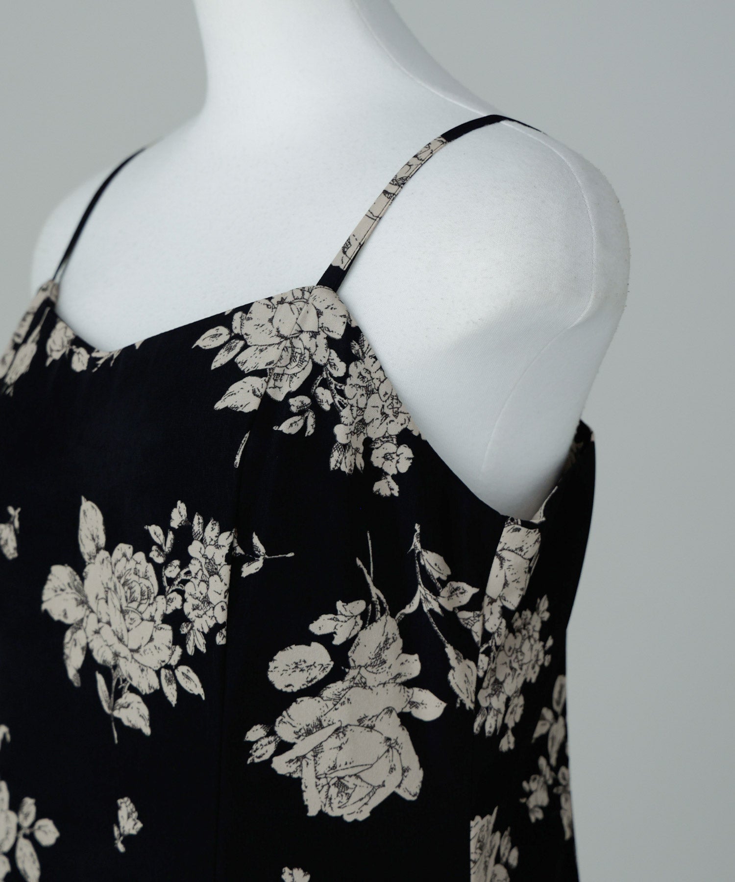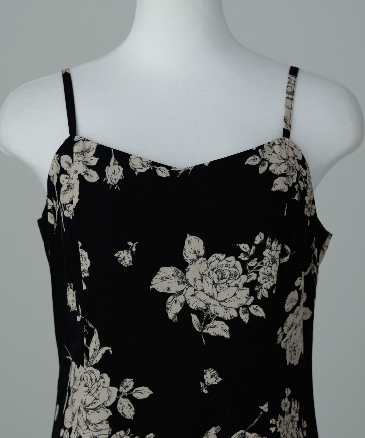 目を惹く大ぶりなフラワープリントキャミワンピースに