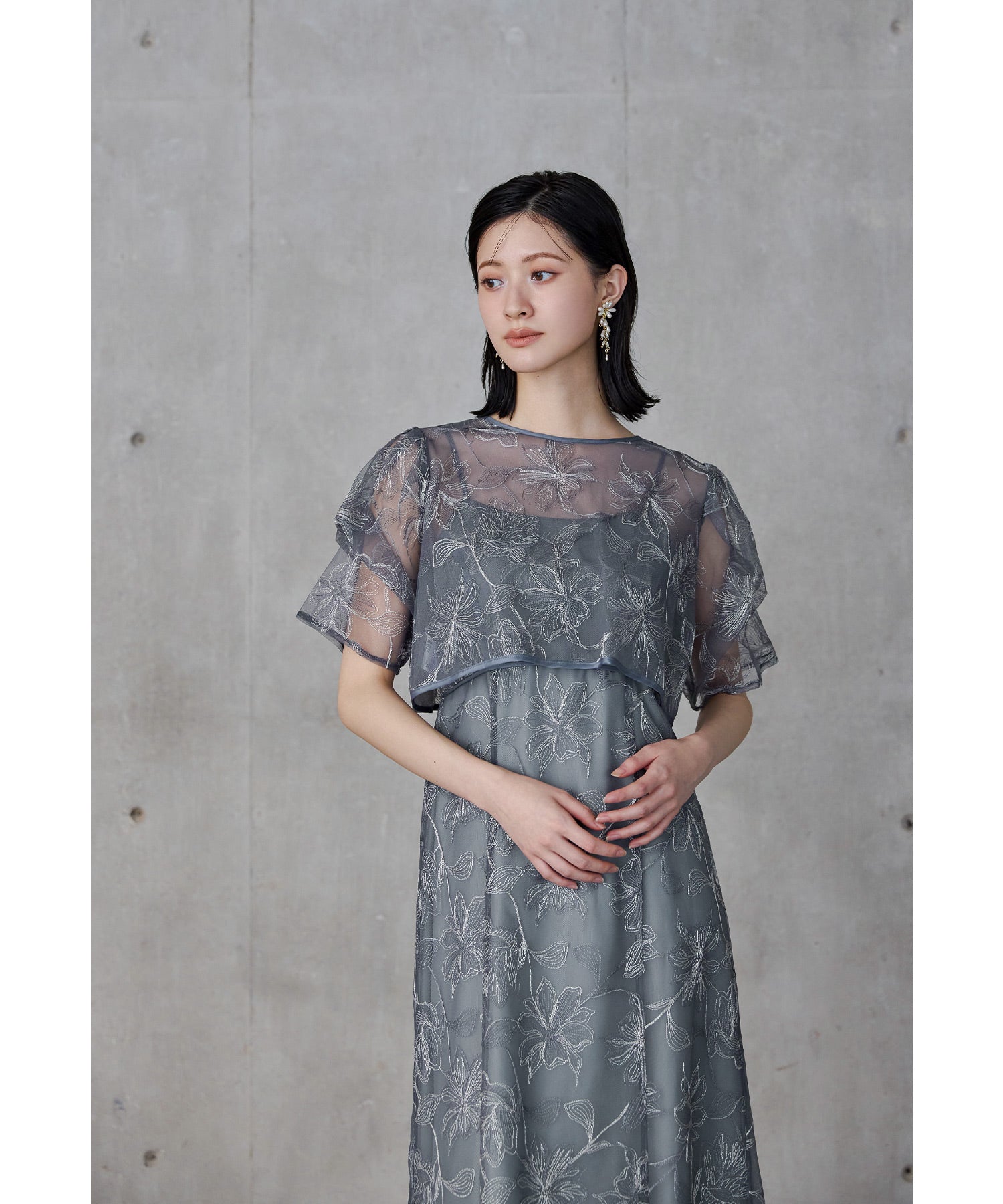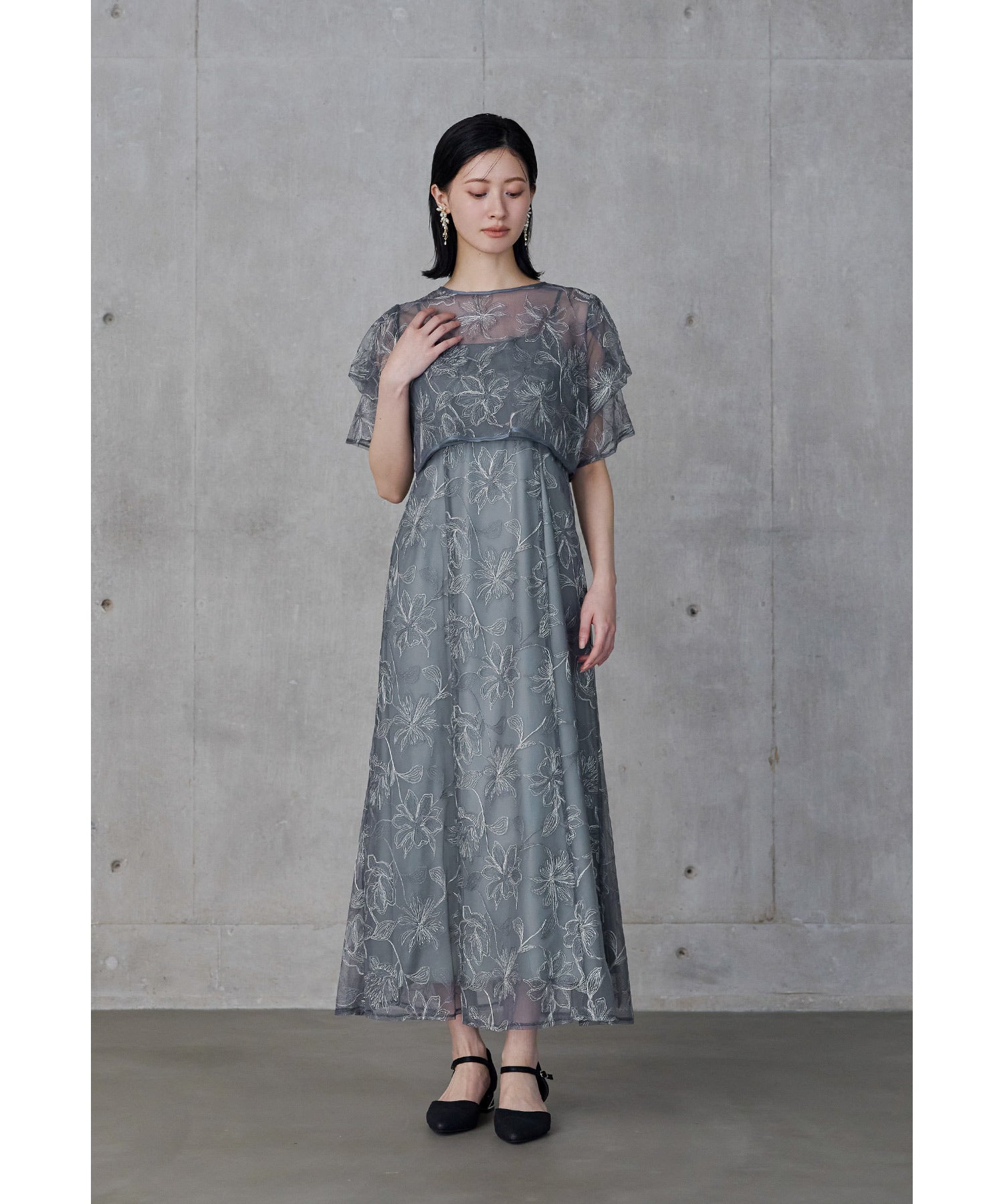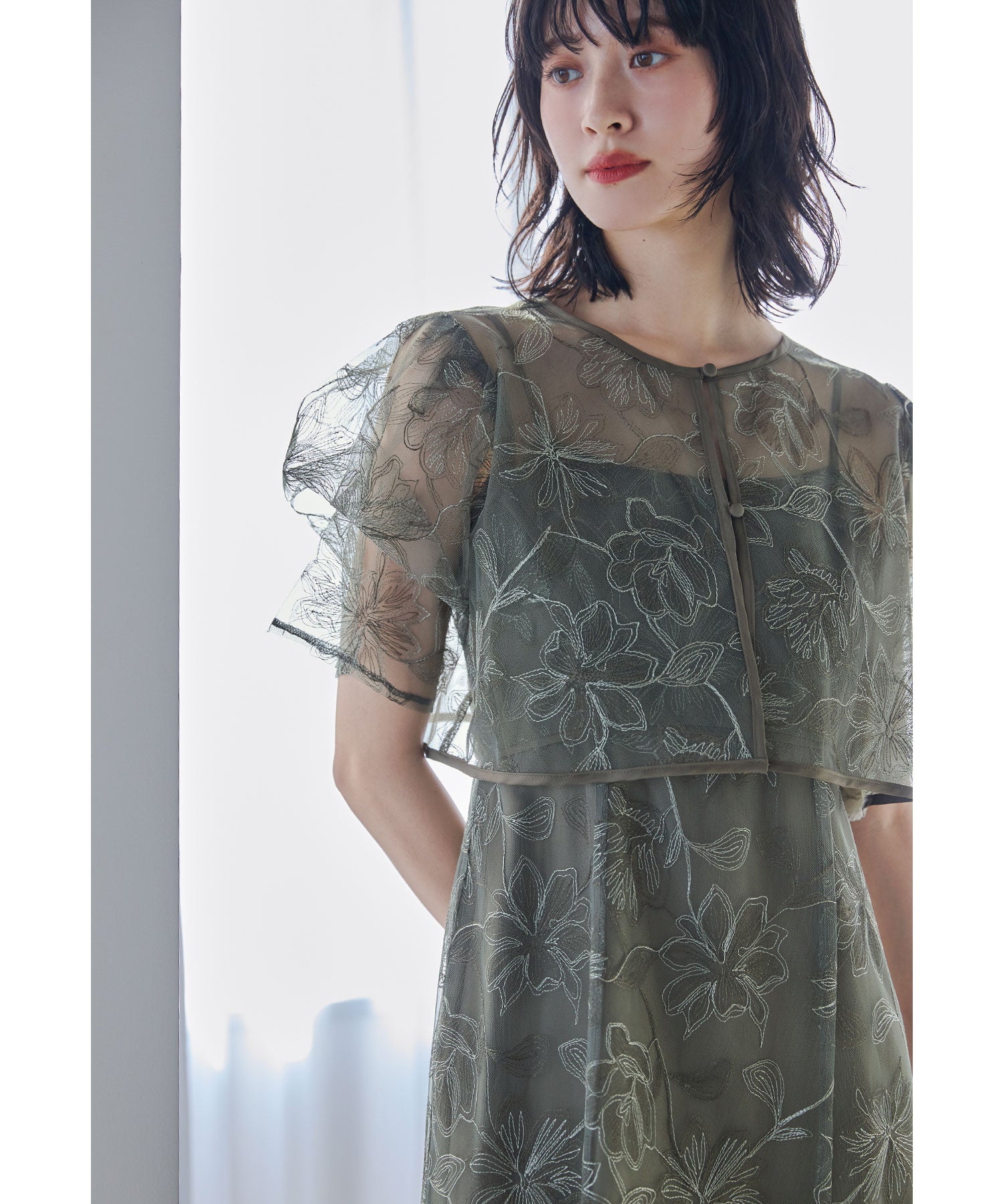 線画調のフラワー刺繍レースで繊細なのに甘すぎない、