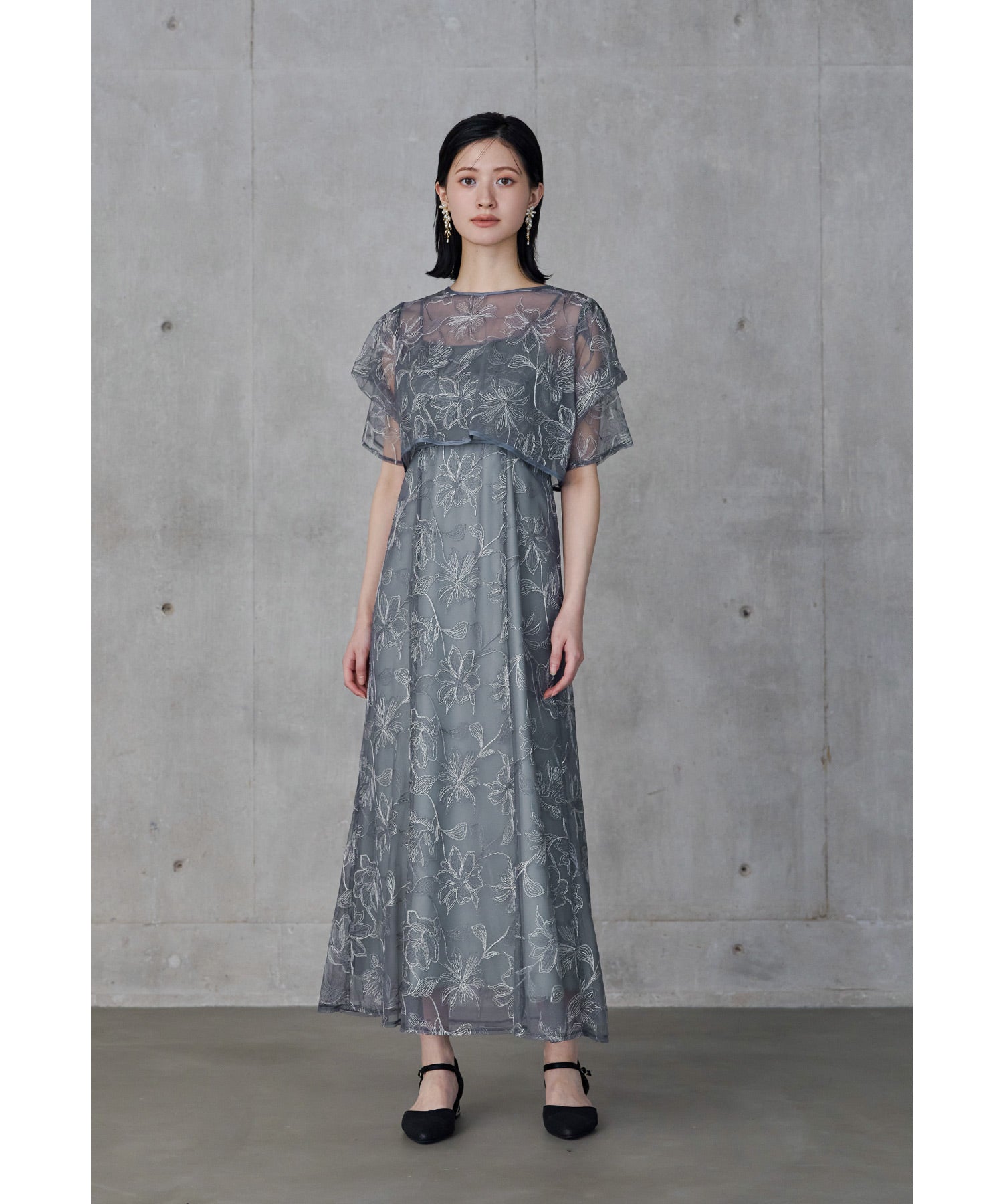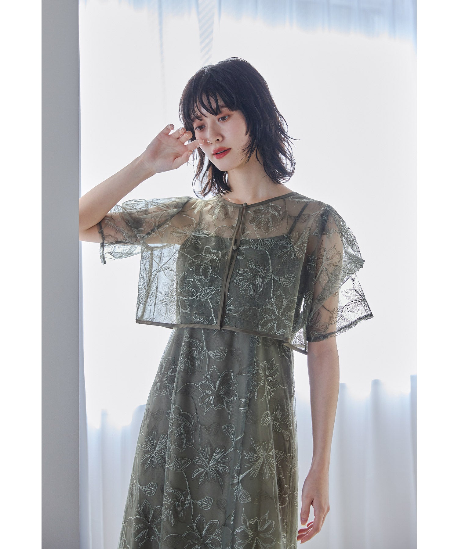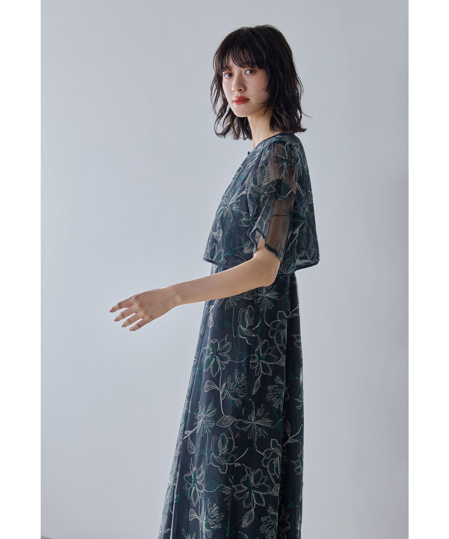 線画調のフラワー刺繍レースで繊細なのに甘すぎない、