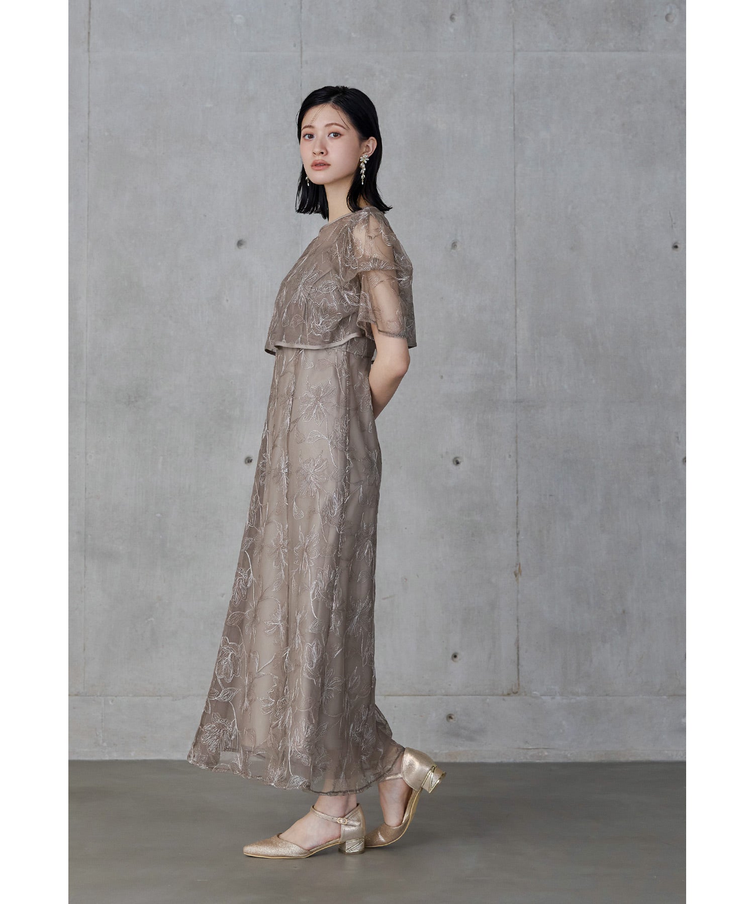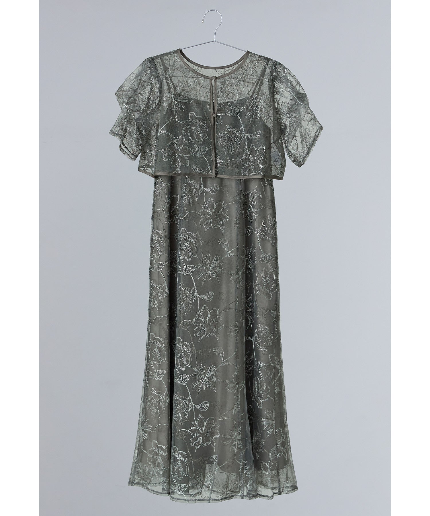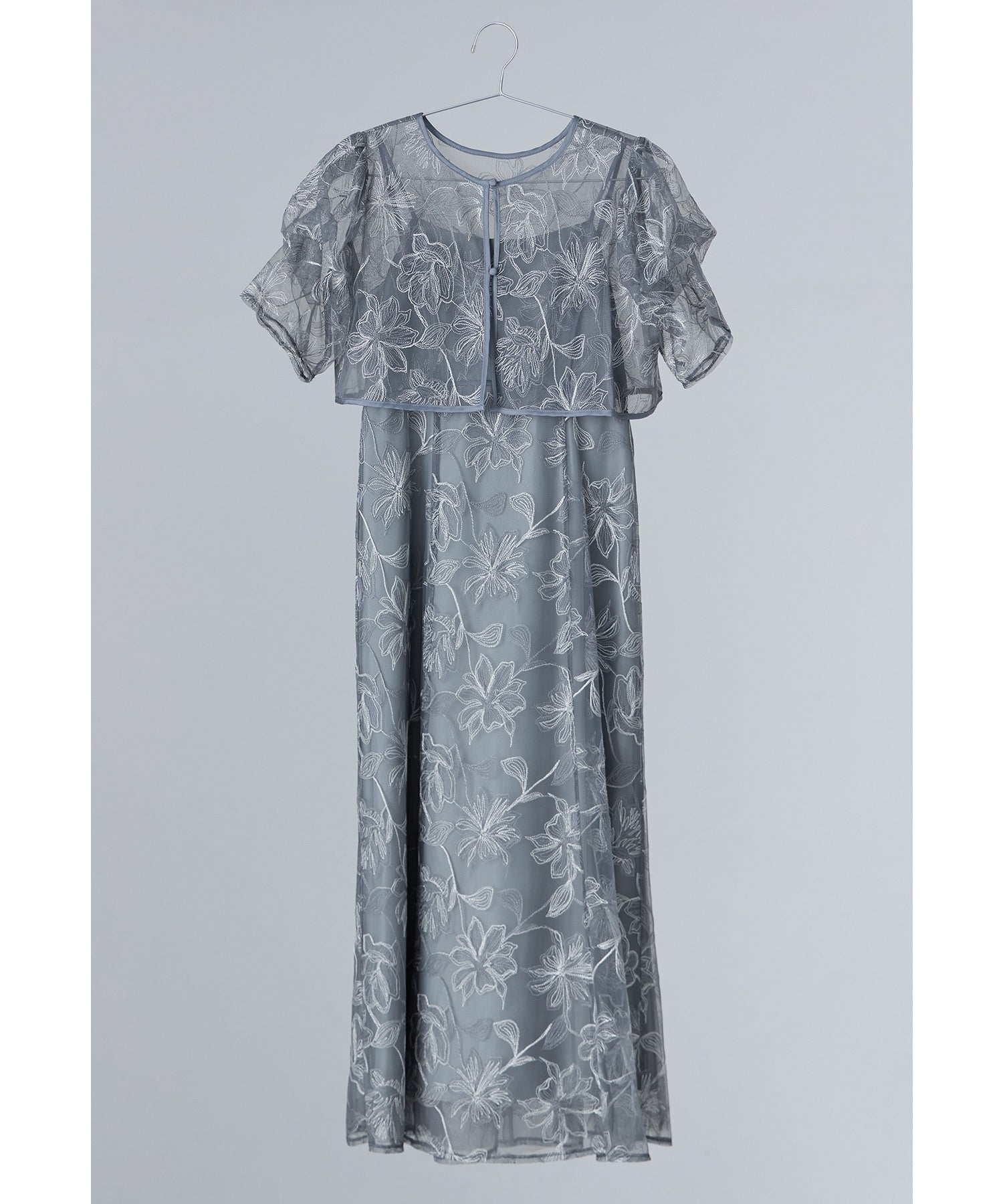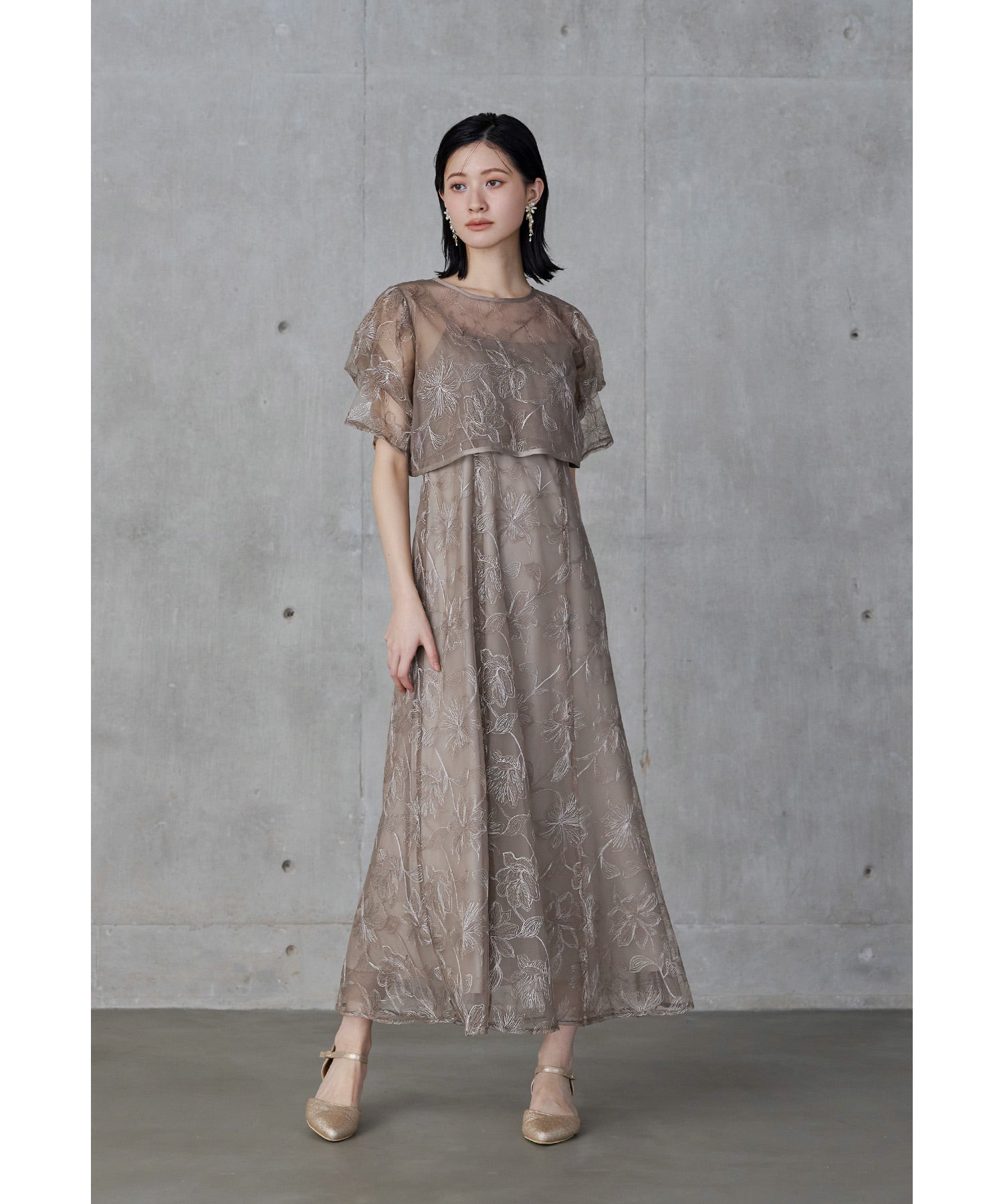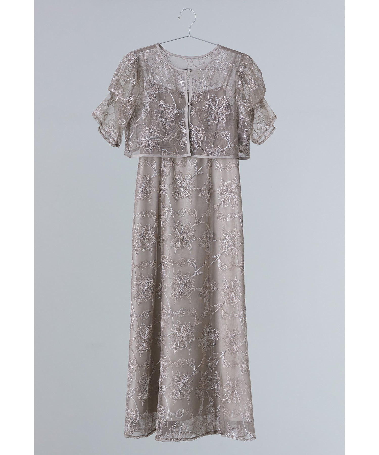 Rname タックスリーブエンブロイダリードレス パーティードレス 結婚式 レース 花柄 キャミワンピース ボレロ 2点セット 袖あり 半袖 ロング丈 2way お呼ばれ パーティー 二次会 披露宴 謝恩会 成人式 同窓会 入学式 卒業式 フォーマル オケージョンドレス 春 夏 秋 冬 ベージュ