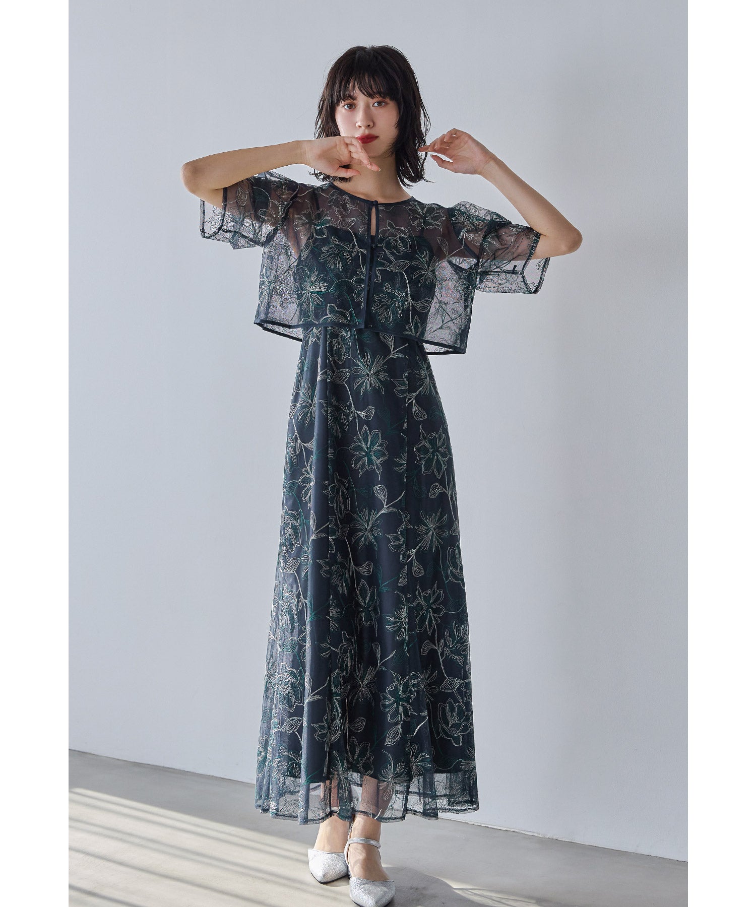 キャミワンピースとボレロを組み合わせた2ピースオケージョンドレス。