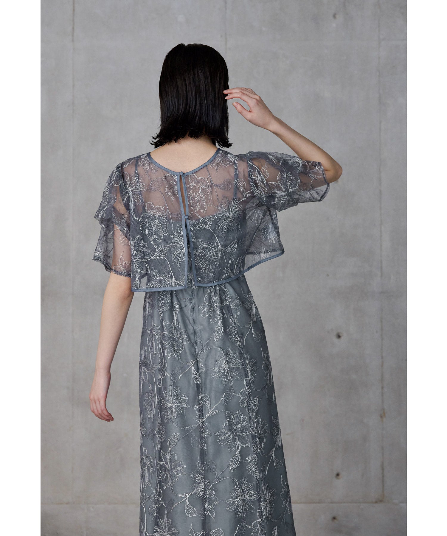立体感のあるタックスリーブが特徴的なボレロは前後で着回し可能。