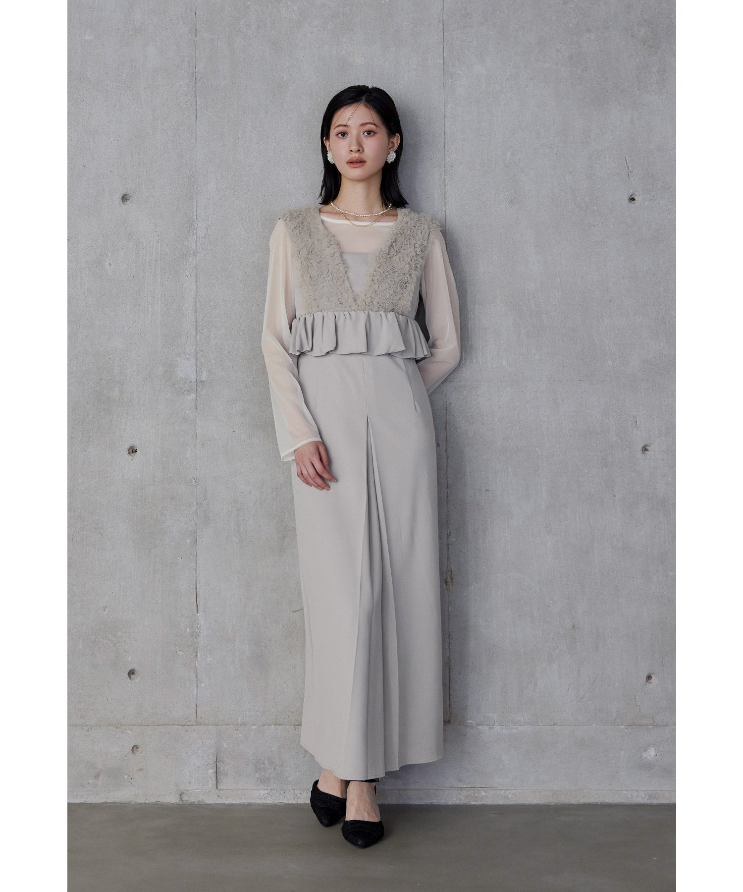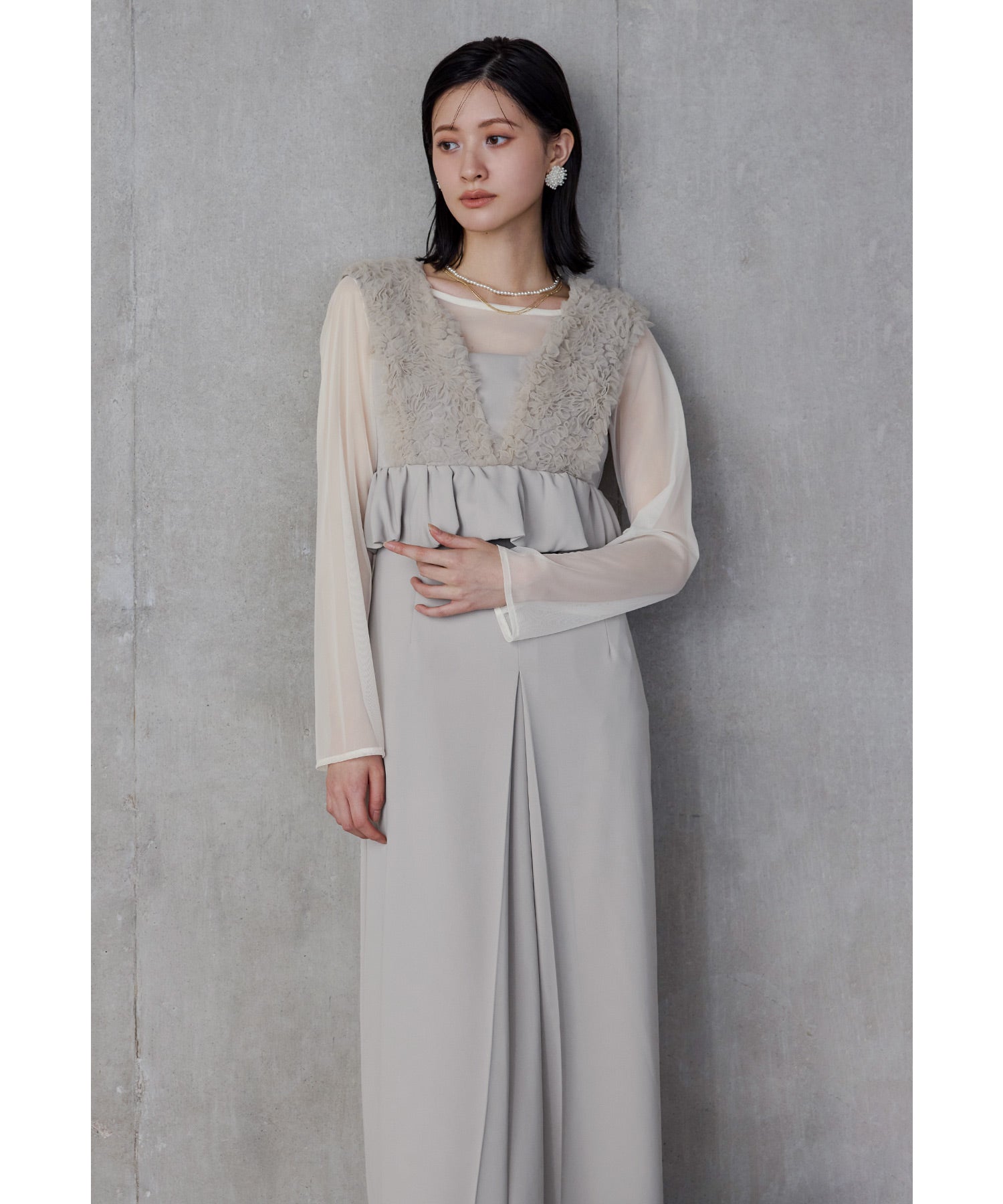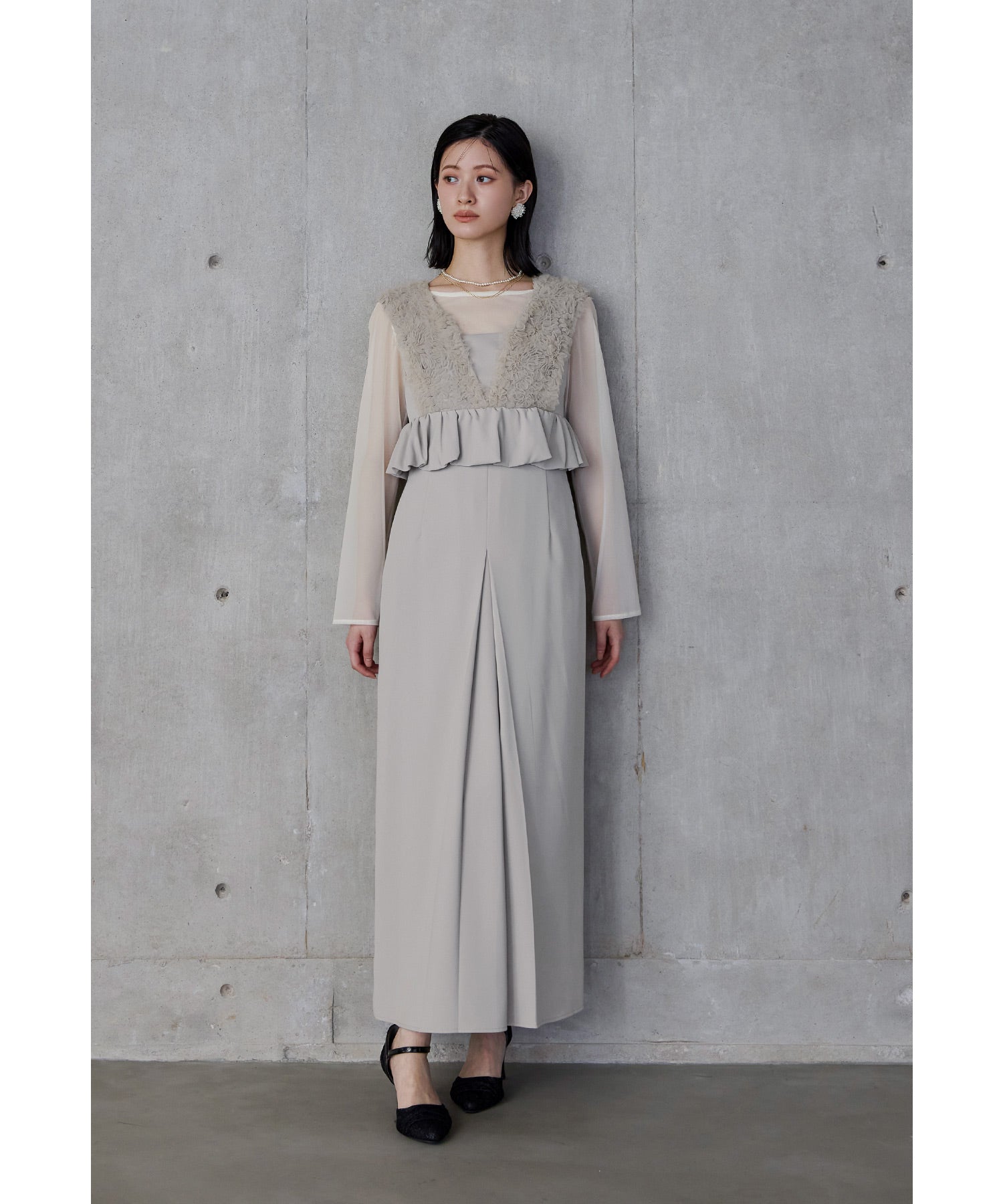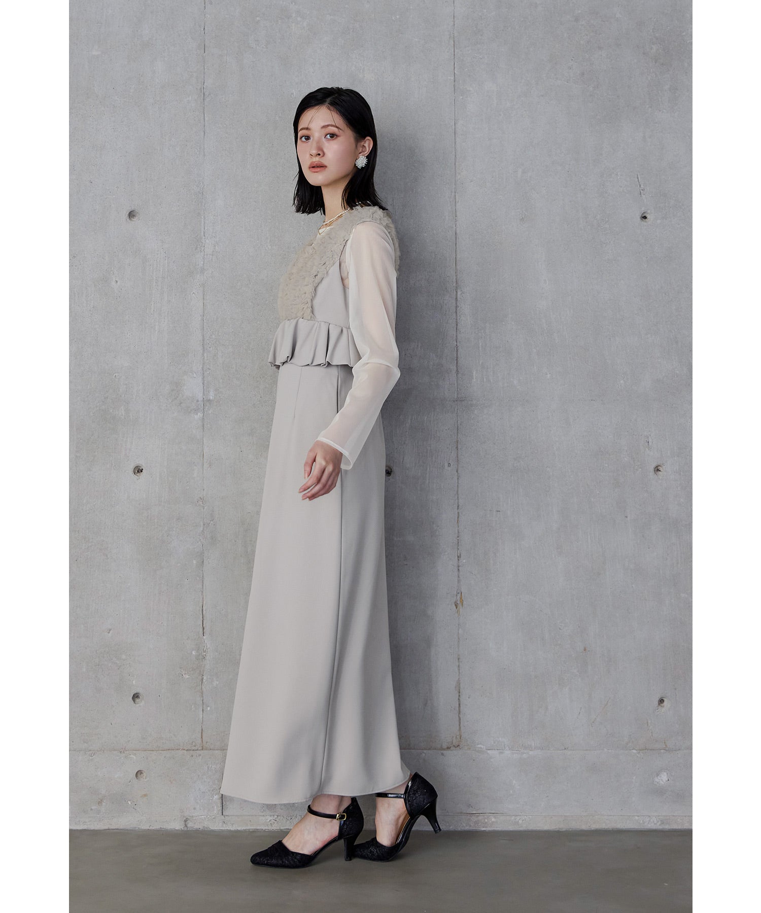 ペプラムワンピースとシアーインナーの2ピースセットのオケージョンドレス。