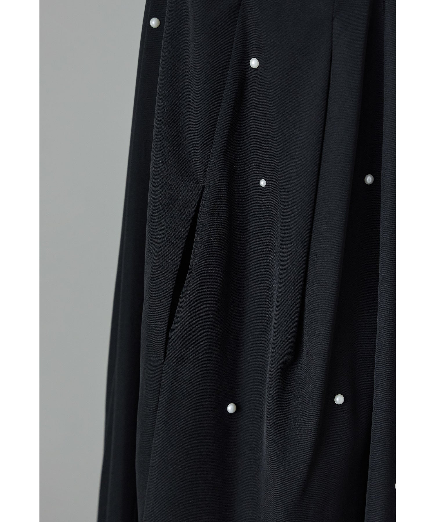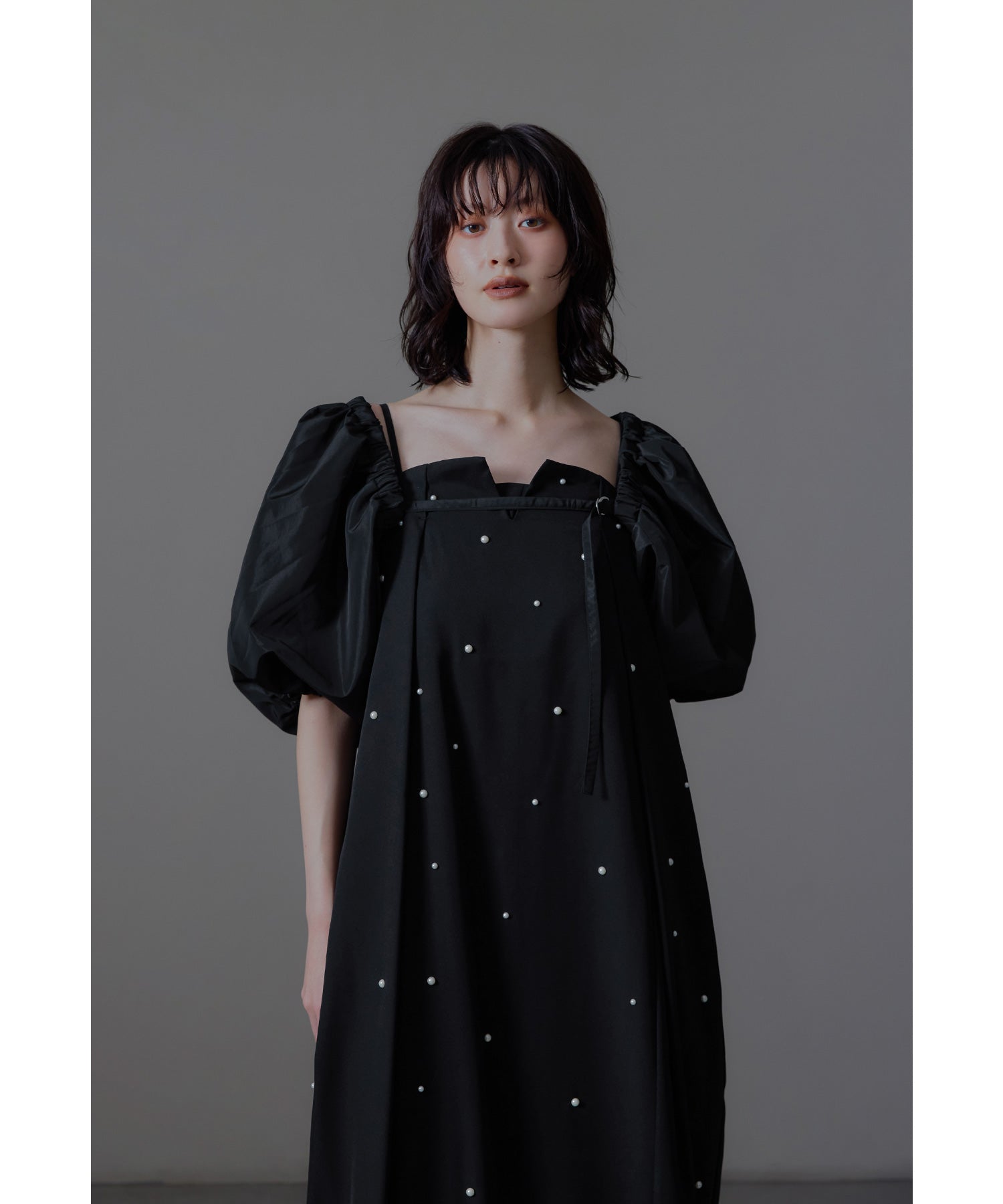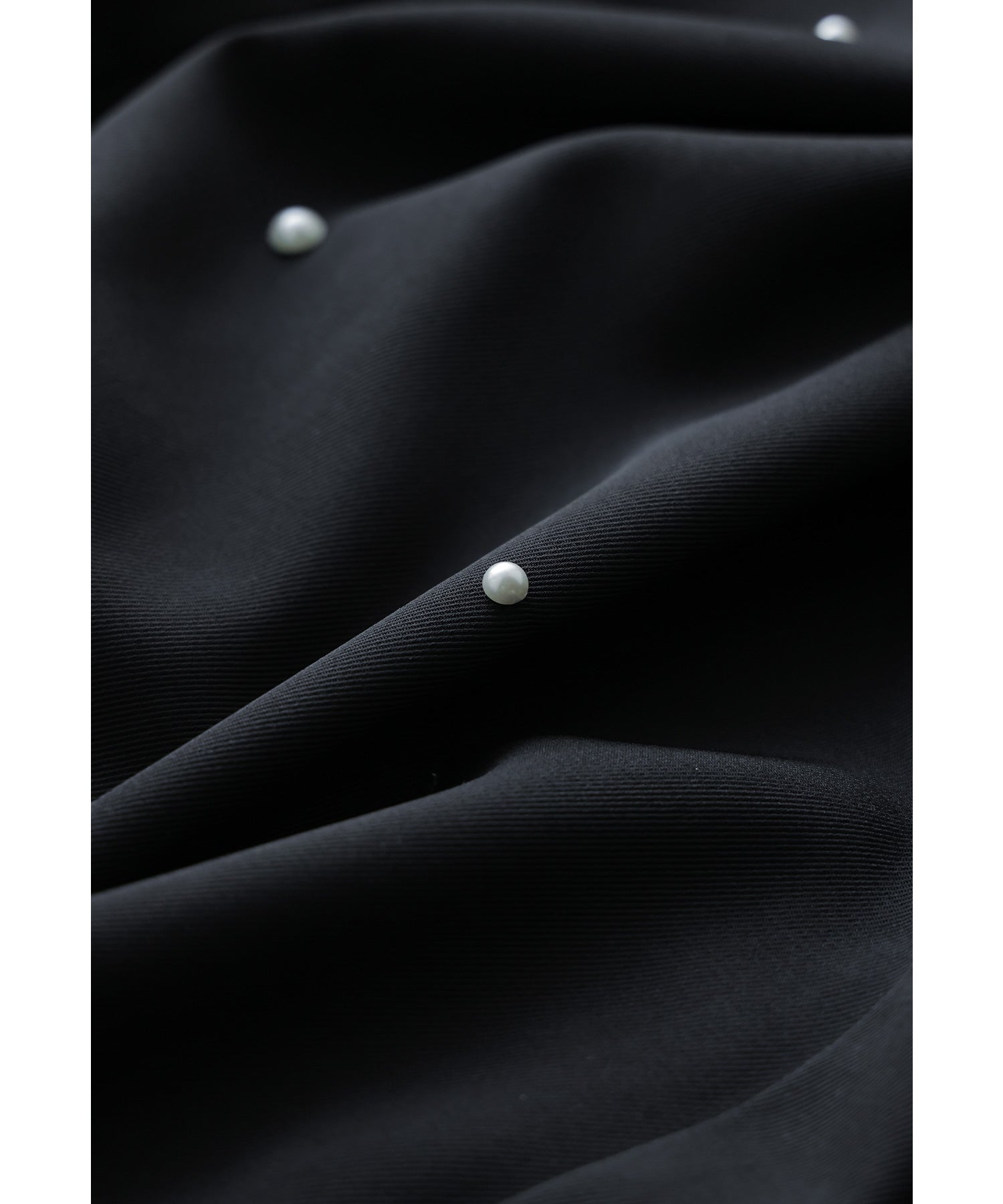 程よく遊び心を添えたキーネックとランダムにあしらったパールがアクセントに。