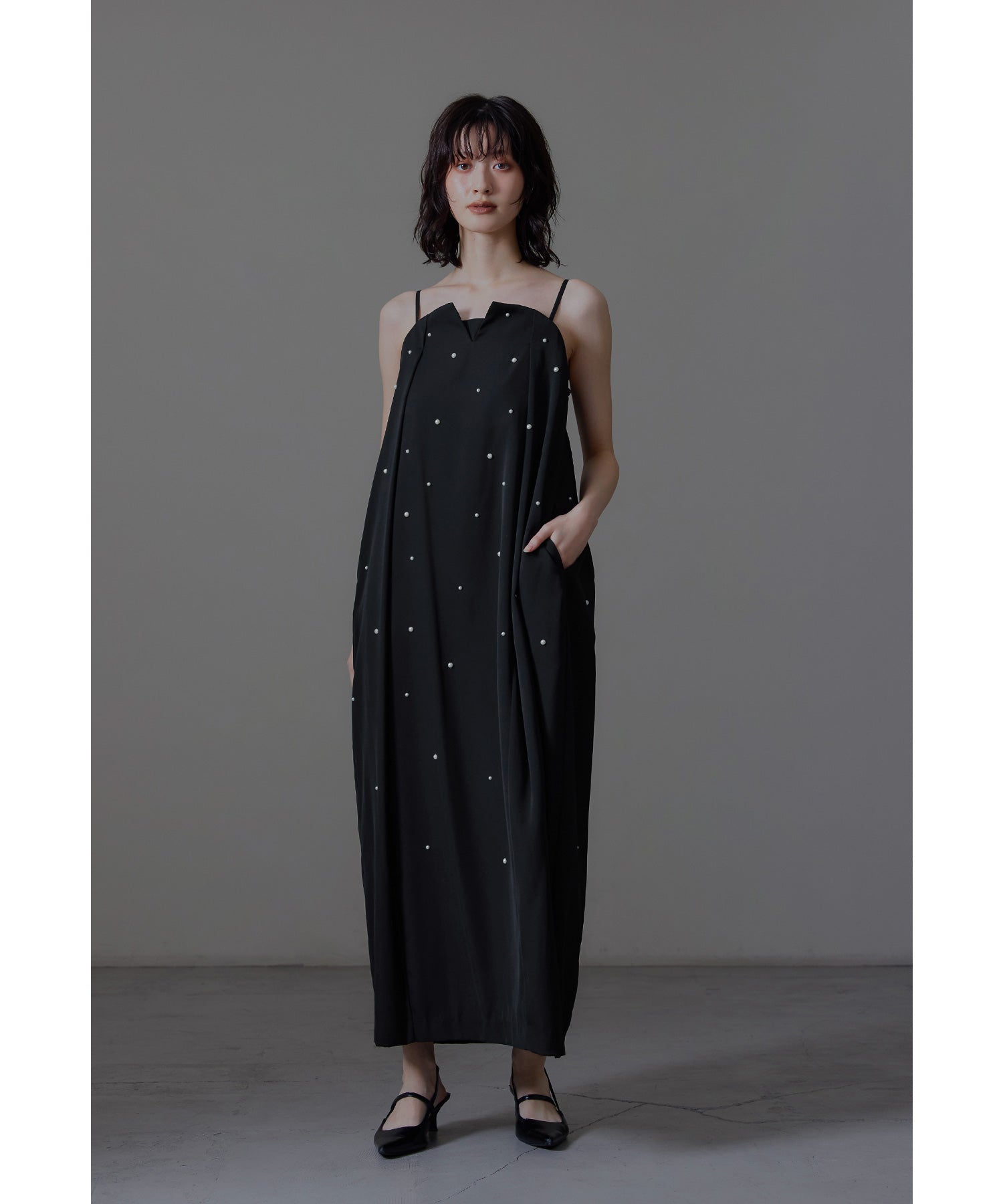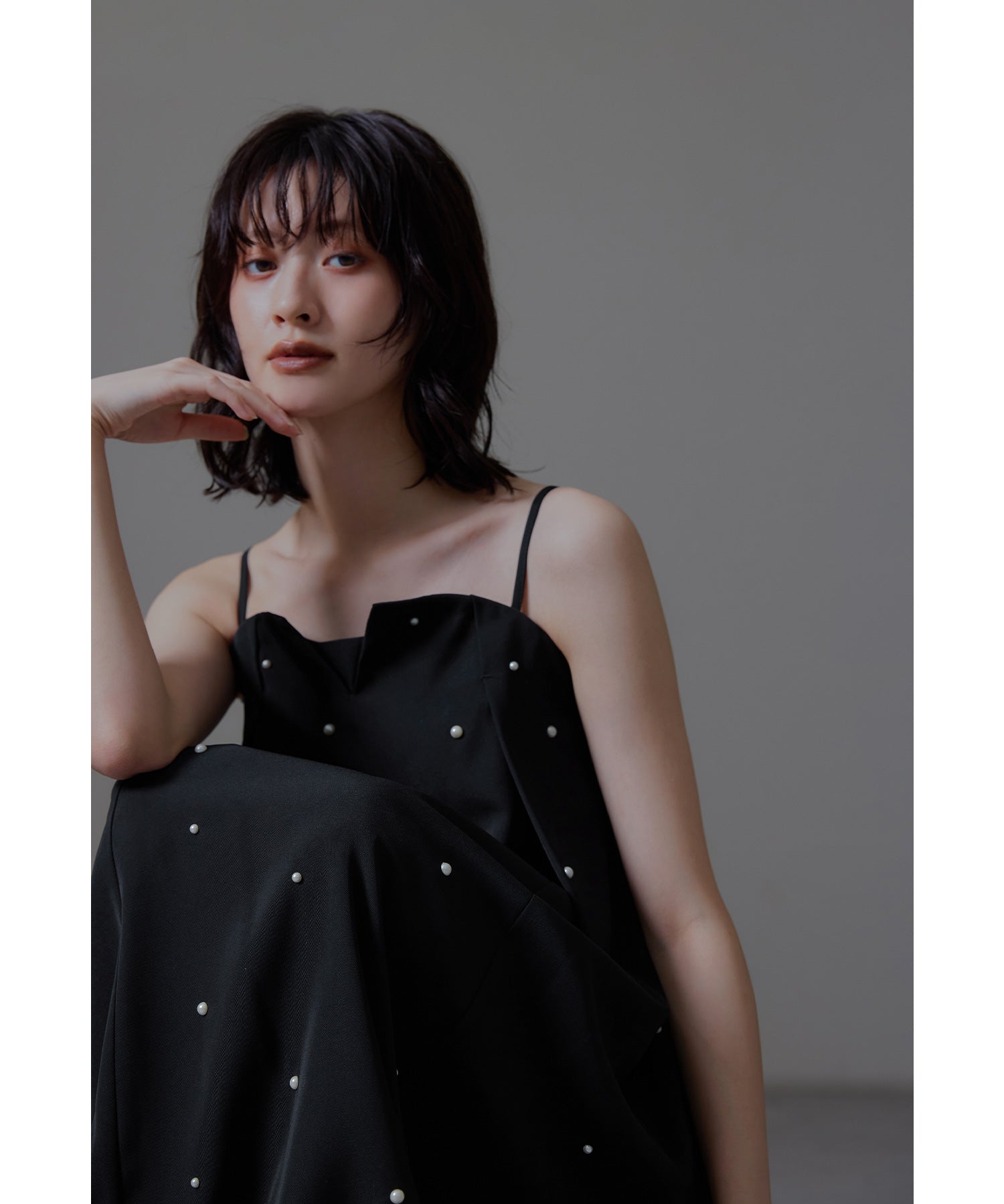 Rname オーバルフォルムパールドレス パーティードレス 結婚式 キャミワンピース シンプル ノースリーブ マタニティ 妊婦 体型カバー お呼ばれ パーティー 二次会 披露宴 謝恩会 成人式 同窓会 卒業式 フォーマル オケージョンドレス デイリー 春 夏 秋 冬 黒 ブラック