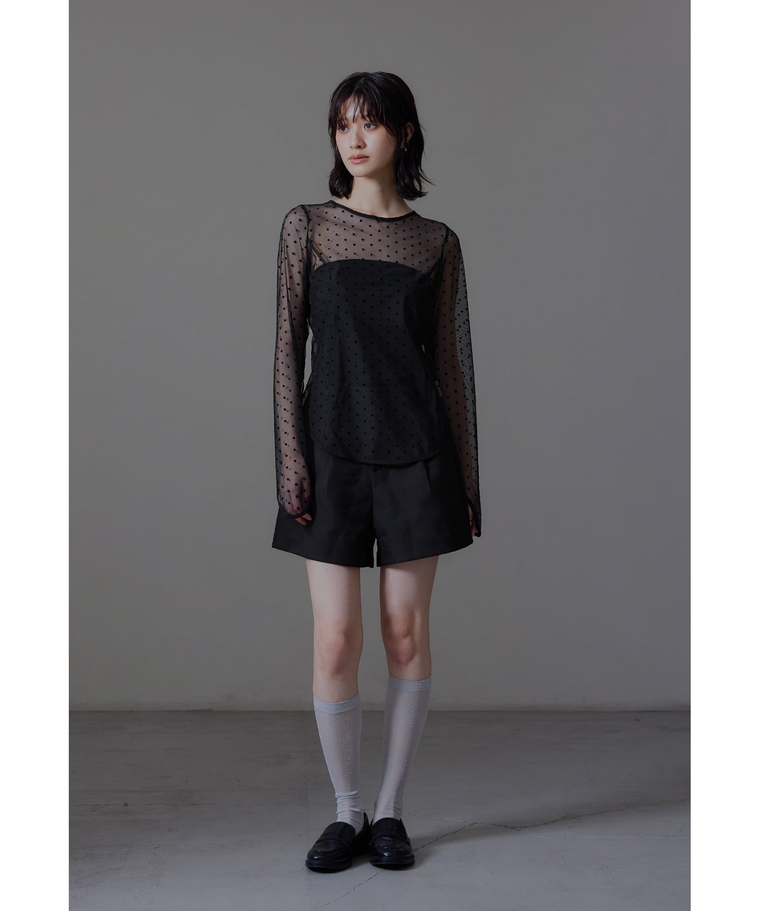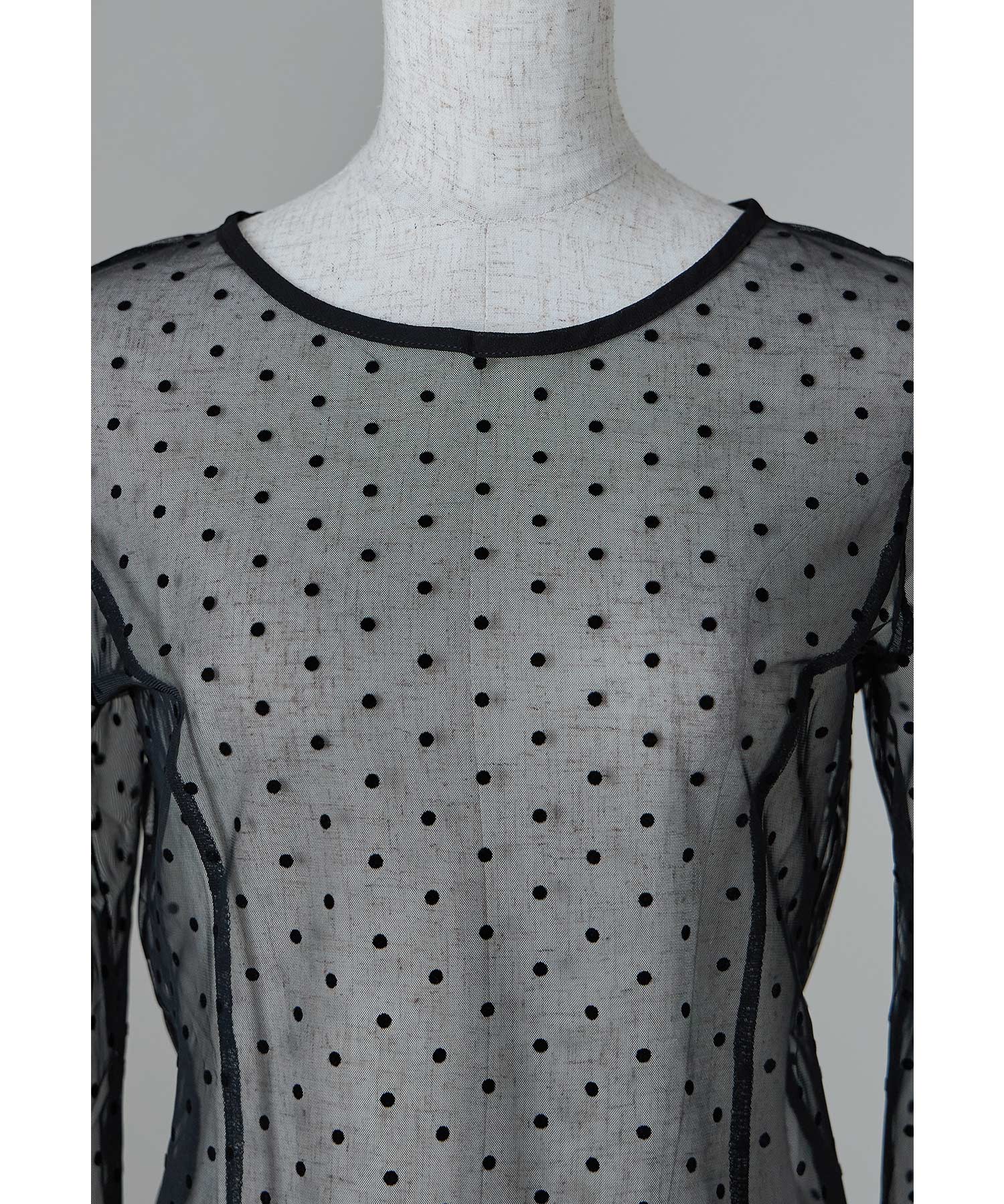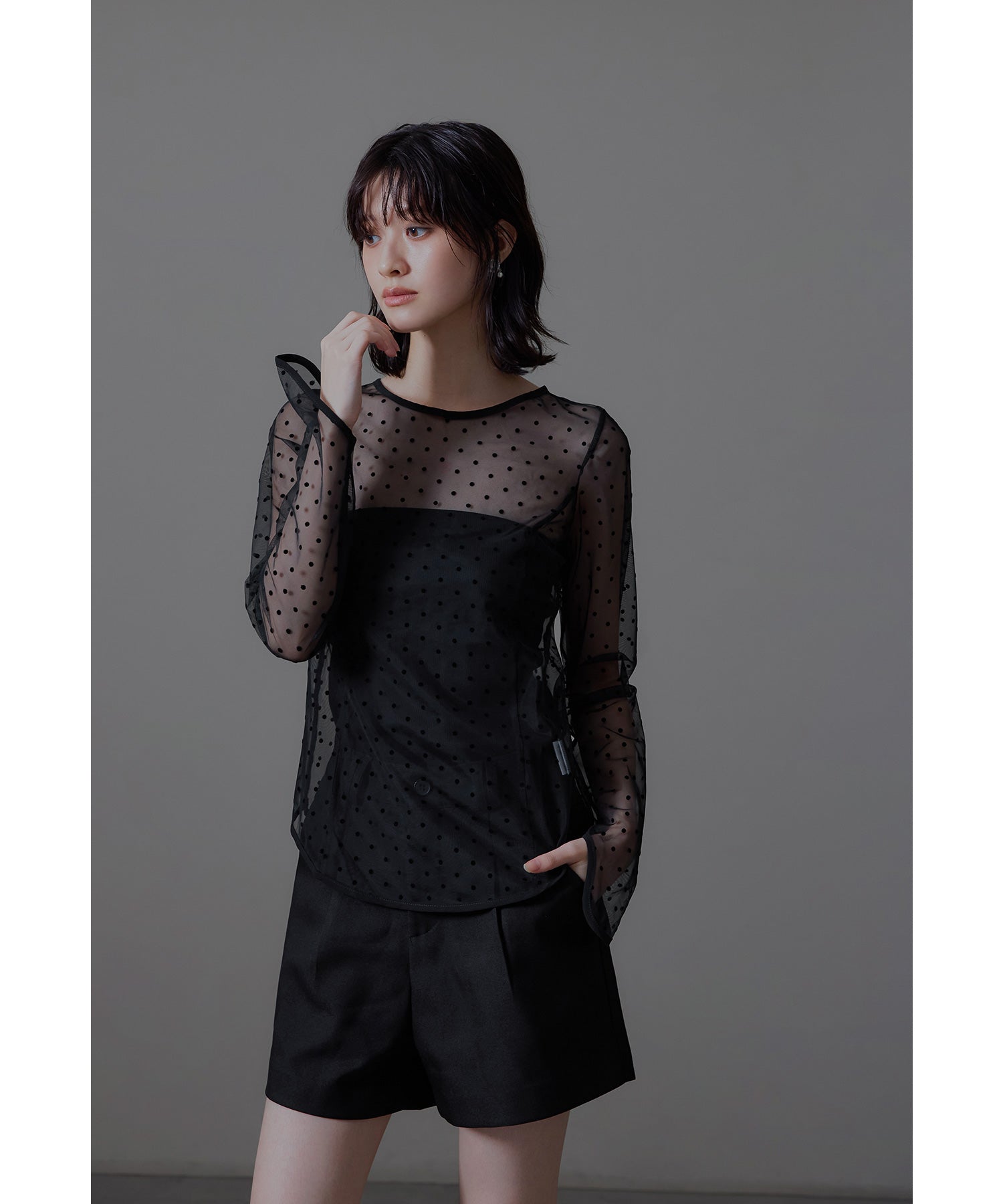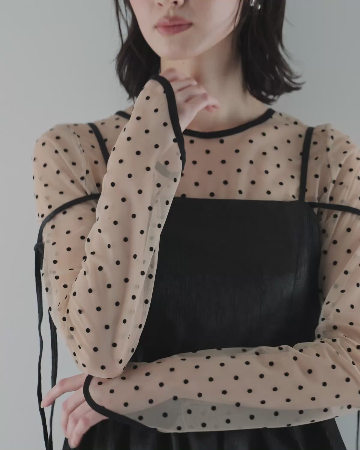 シアーチュールにふんわりと浮かぶフロッキードットをあしらったトップス。