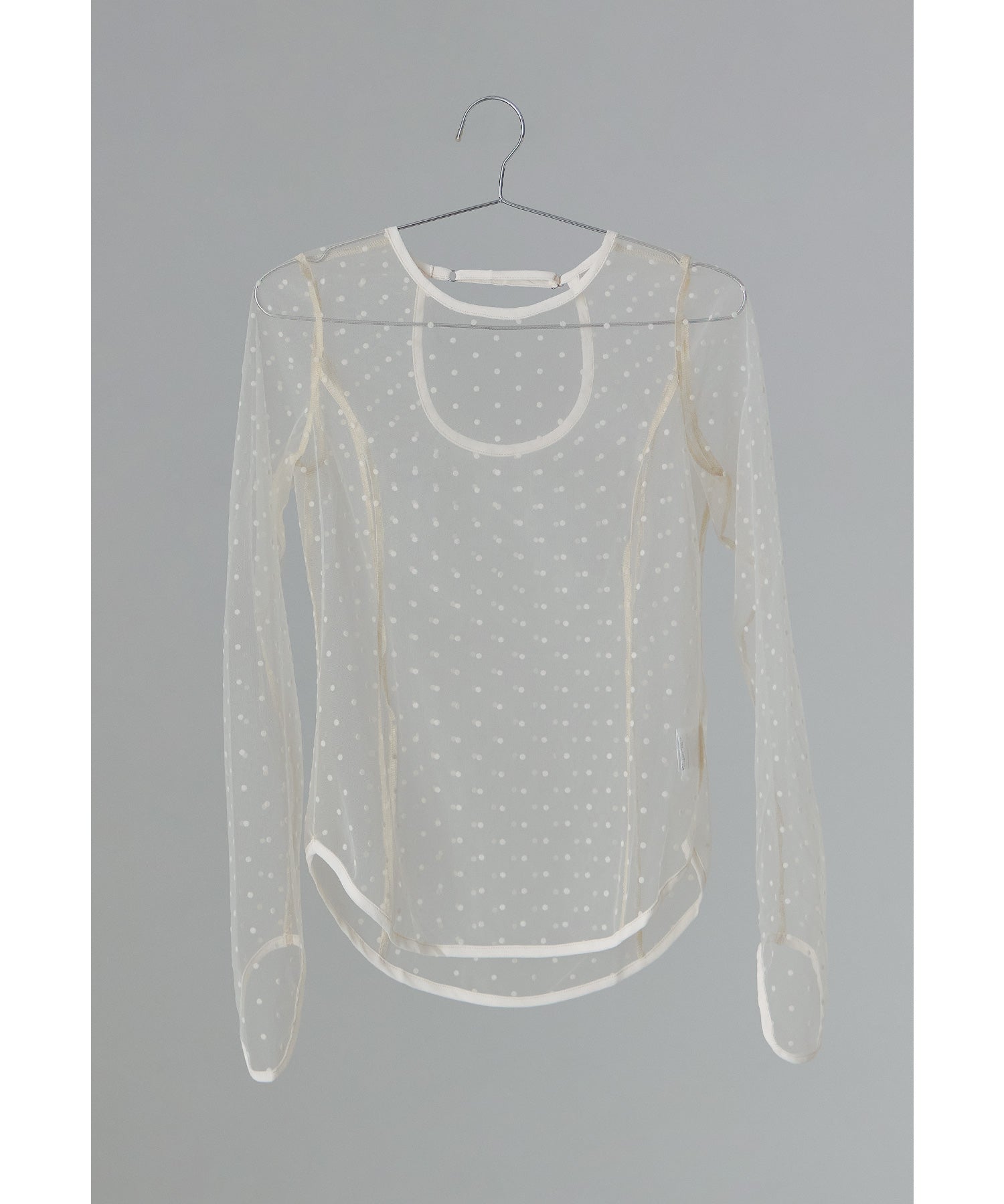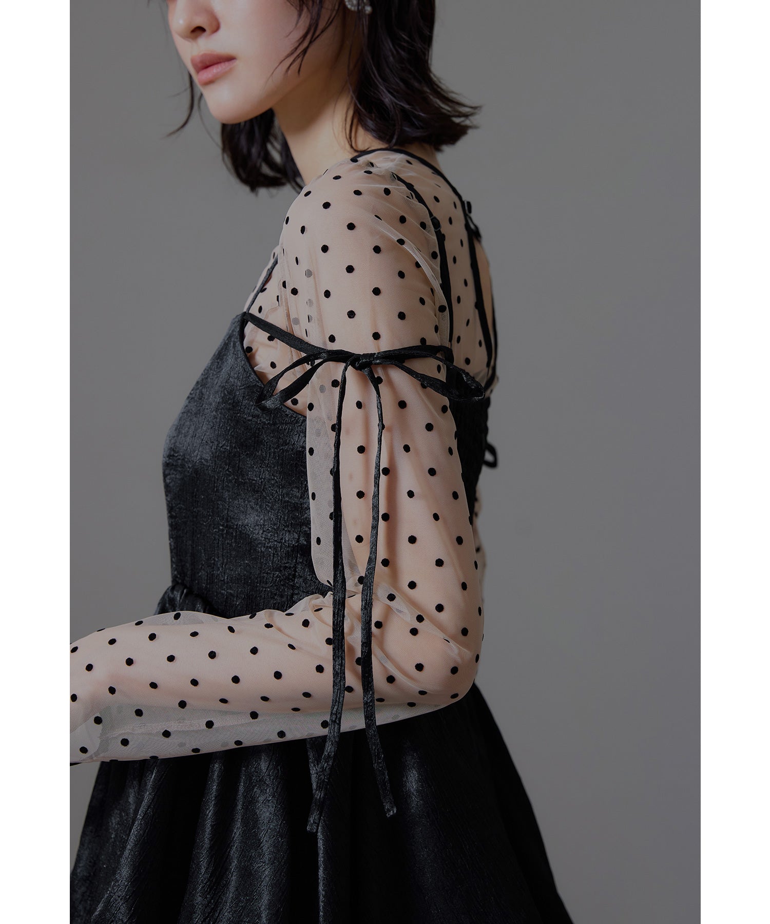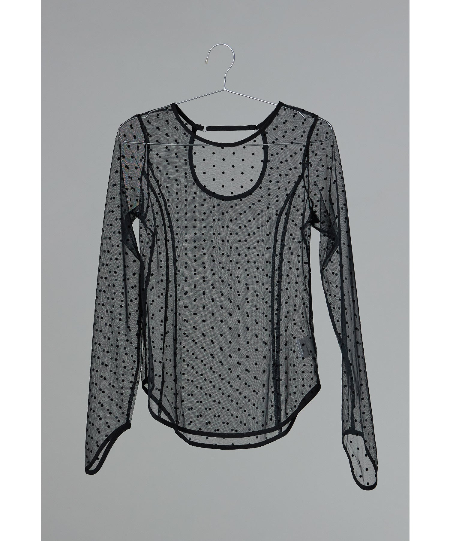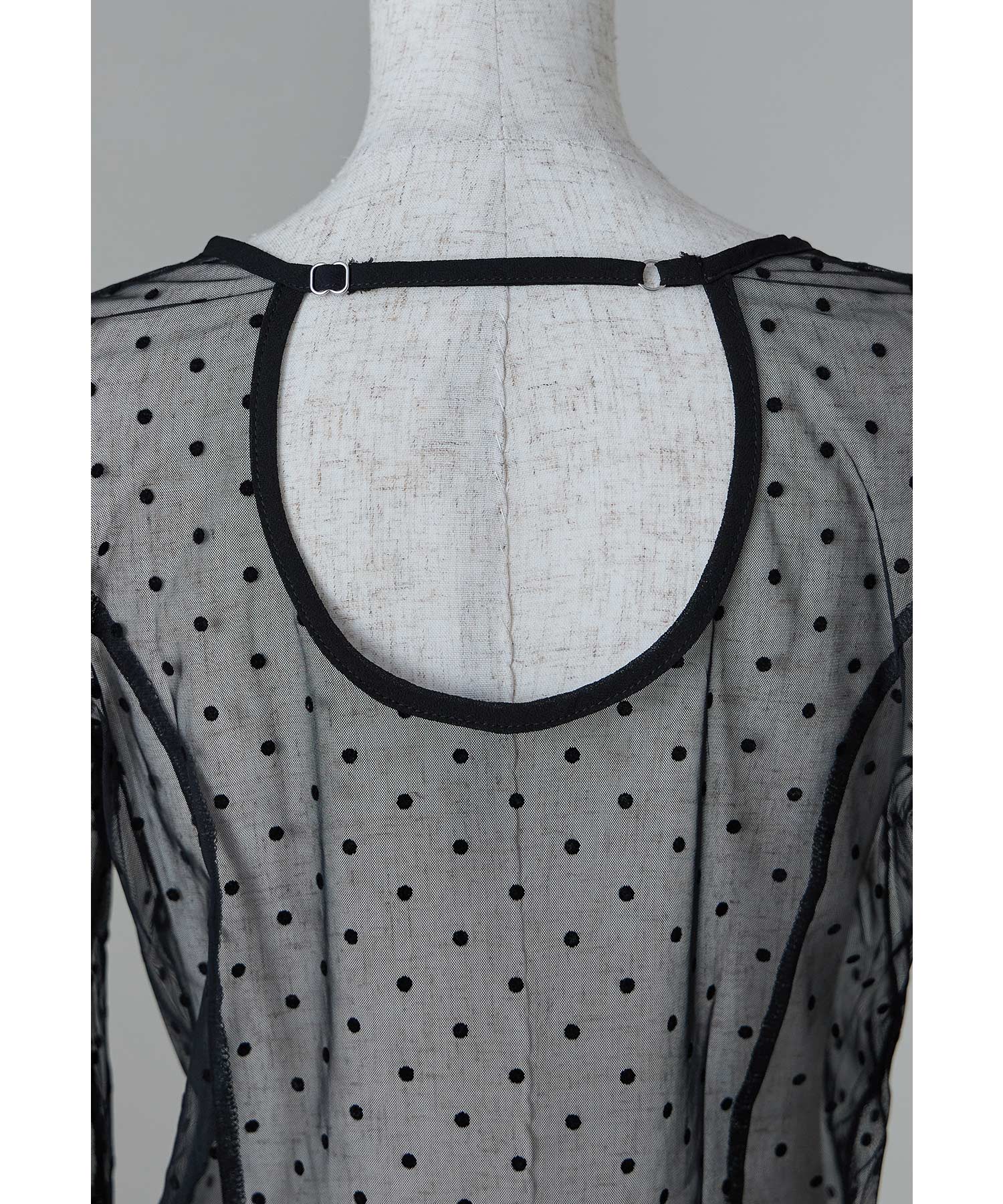 シアーチュールにふんわりと浮かぶフロッキードットをあしらったトップス。