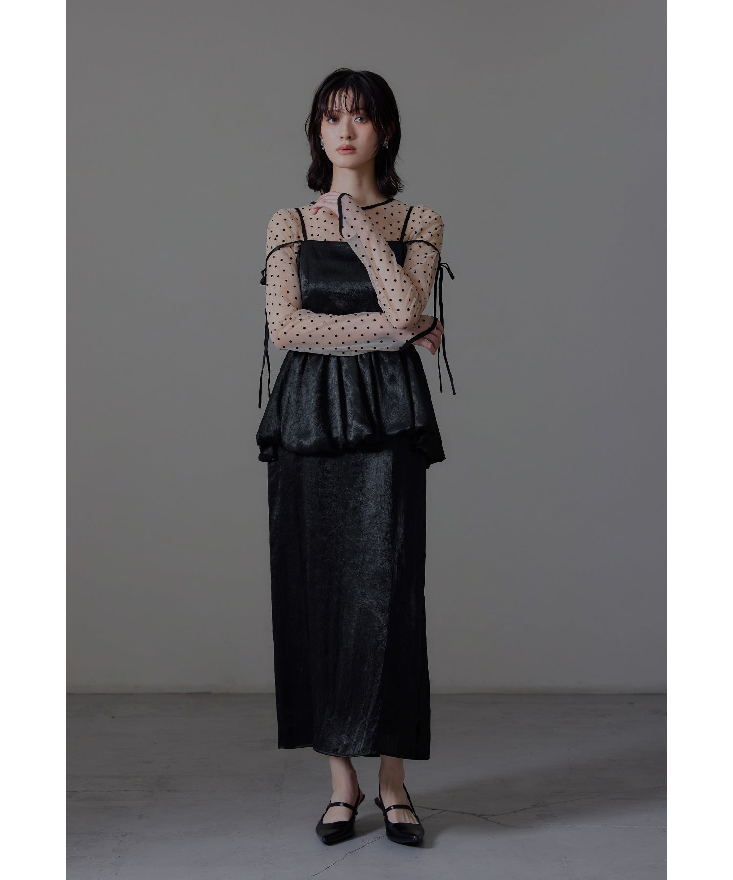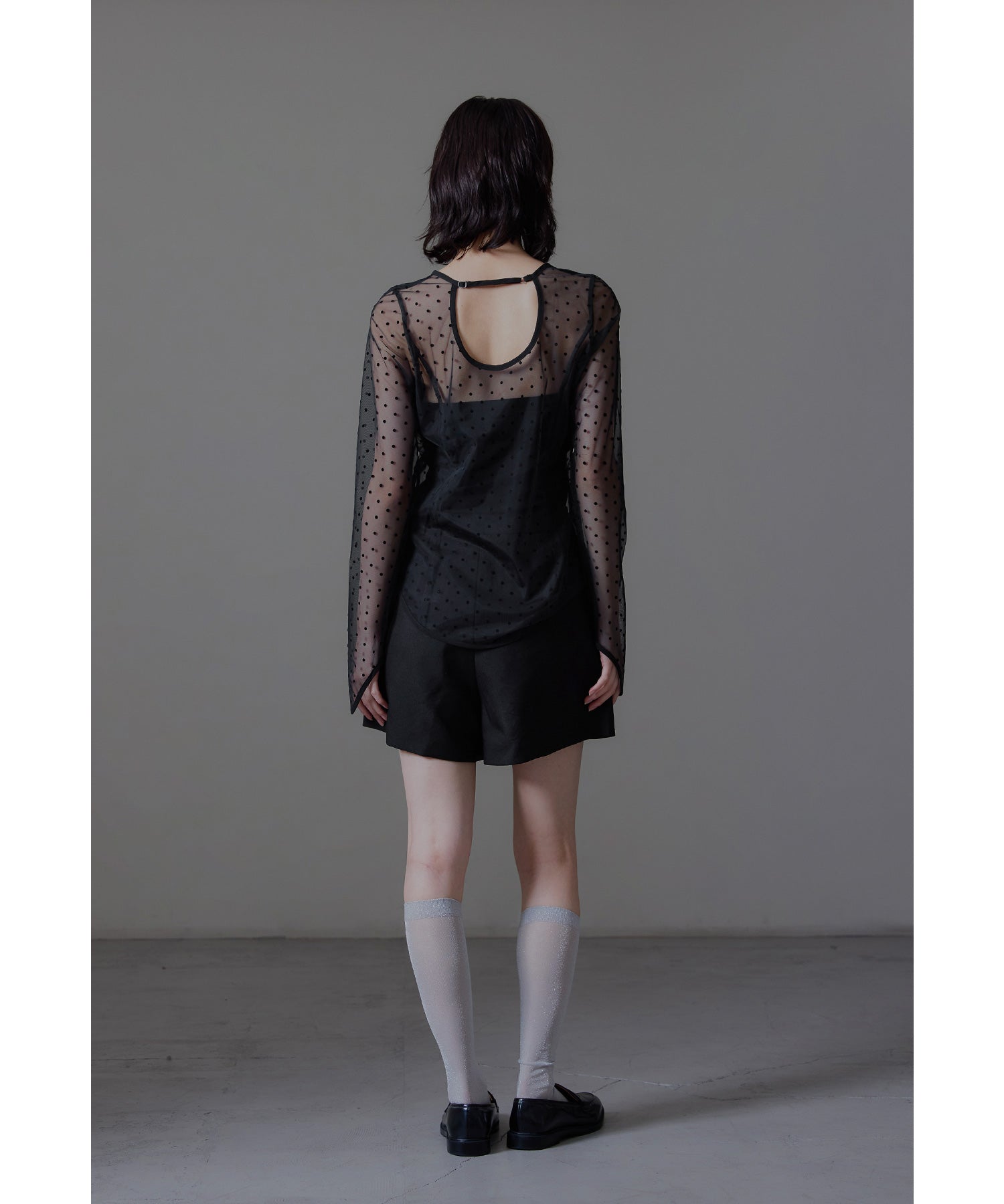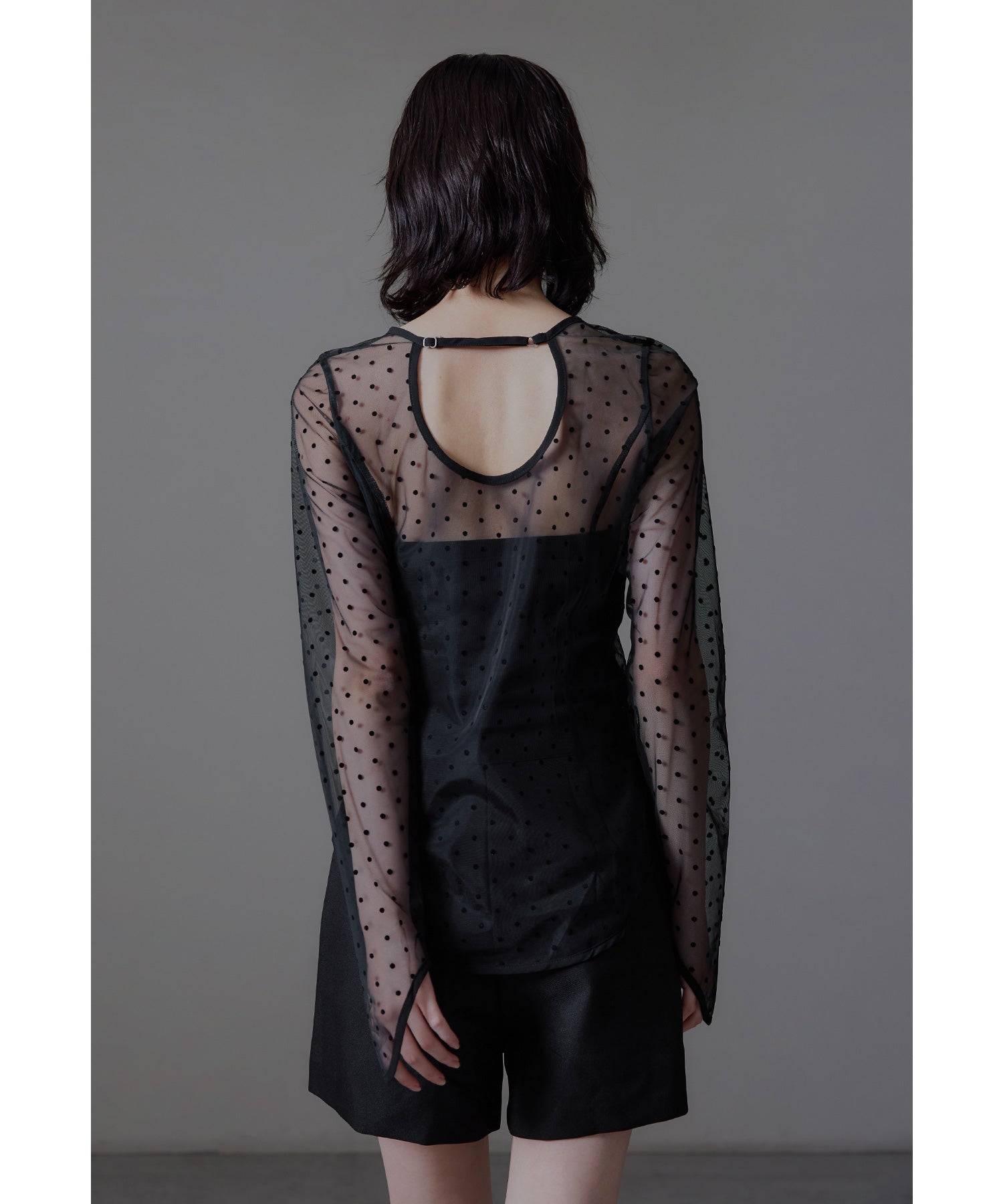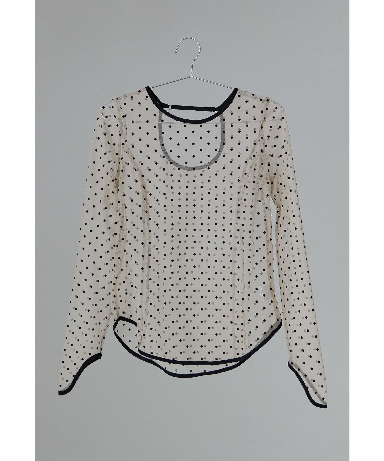 シアーチュールにふんわりと浮かぶフロッキードットをあしらったトップス。