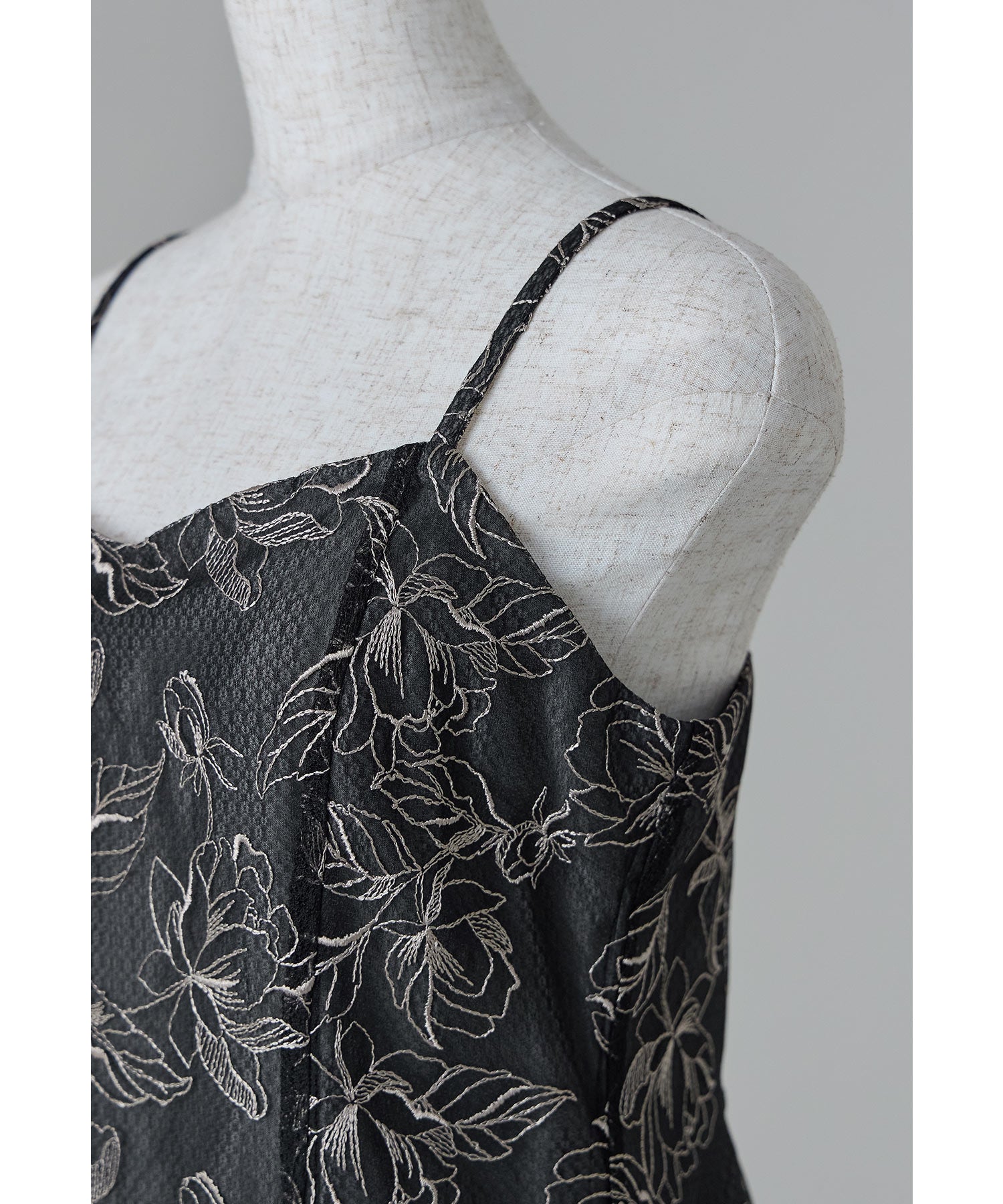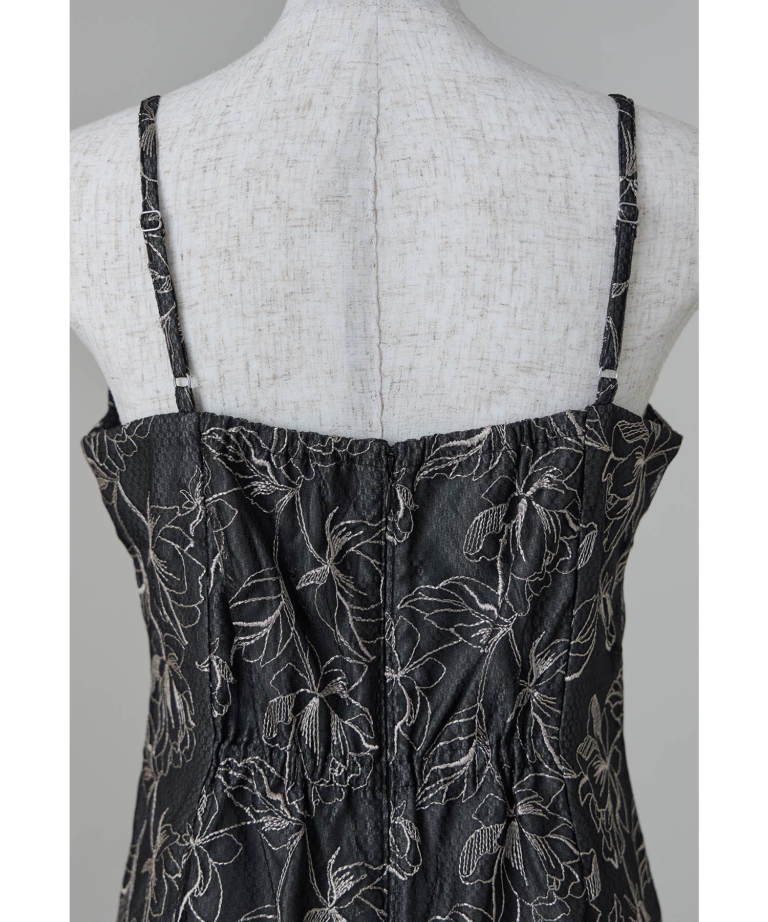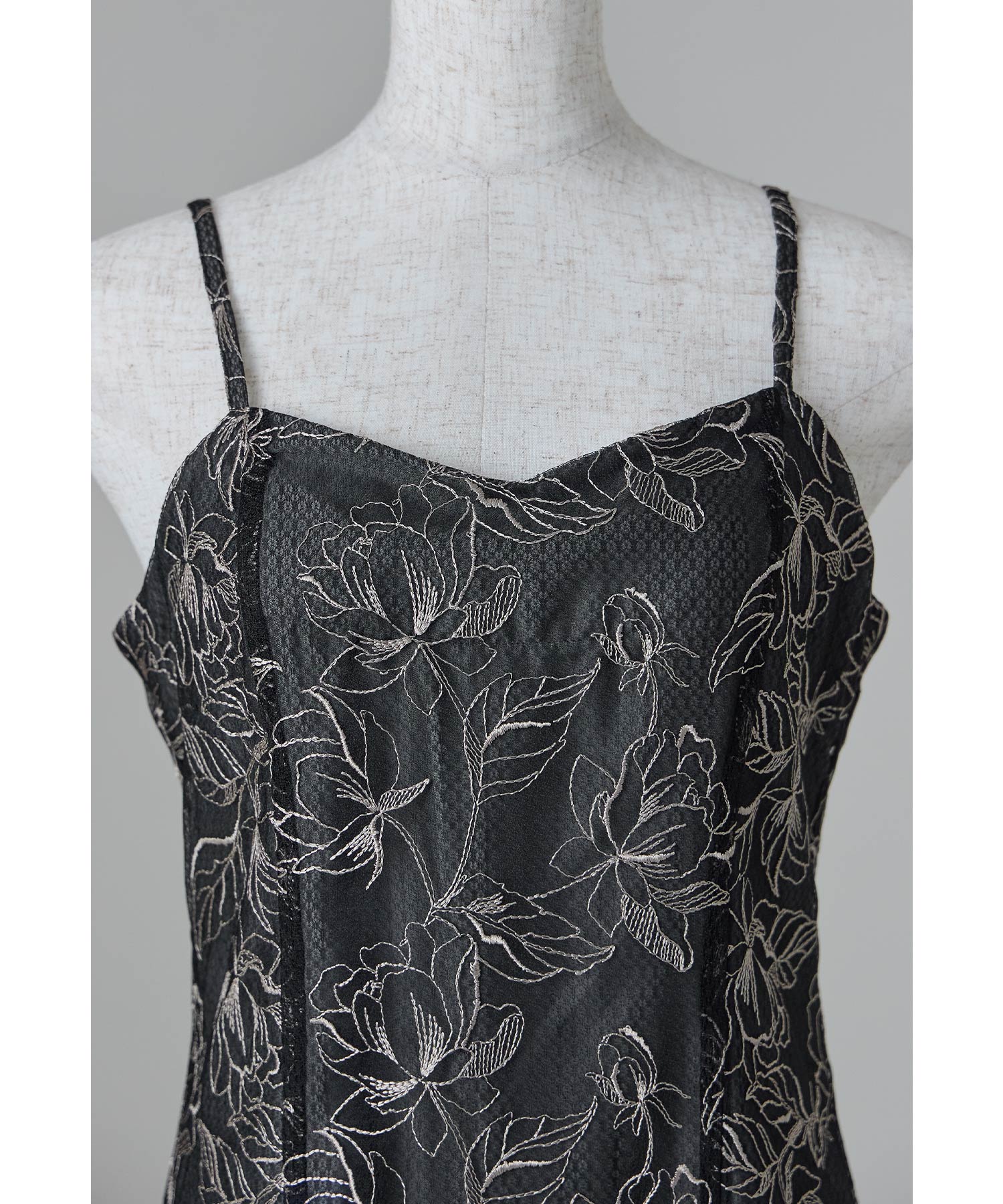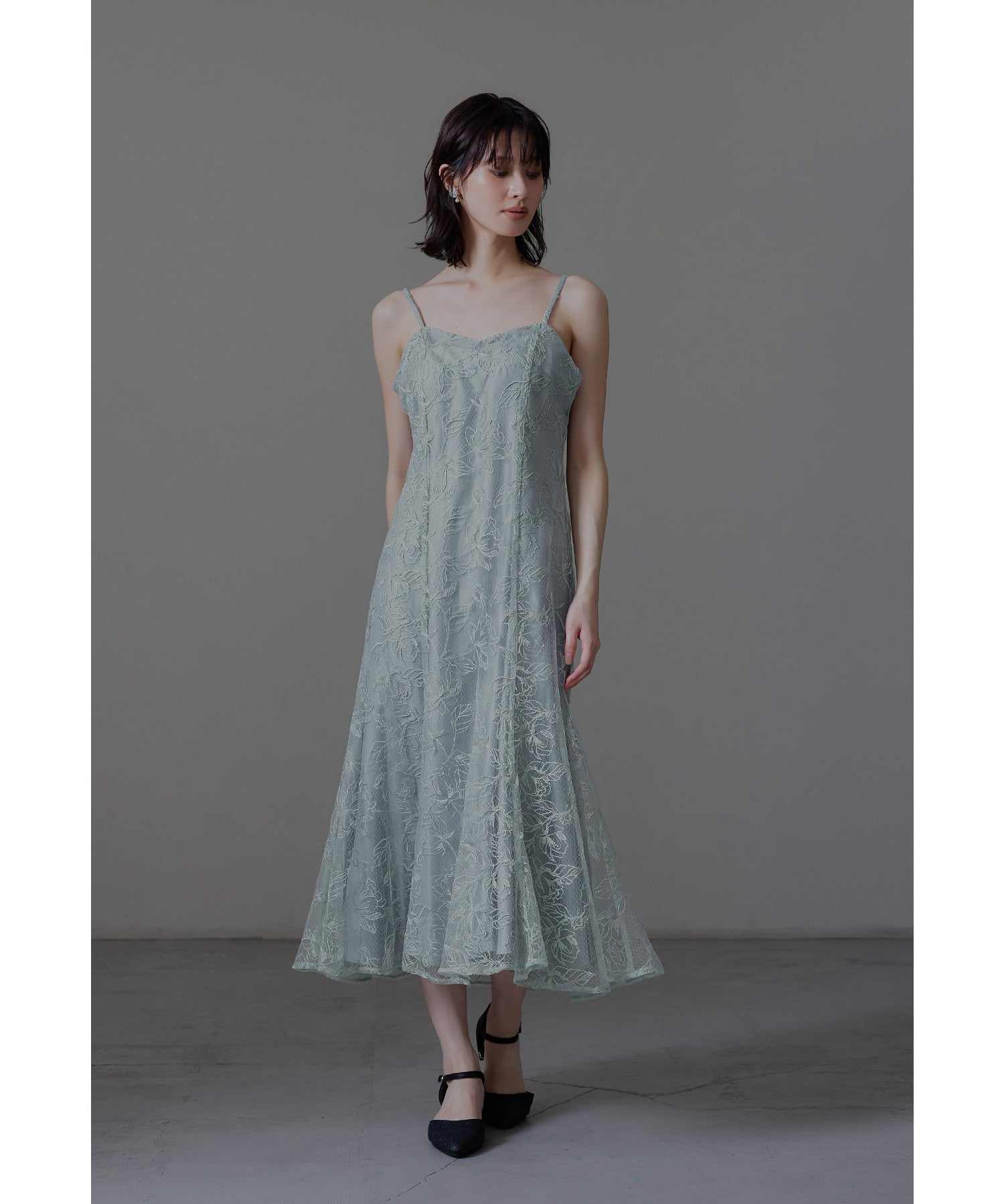 Rname ダブルリボンボレロセットドレス パーティードレス 結婚式 花柄 レース キャミワンピース 2点セット チュール 長袖 ロング丈 お呼ばれ パーティー 二次会 披露宴 謝恩会 成人式 同窓会 入学式 卒業式 フォーマル オケージョンドレス 春 夏 秋 冬 イエロー ミント ブラウン 黒