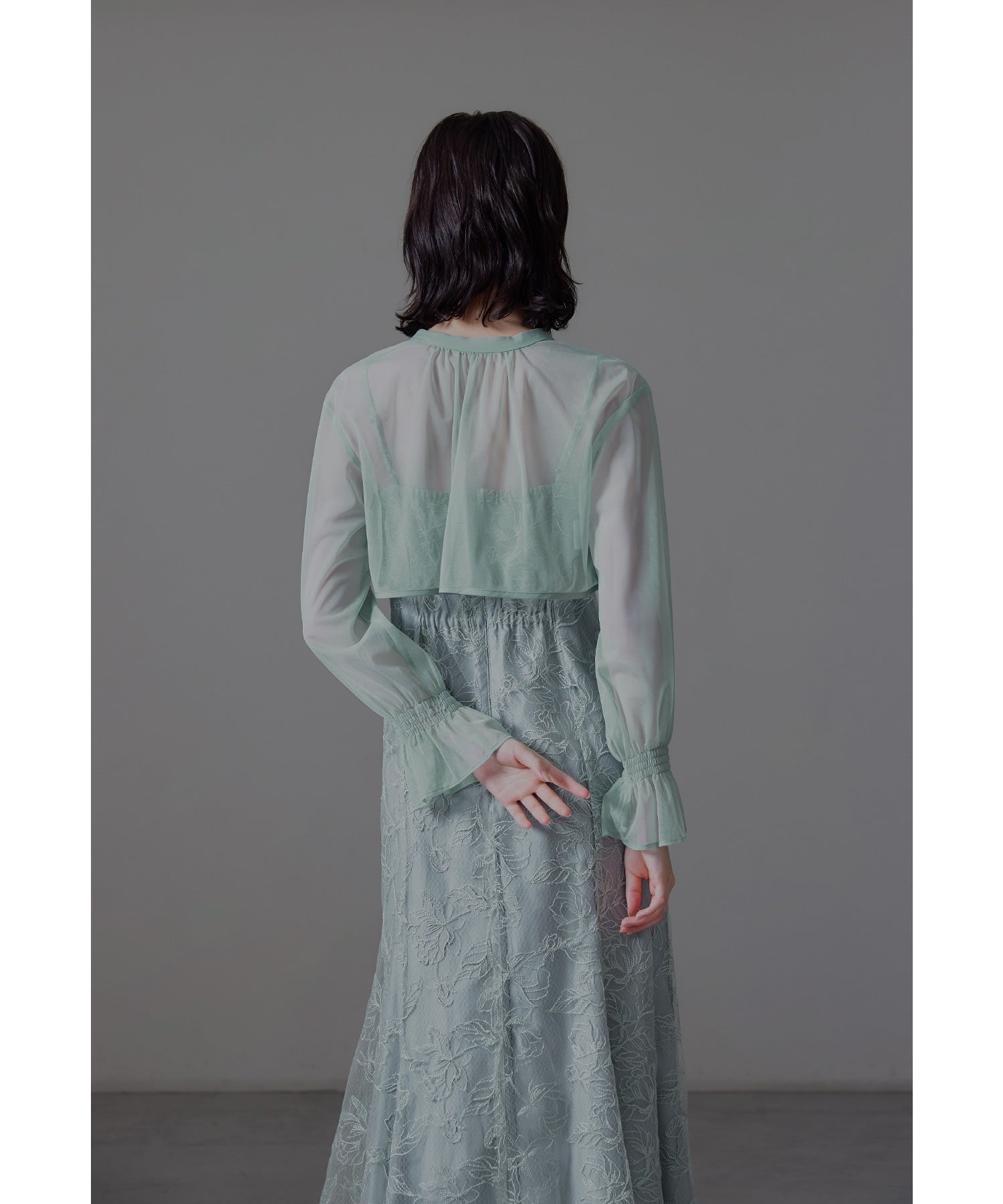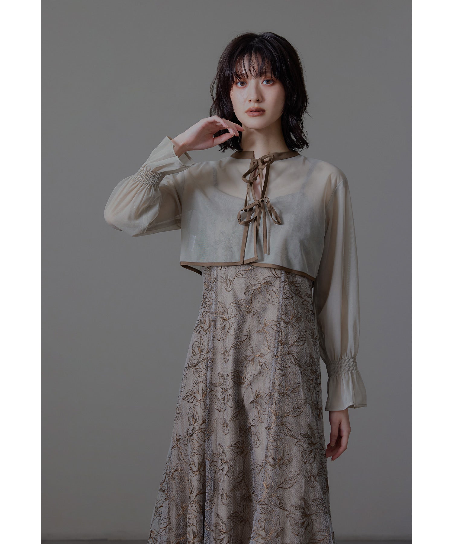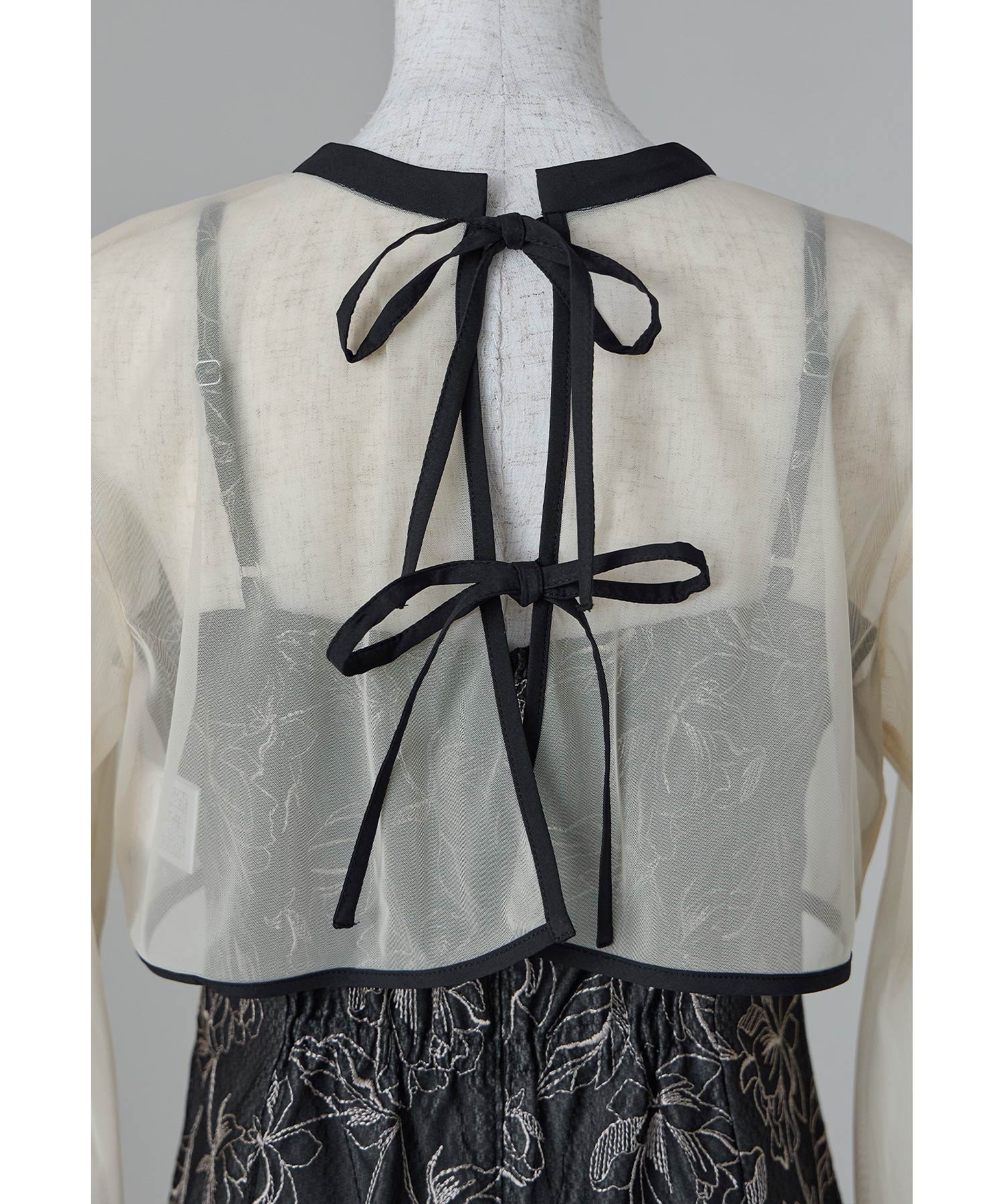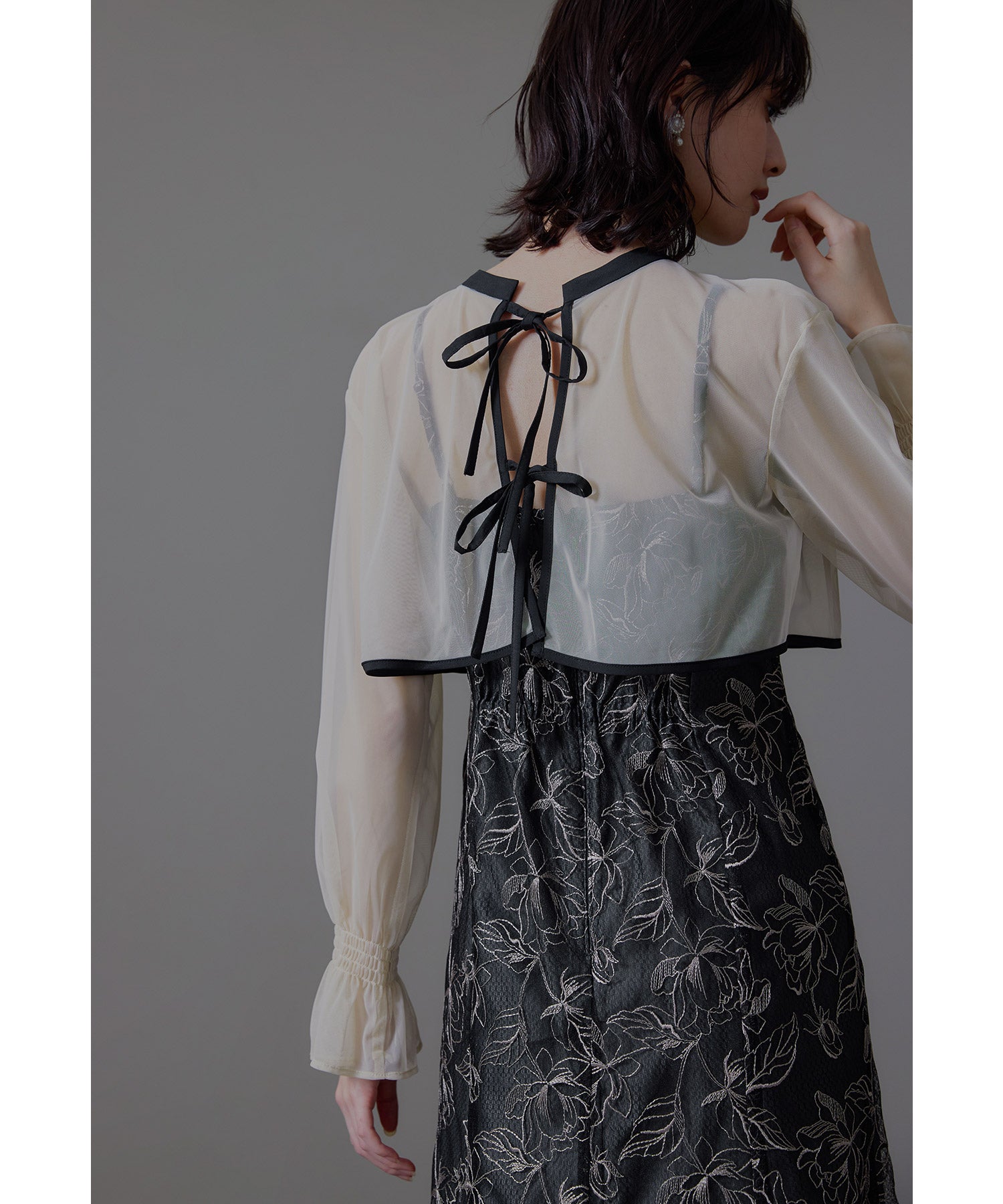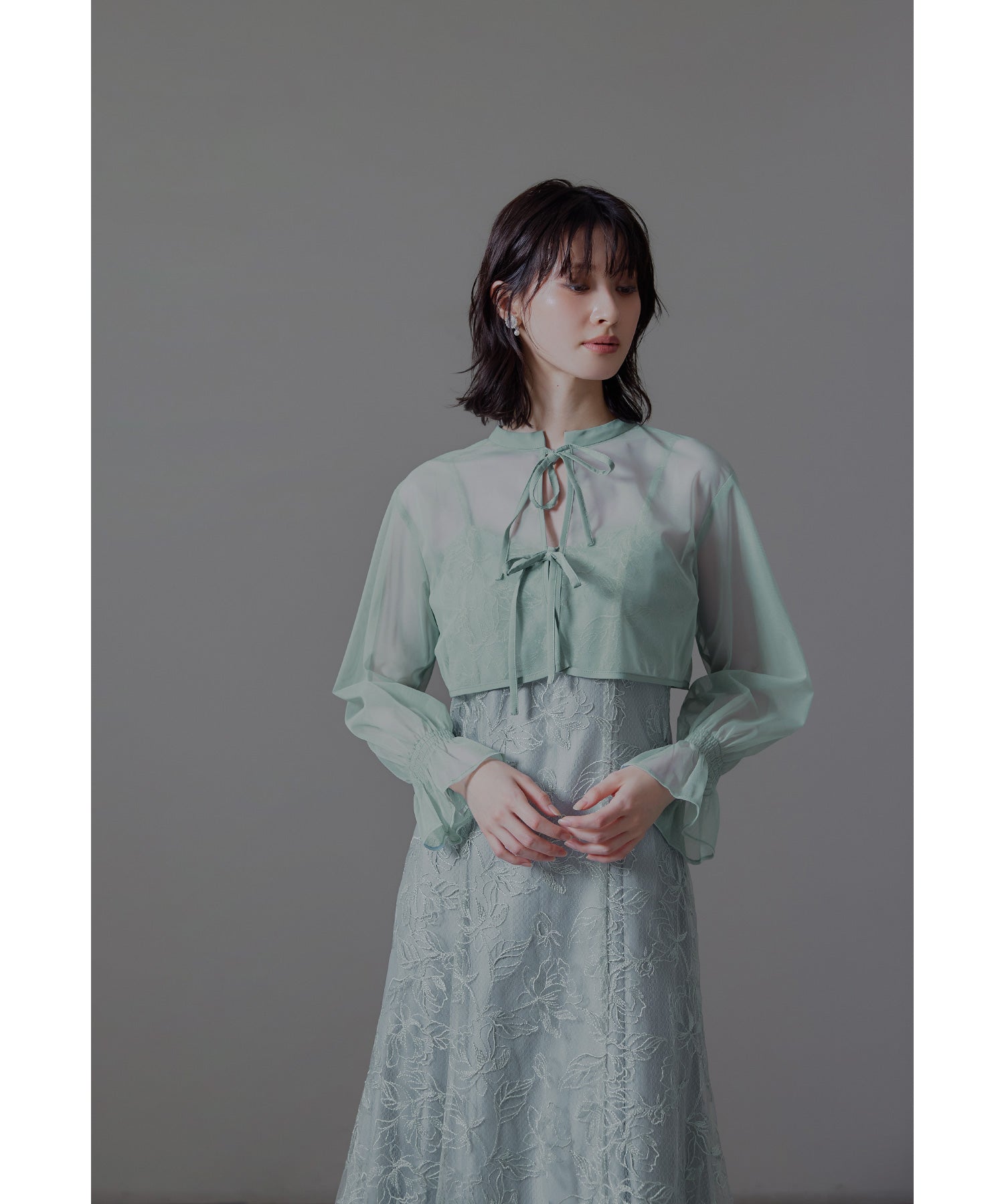 程よい透け感のチュールボレロは、キャンディスリーブで女性らしい印象に。