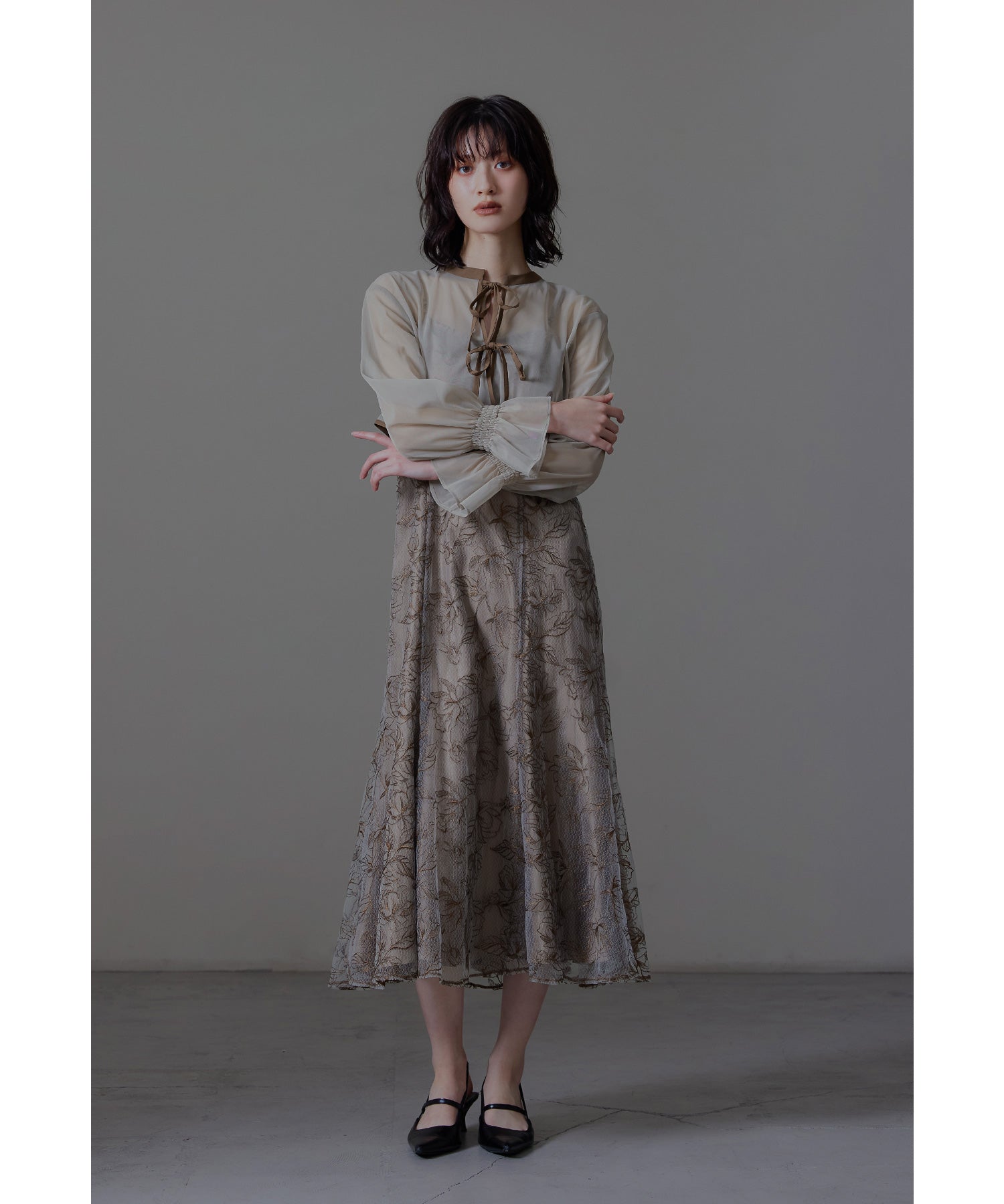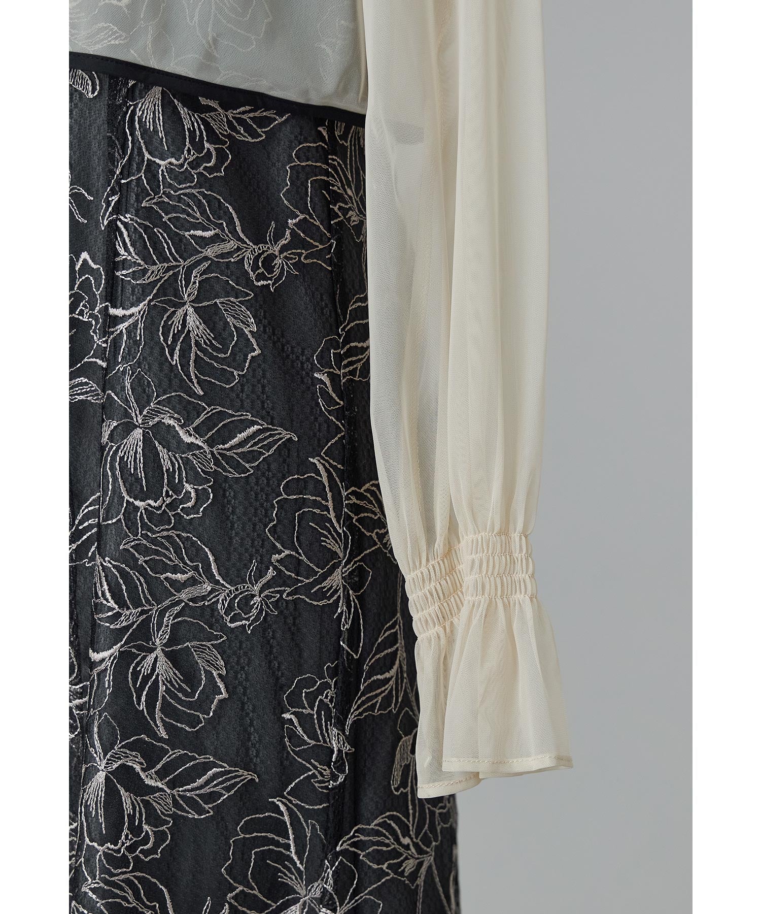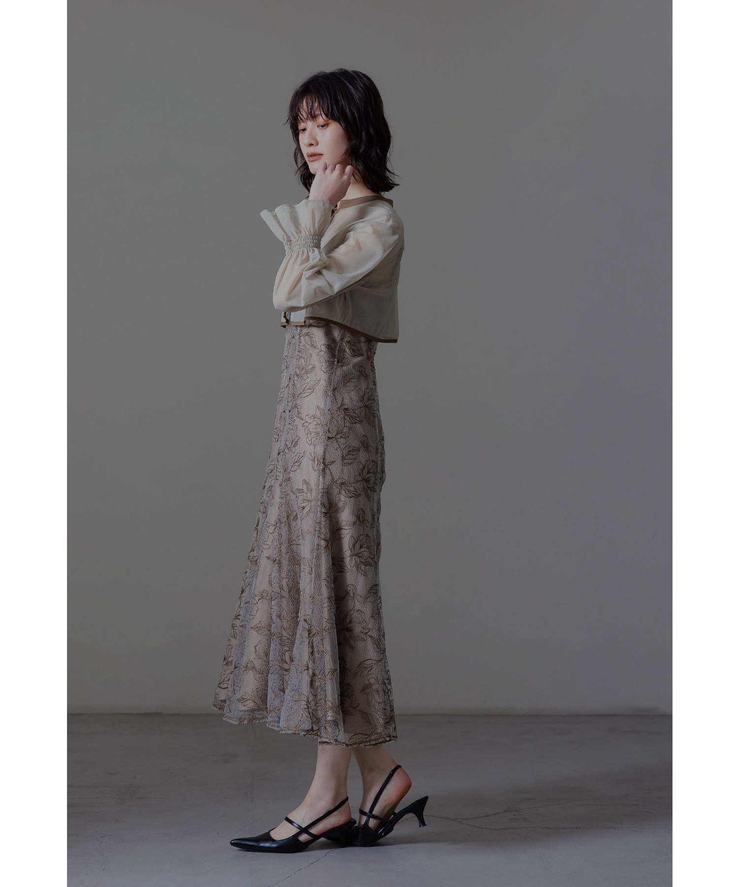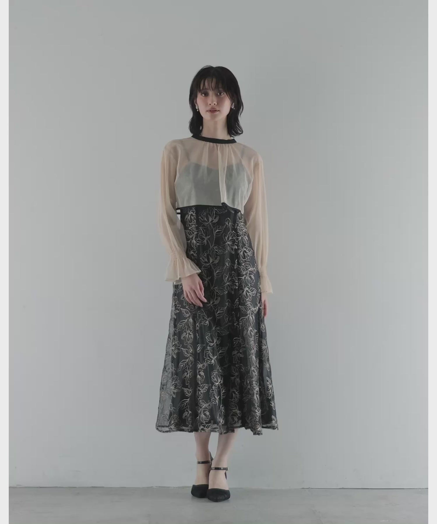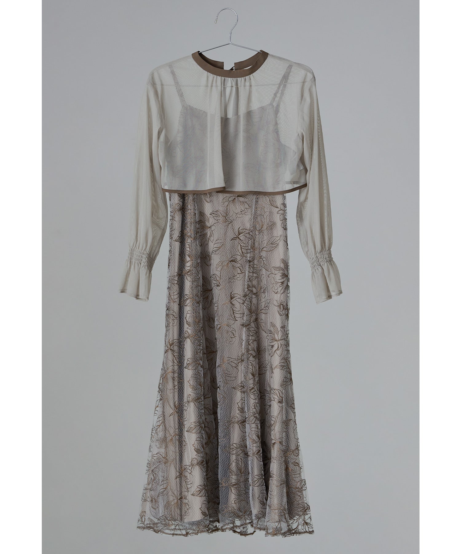 程よい透け感のチュールボレロは、キャンディスリーブで女性らしい印象に。