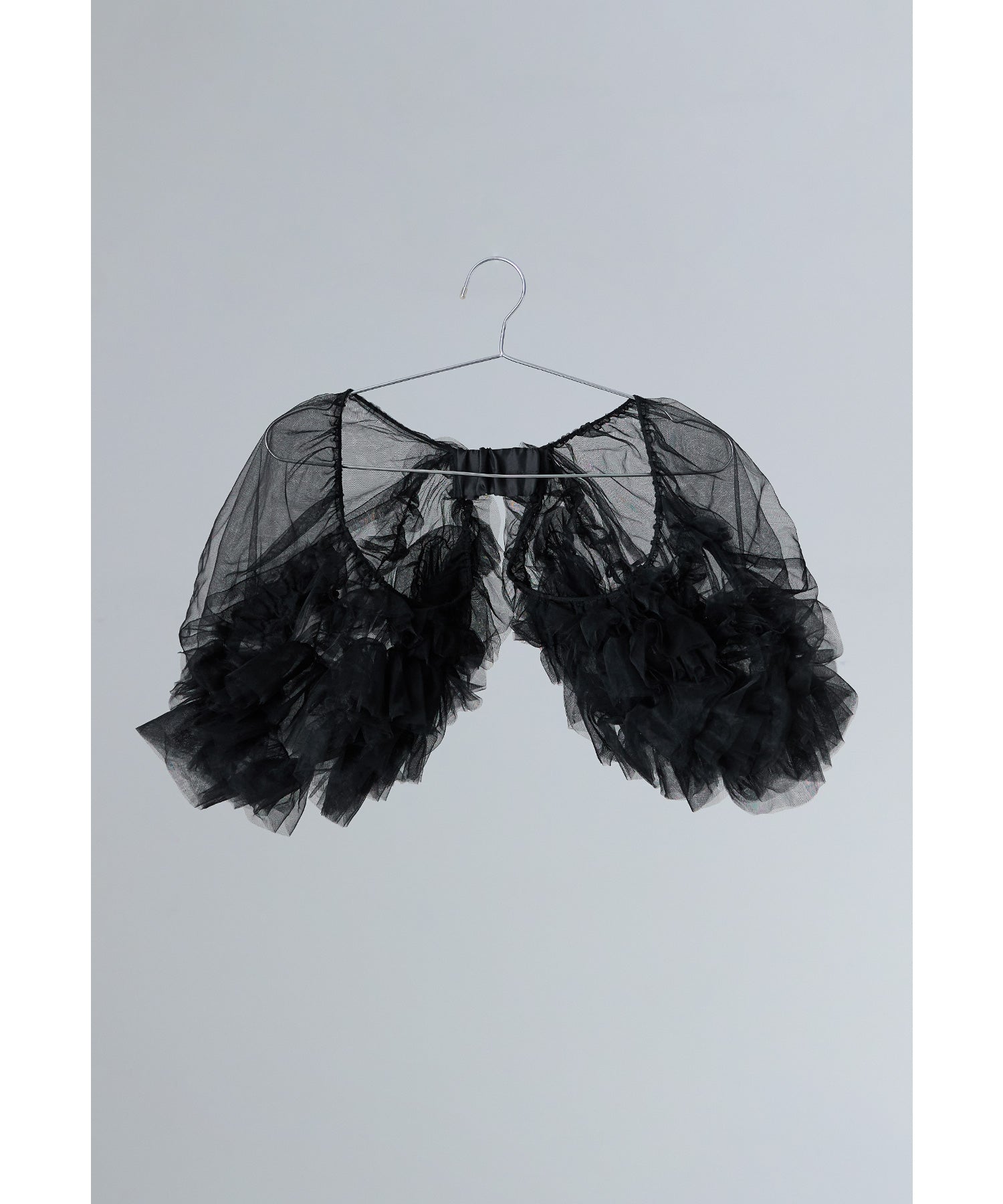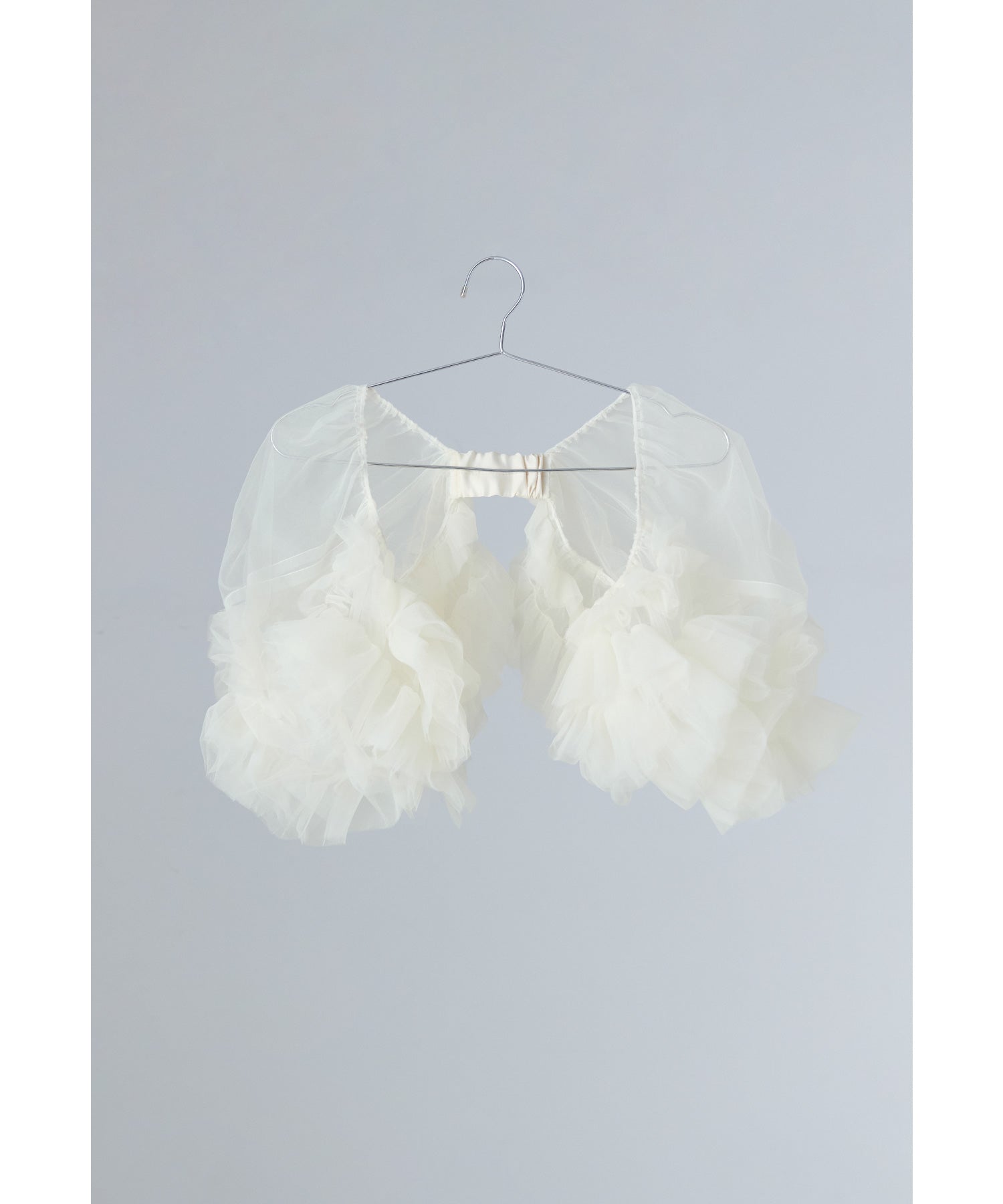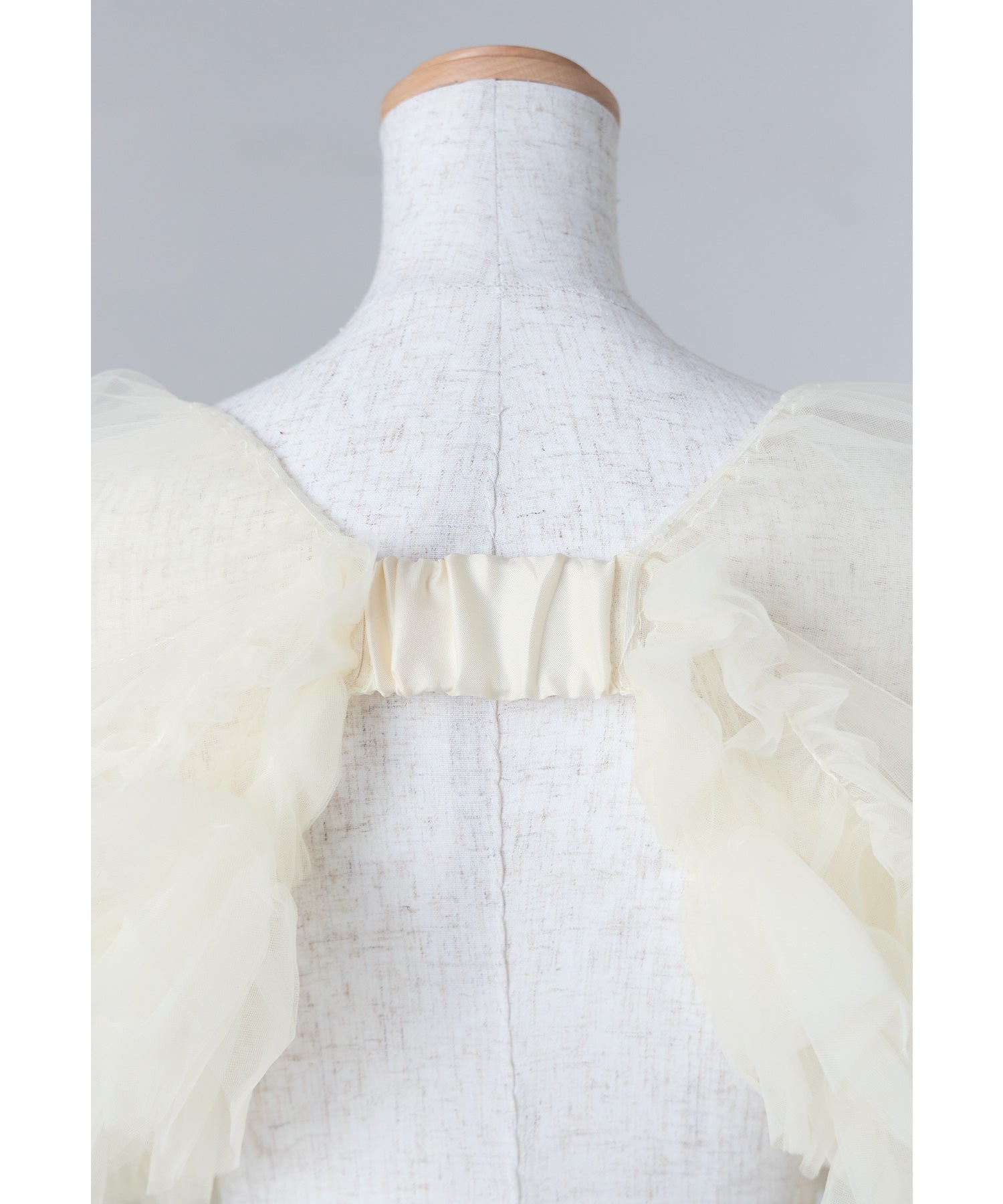 大小のフリルを贅沢に重ねたショート丈チュールボレロ。
