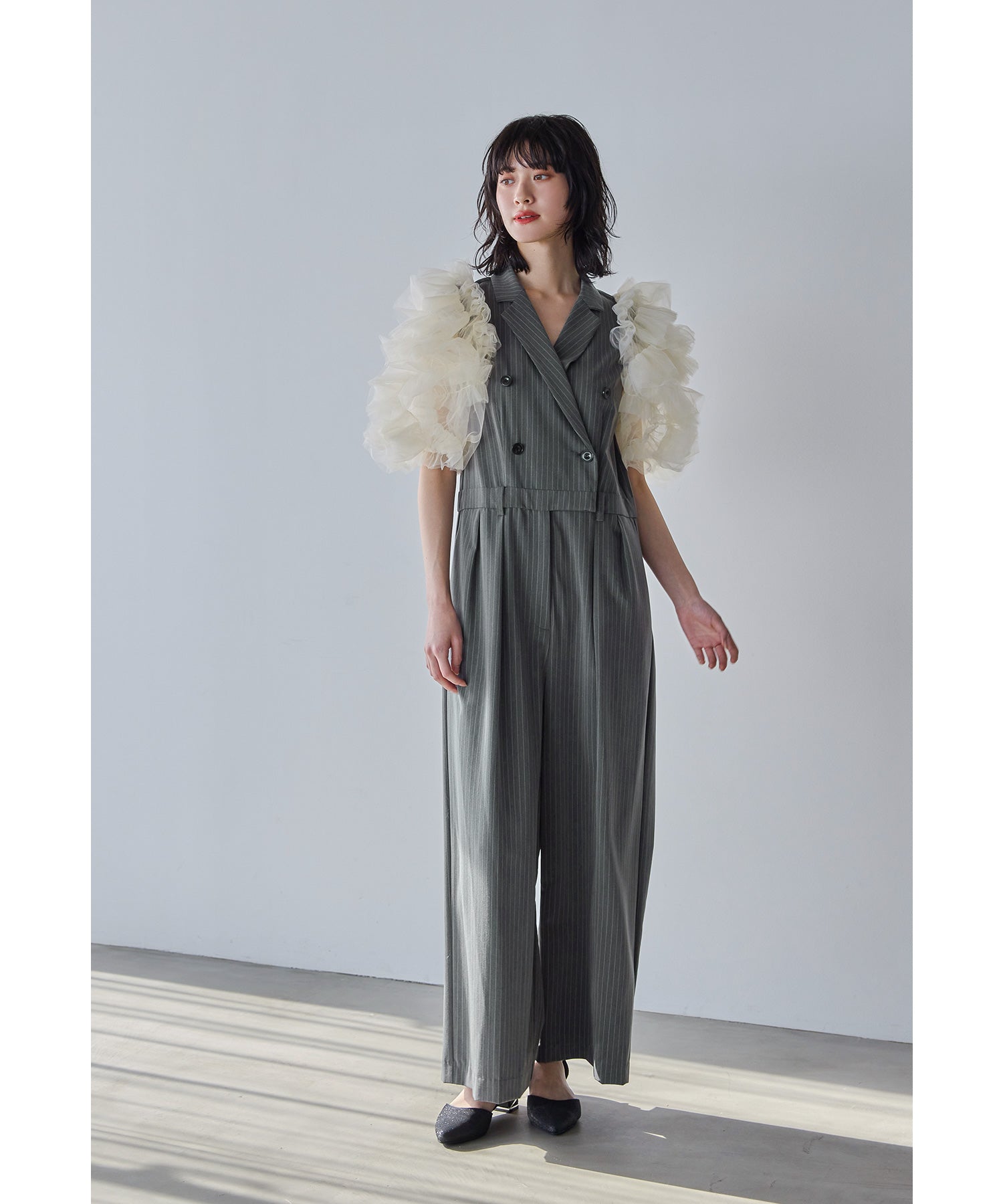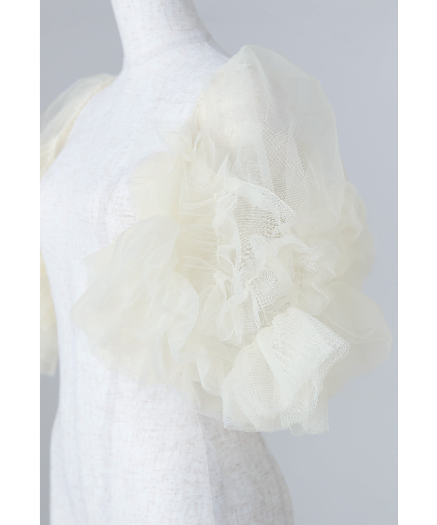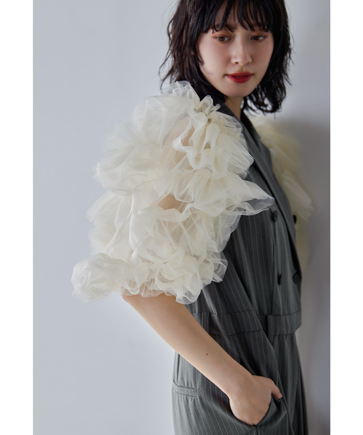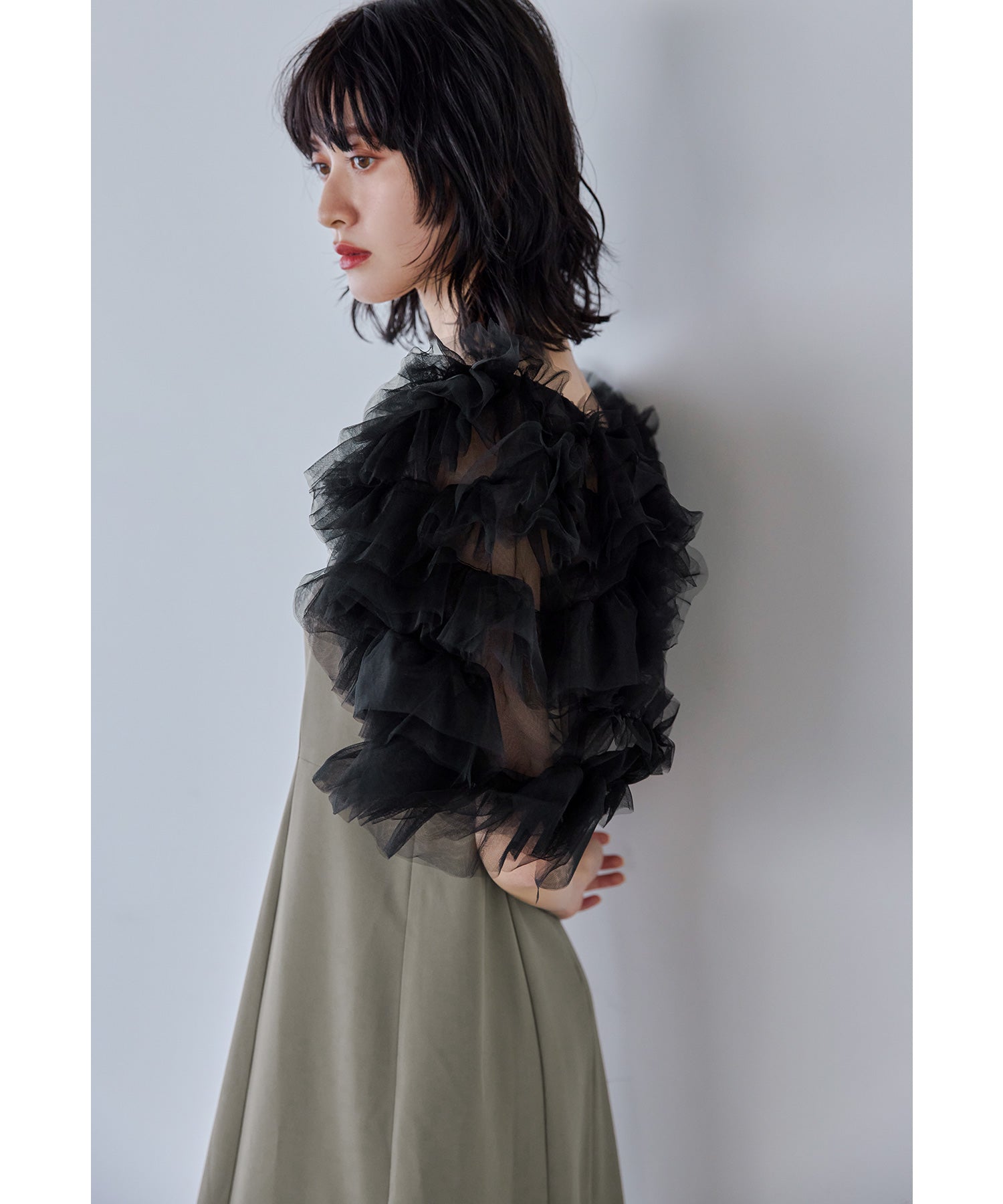 大小のフリルを贅沢に重ねたショート丈チュールボレロ。