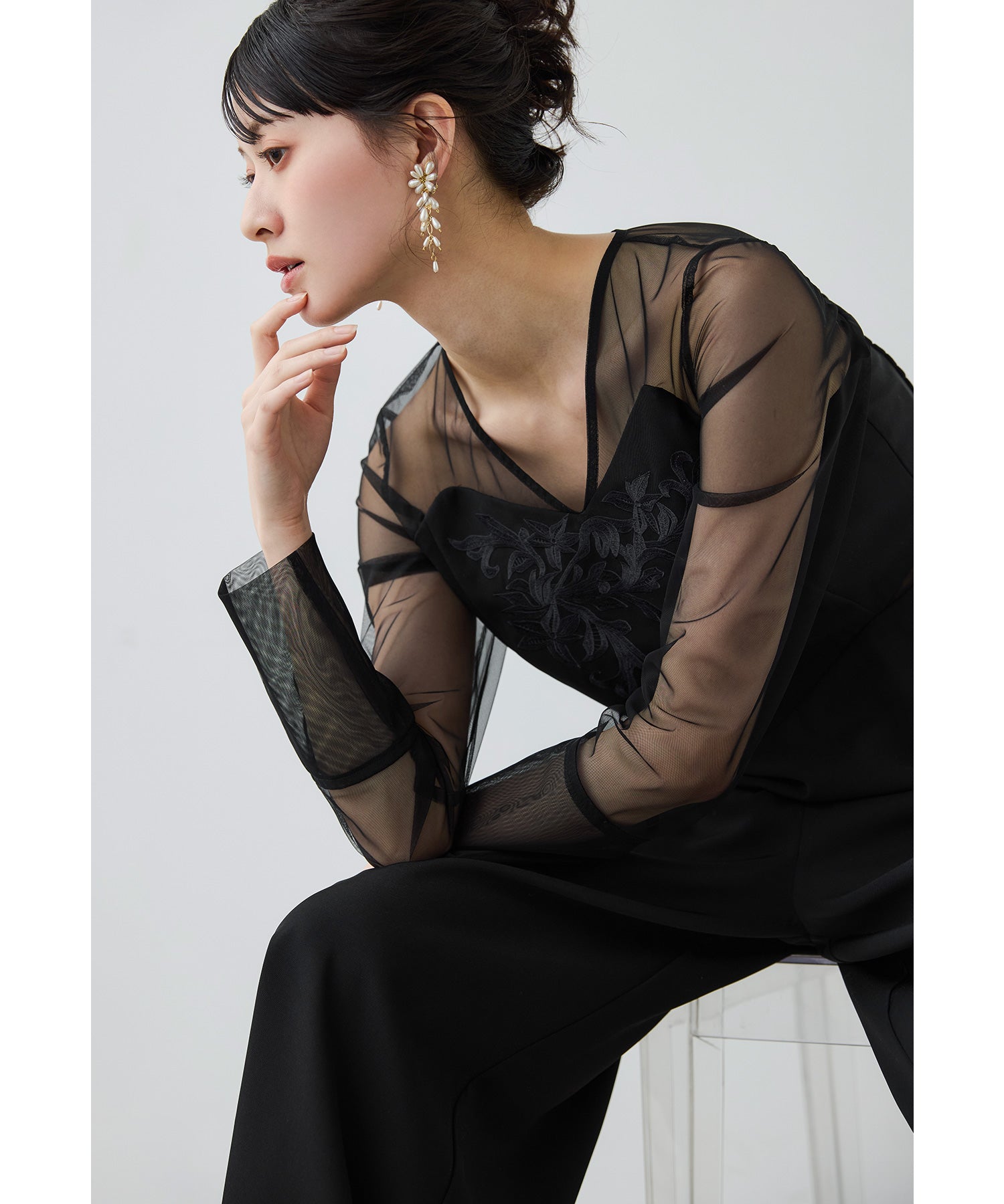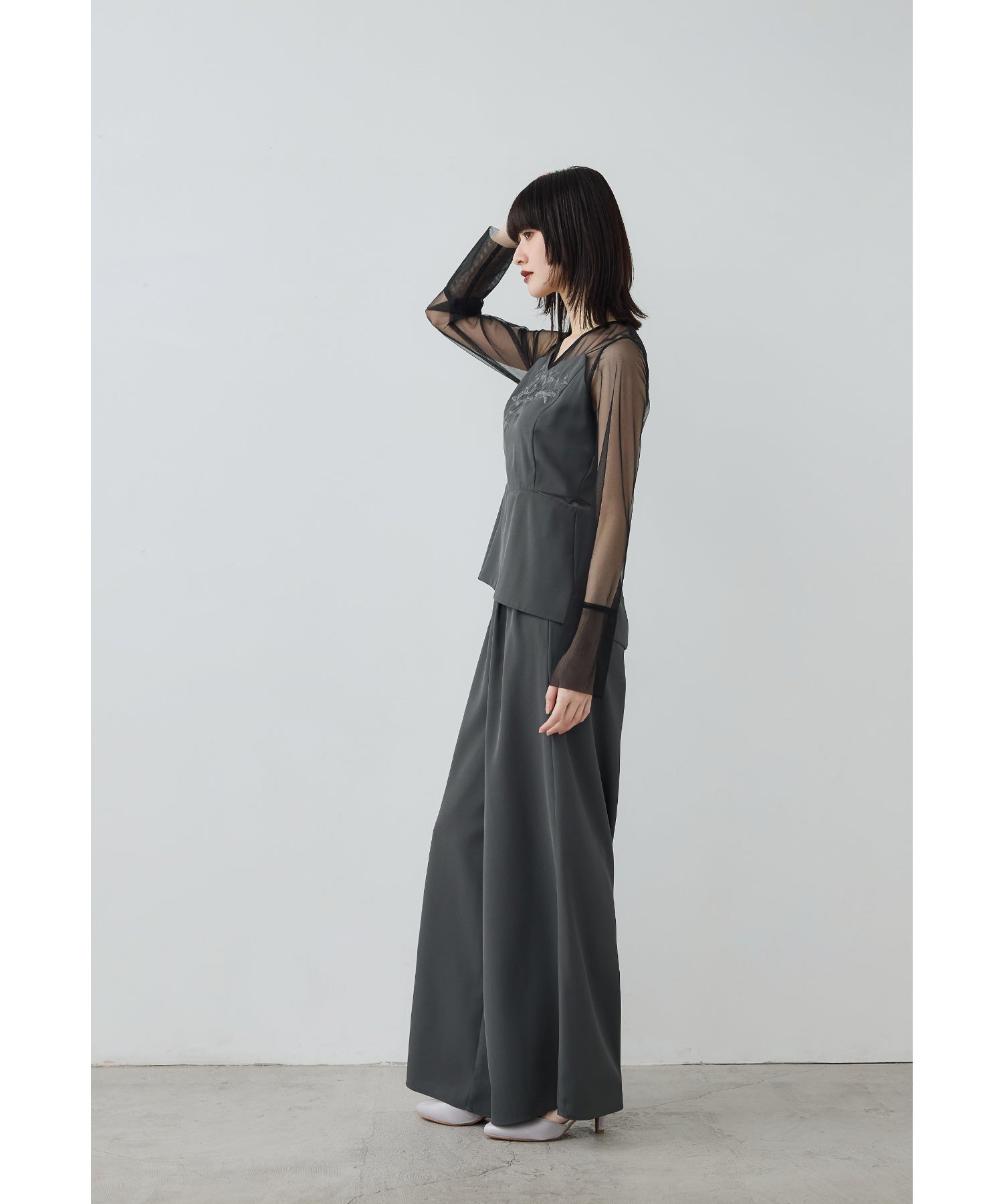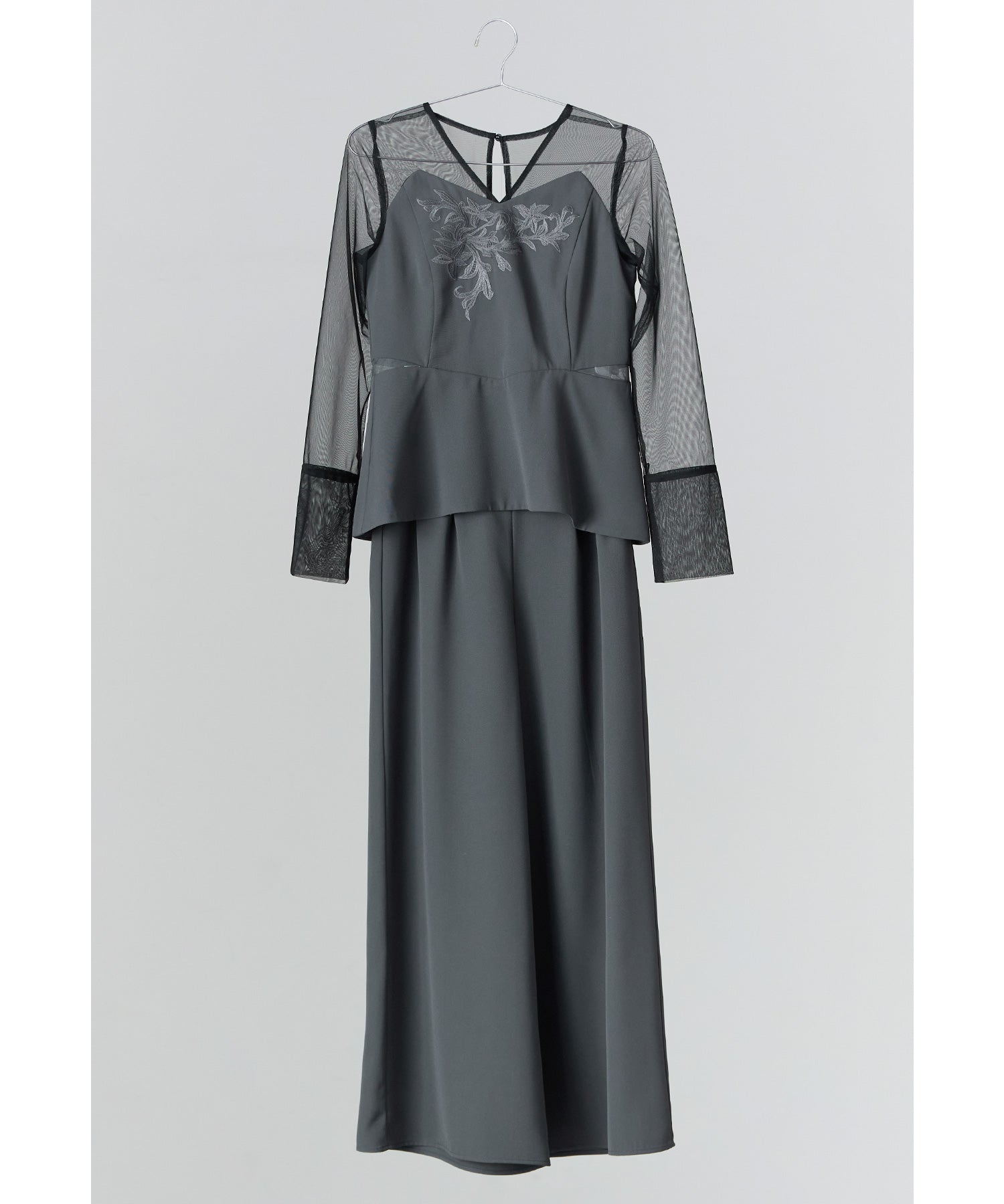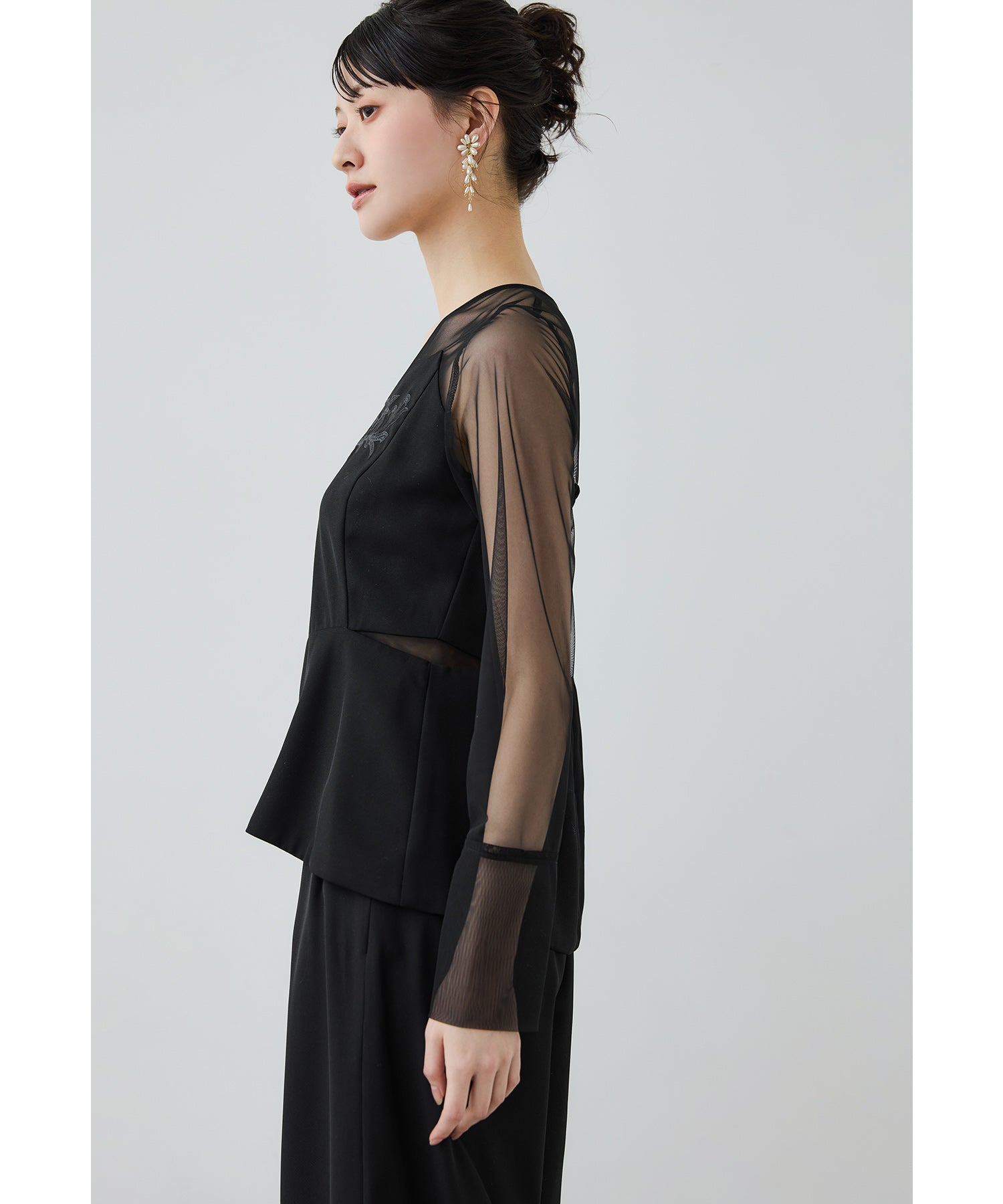 Rname 刺繍ペプラムブラウスセットアップドレス パーティードレス 結婚式 パンツドレス 2点セット セパレート ワイドパンツ チュール 長袖 お呼ばれ パーティー 二次会 披露宴 謝恩会 成人式 同窓会 入学式 卒業式 フォーマル セレモニー オケージョンドレス 春 夏 秋 冬 黒 グレー
