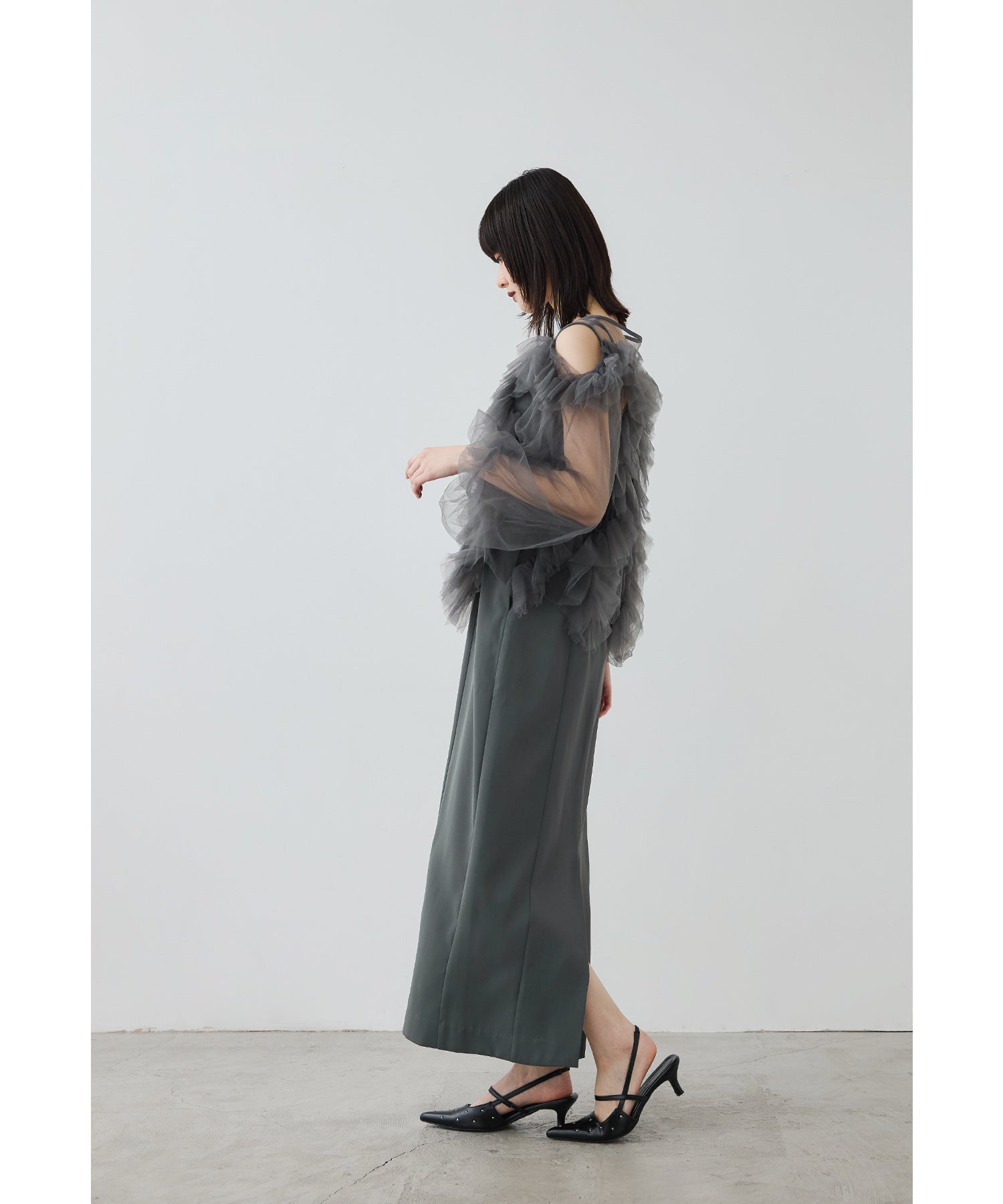 波打ったようなフリルデザインで体型を拾わないシルエットに仕上げました。