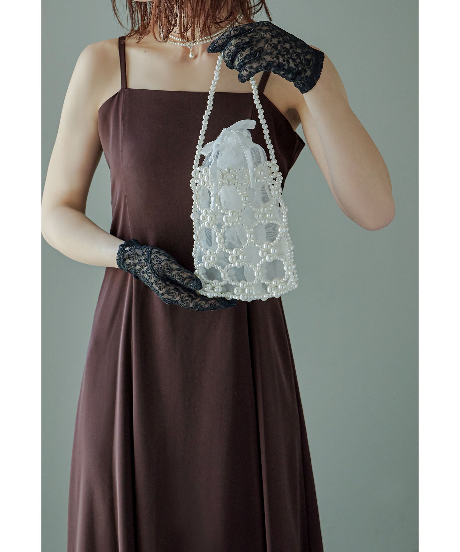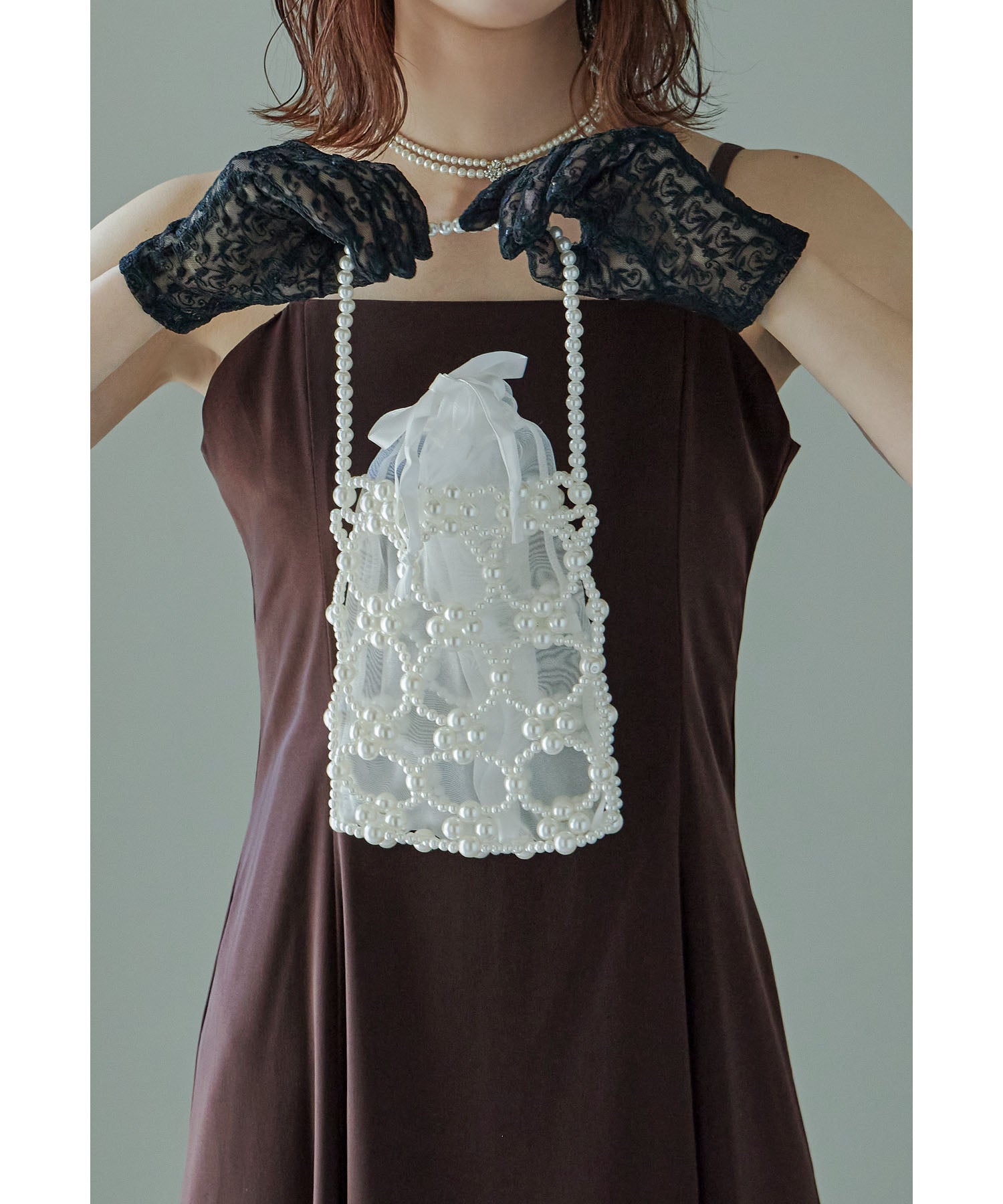 アクセサリー感覚で使える、華やかな印象のパールビーズバッグ。