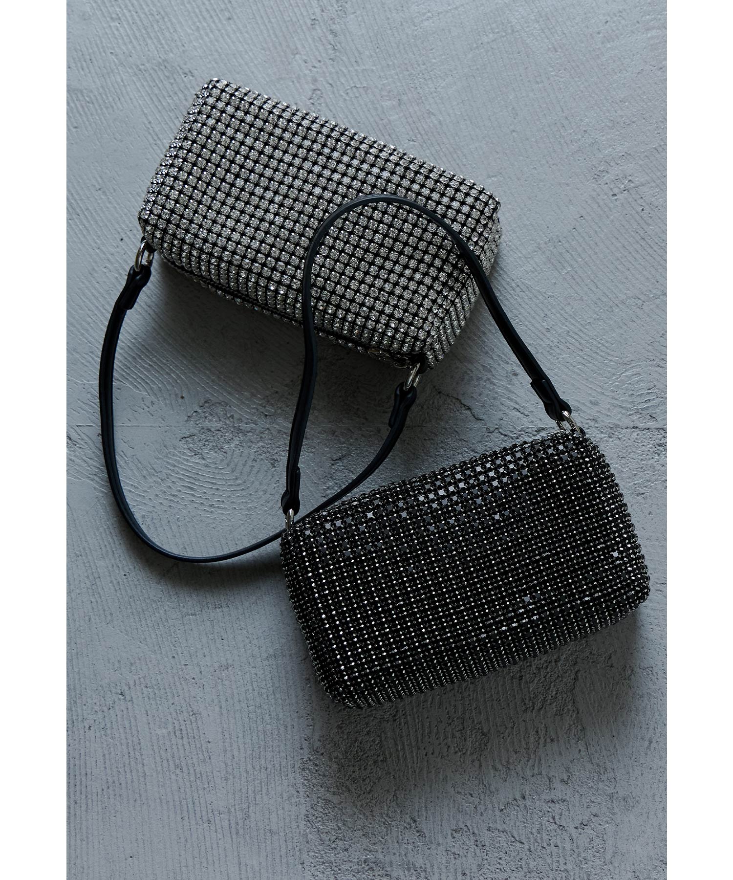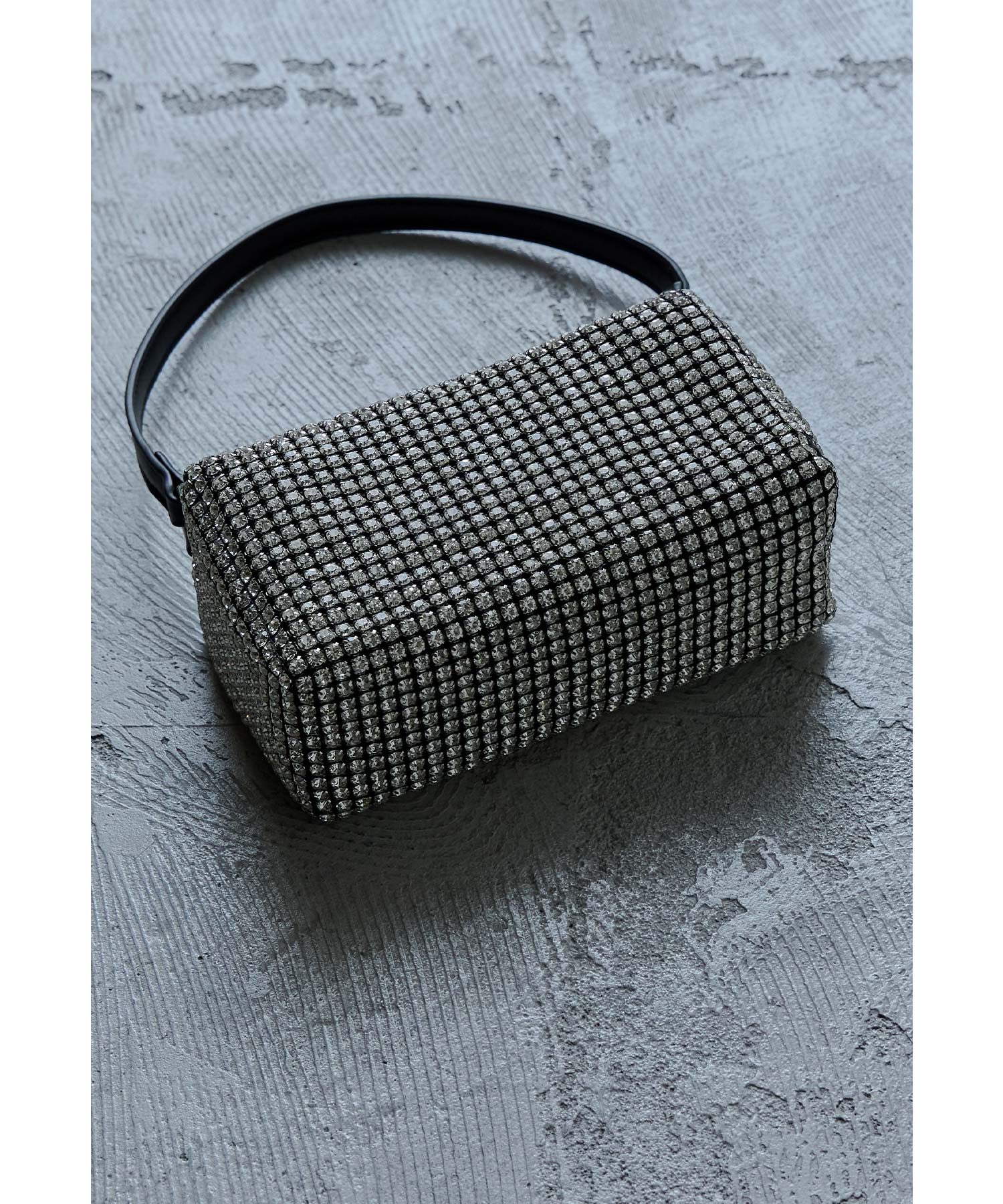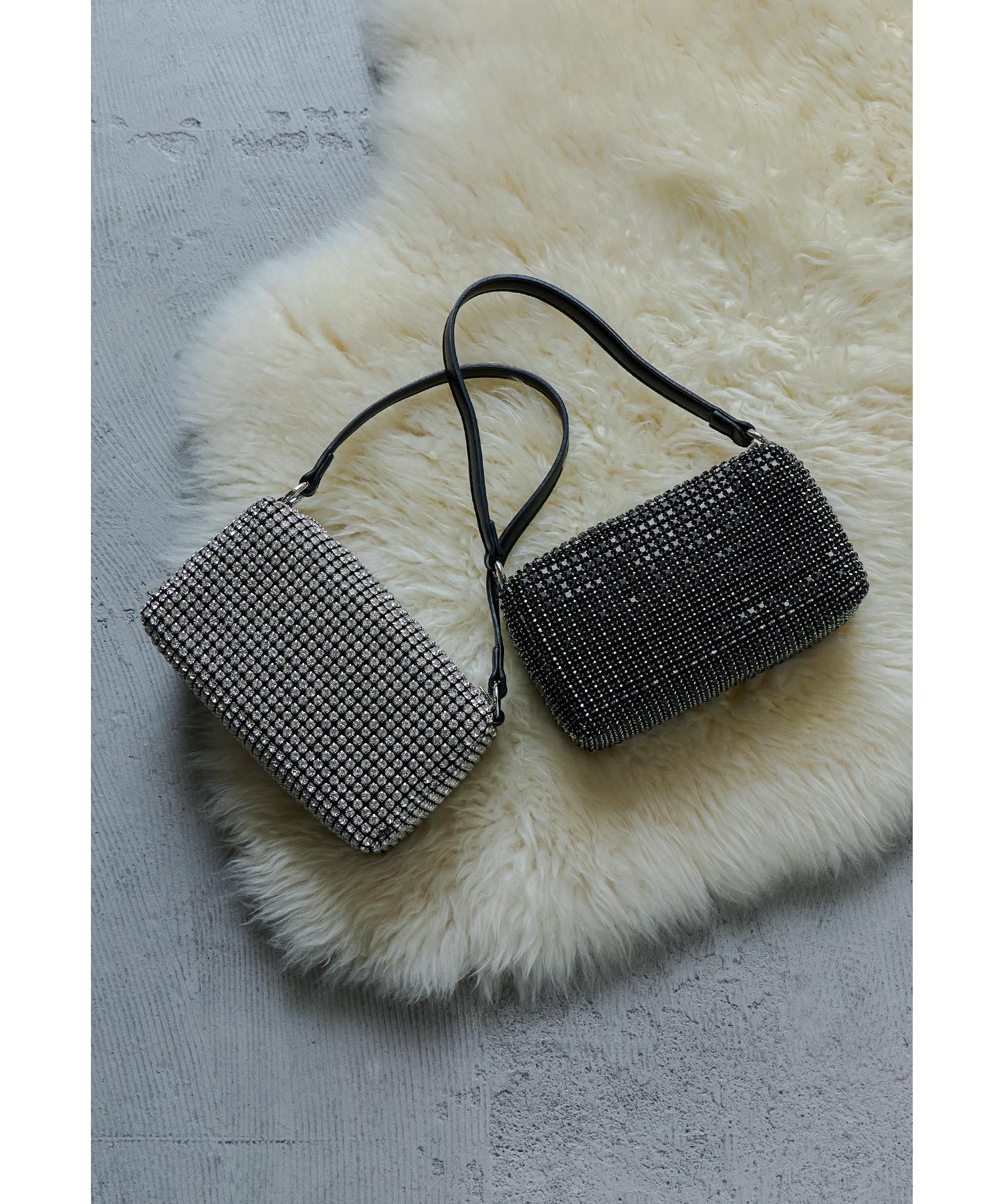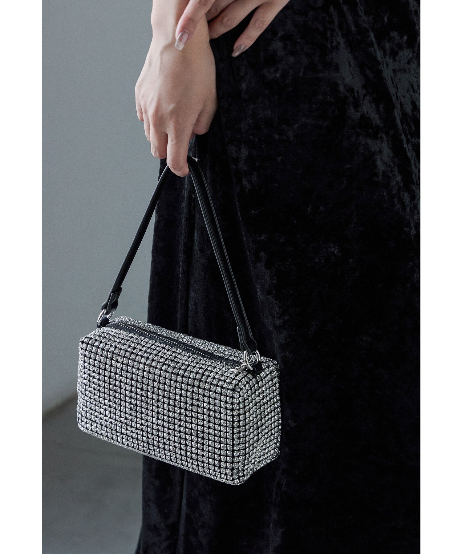 全体に施されたラインストーンが煌めくスクエア型バッグ。