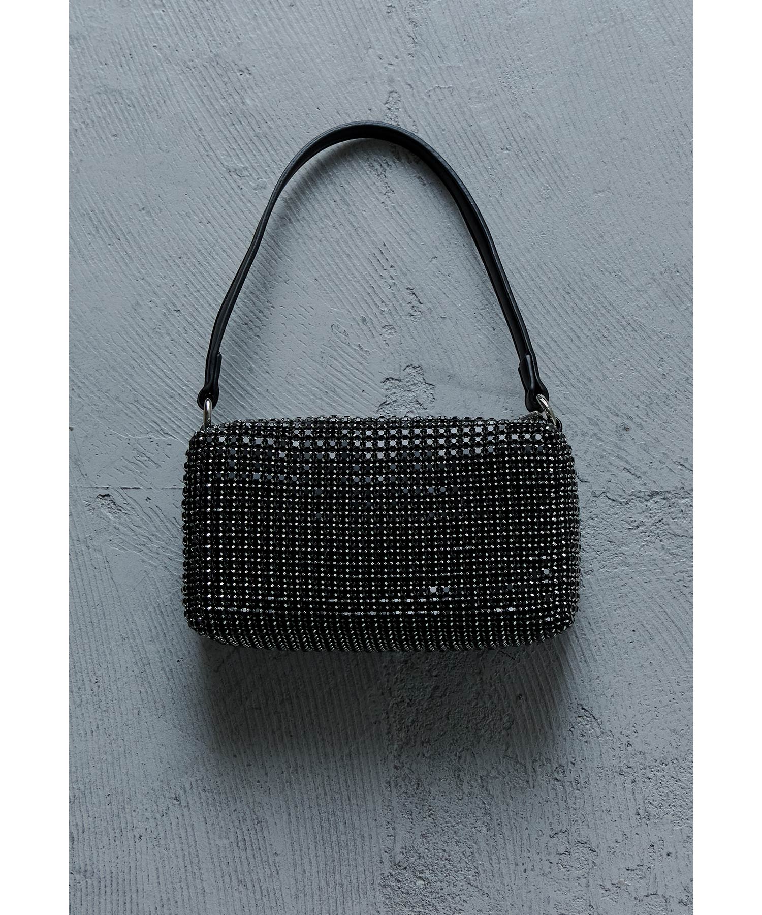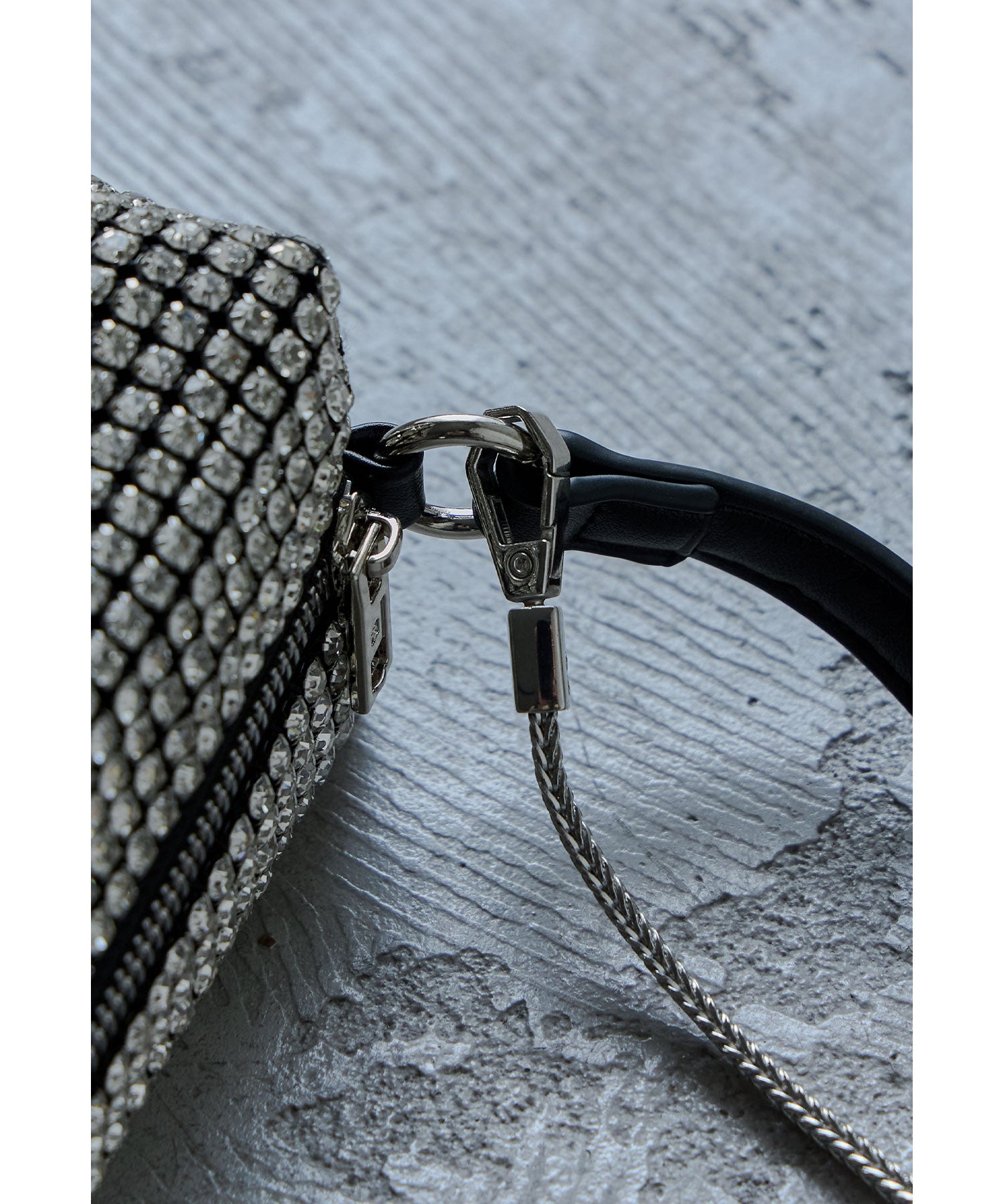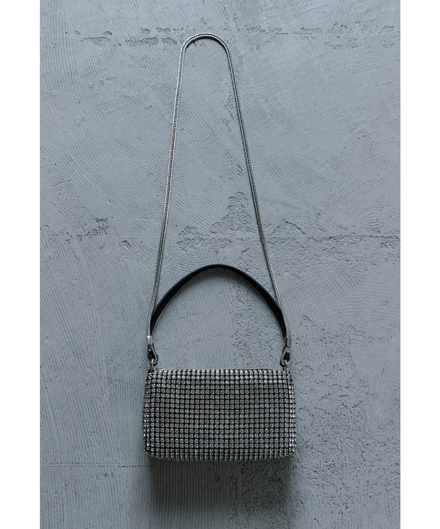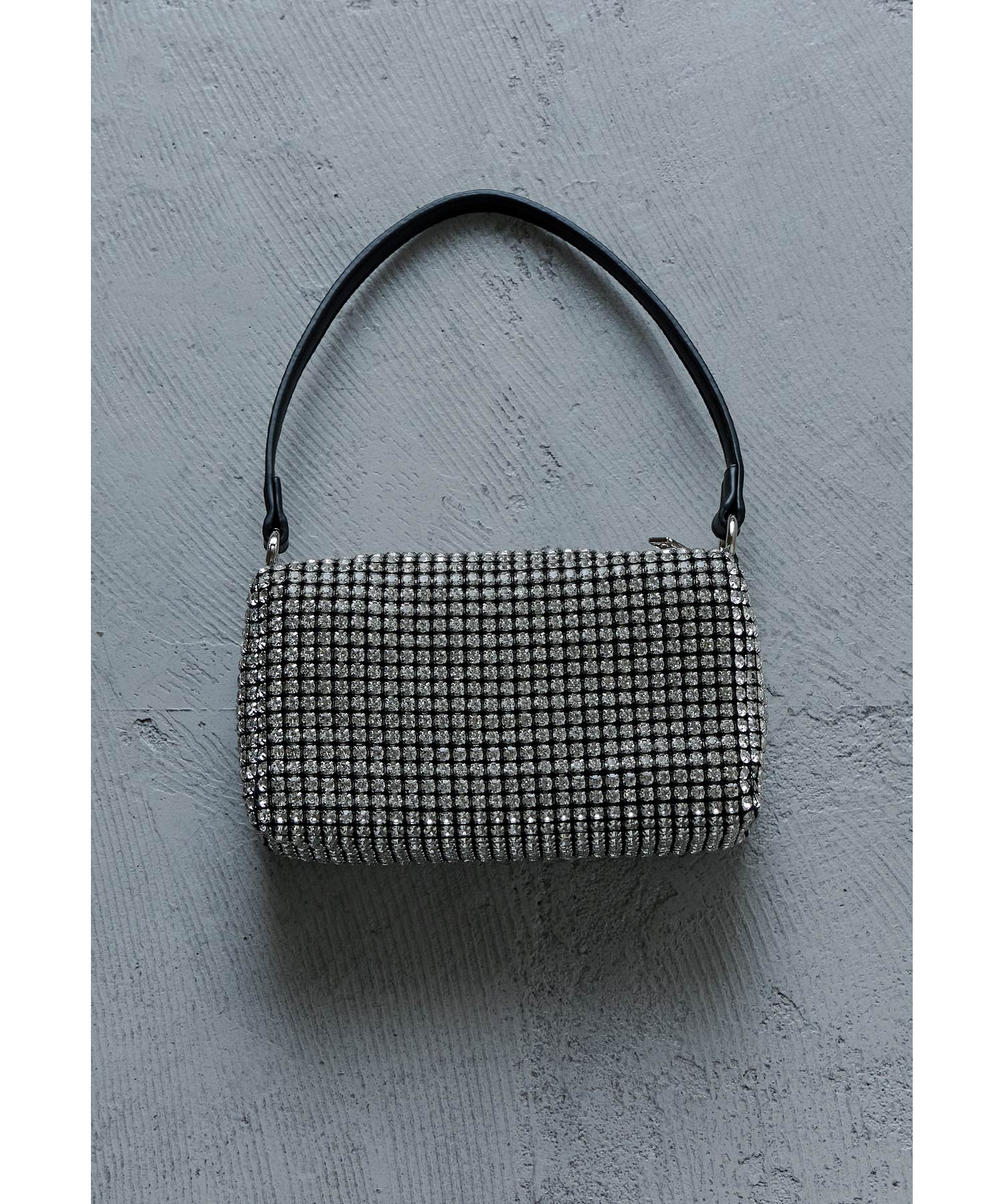 全体に施されたラインストーンが煌めくスクエア型バッグ。
